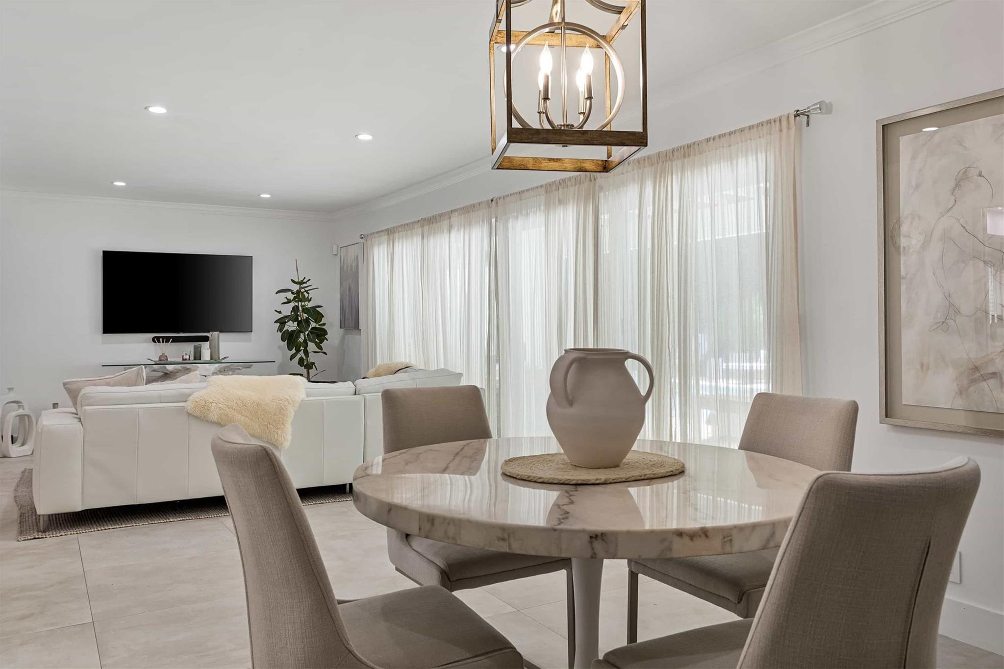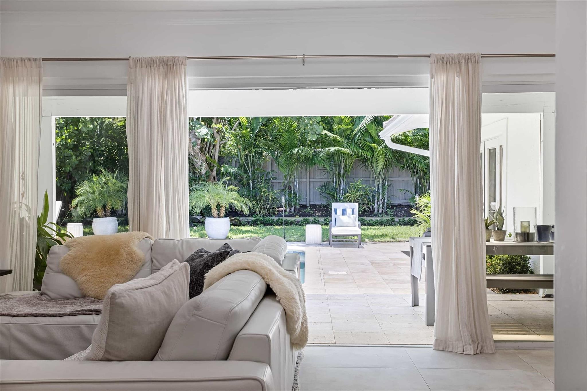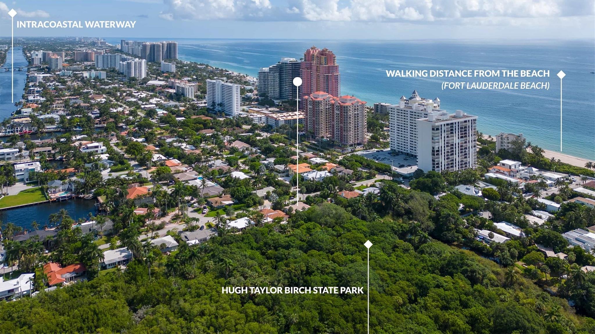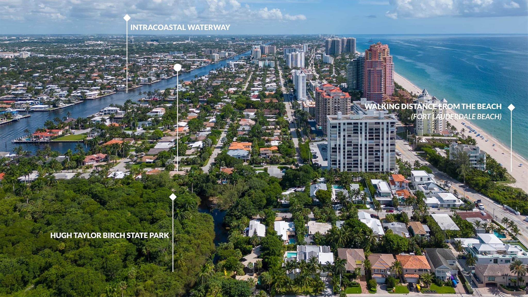 A Private Oasis in Dolphin Isles–Steps from the Ocean & Birch State Park. Thoughtfully designed and well maintained,it offers an open-concept kitchen with quartz countertops, stainless steel appliances, and stylish tile and wood flooring. The smart 3 bedroom, 3-bath layout features dual primary suites with direct access and peaceful views of an expansive, ultra-private garden retreat backing onto Birch State Park. Enjoy indoor-outdoor living on the spacious lanai or relax in the resort-style saltwater pool and spa. Set on a prime corner lot with no neighbors to the east or south, the property includes exclusive gated access to the park just steps away. With impact glass throughout and zoned for the Bayview school district, this home offers the perfect blend of luxury, location, and privacy