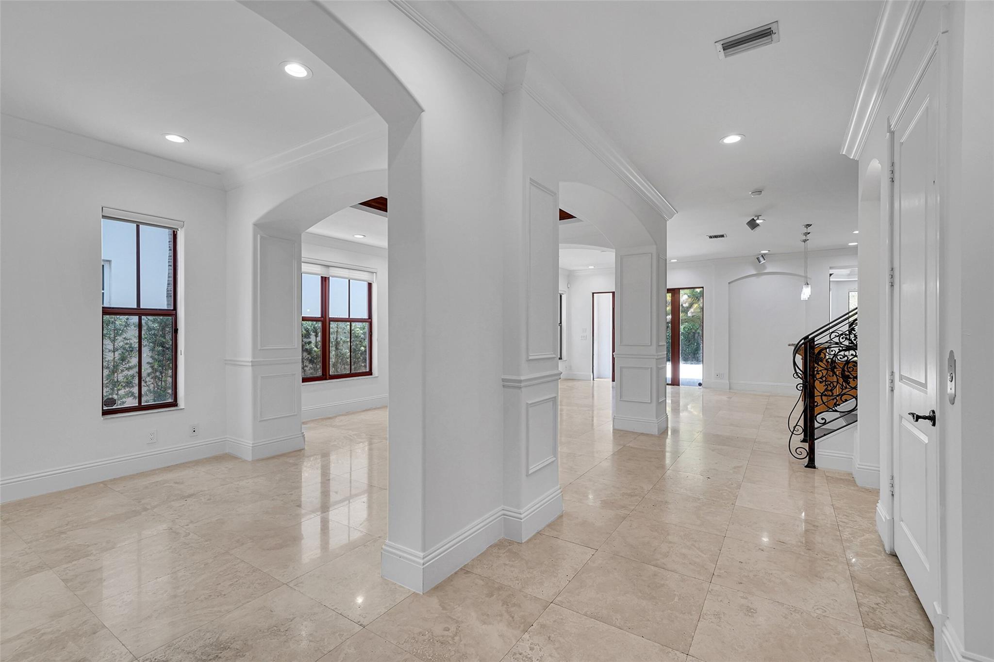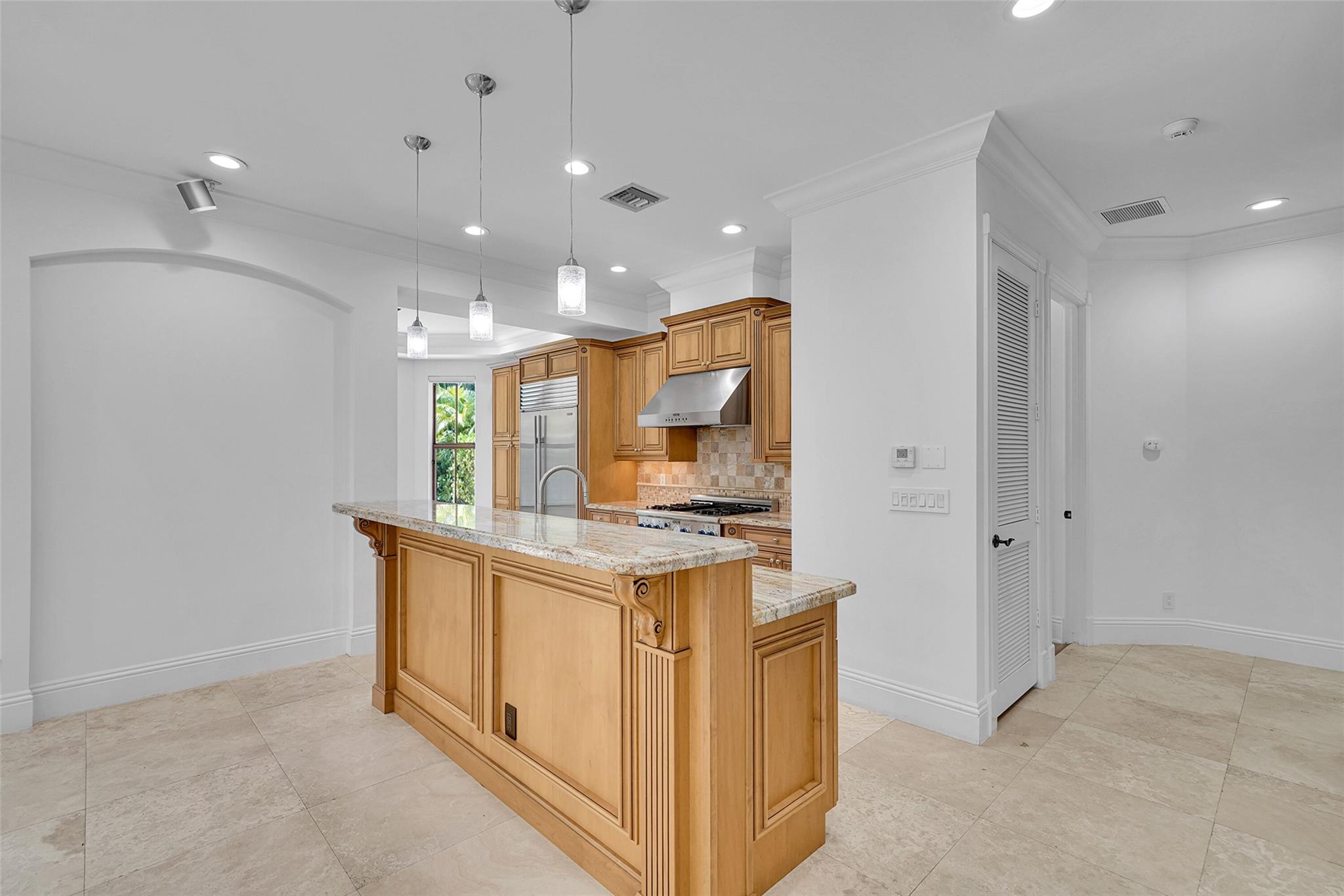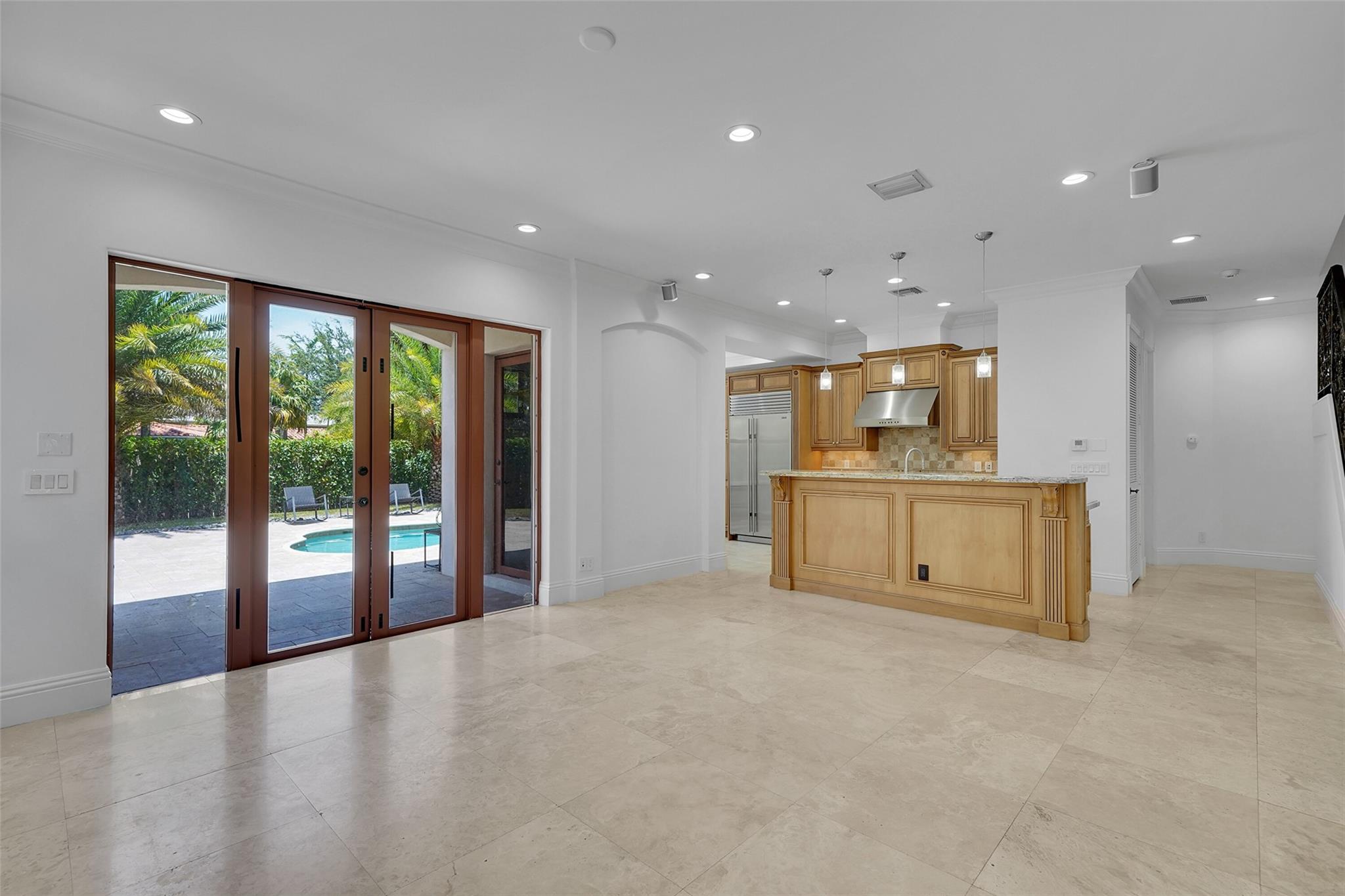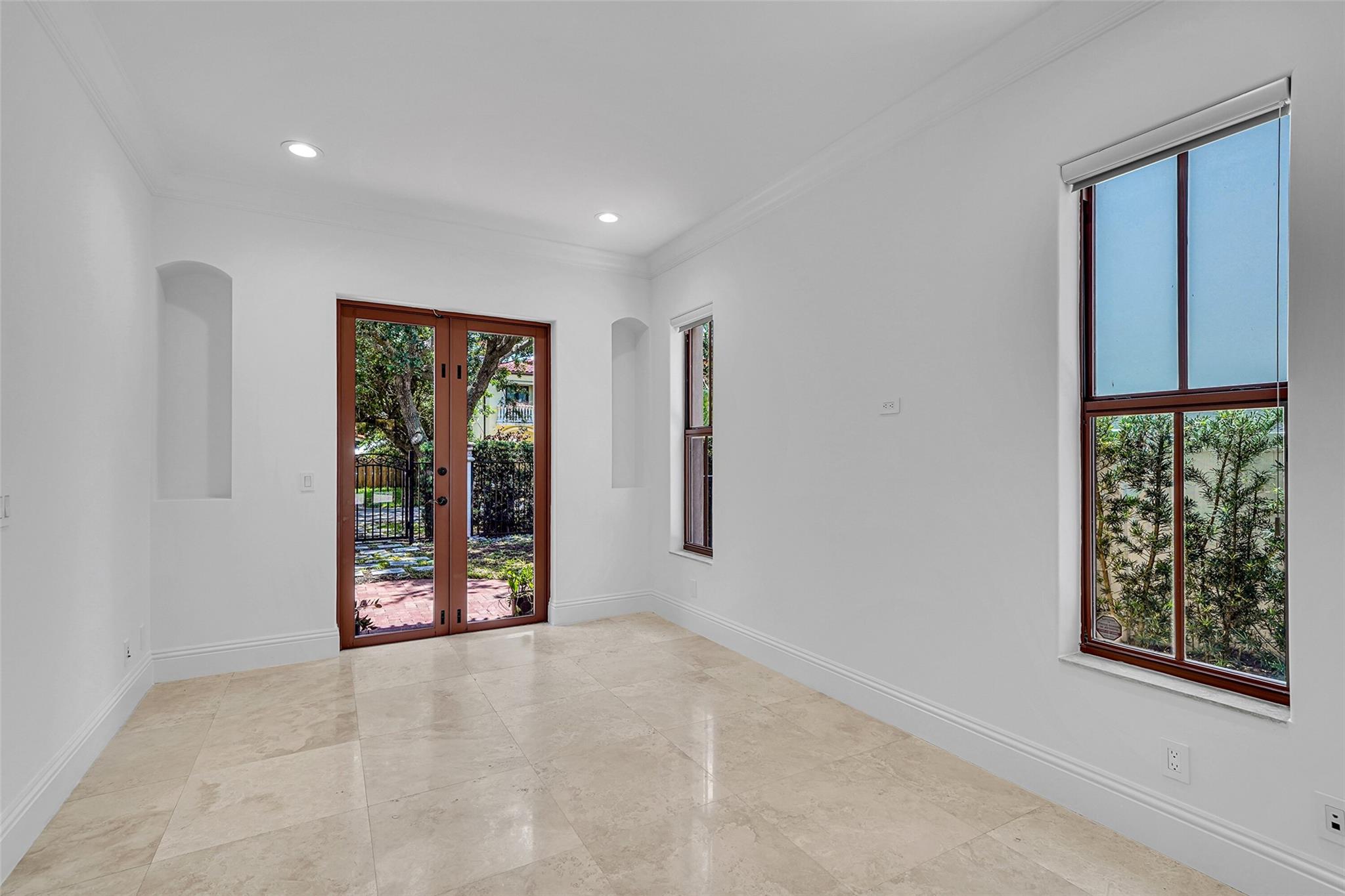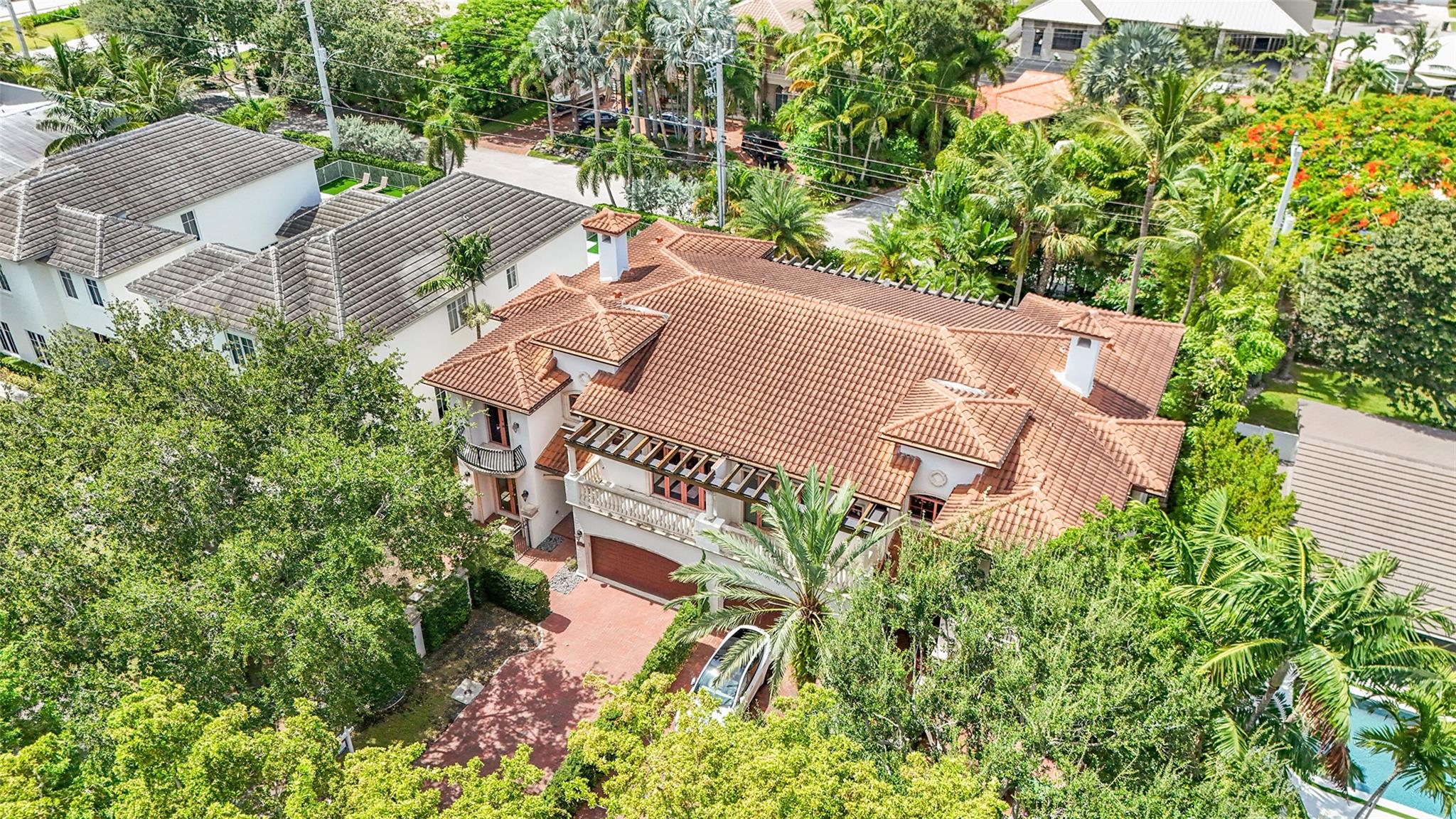 Elegant Mediterranean townhome in Coral Ridge. This 4BR/4.2BA home features a private pool, elevator, 2-car garage, and impact windows/doors. The gourmet kitchen has granite counters, Sub-Zero fridge, Thermador gas range, Bosch appliances, and breakfast area overlooking the fenced yard. Enjoy open yet formal living spaces, Saturnia marble and Brazilian cherry wood floors, custom iron staircase, and 3 balconies. The primary suite offers dual closets, spa bath, and sitting area. Great location! Bayview elementary school. Roof 2017