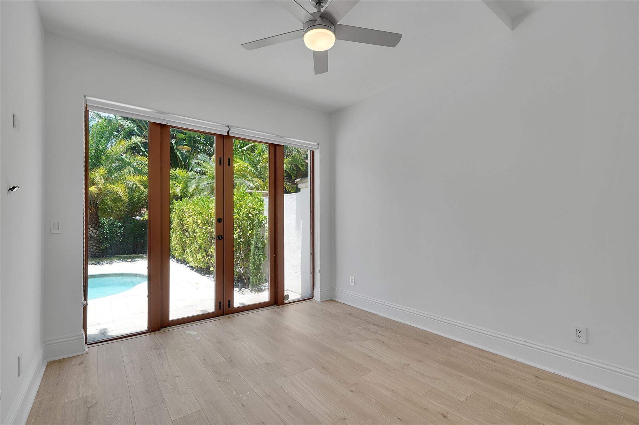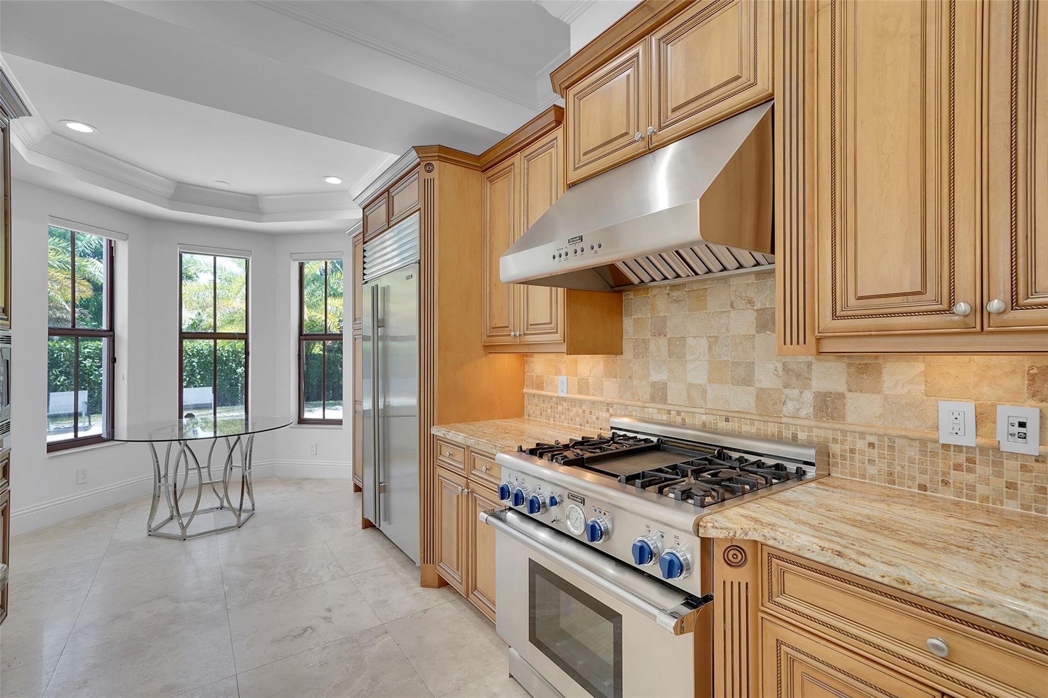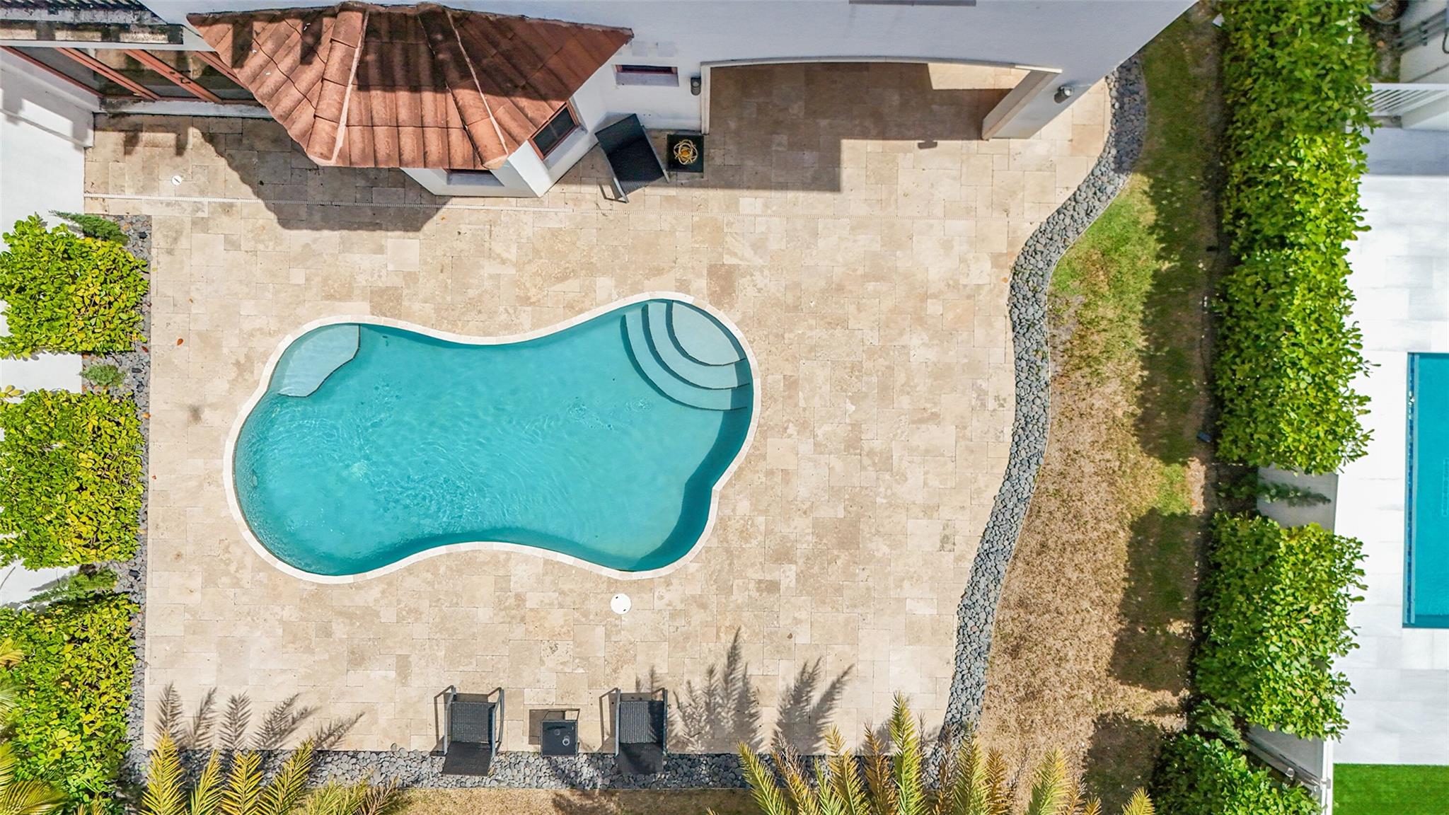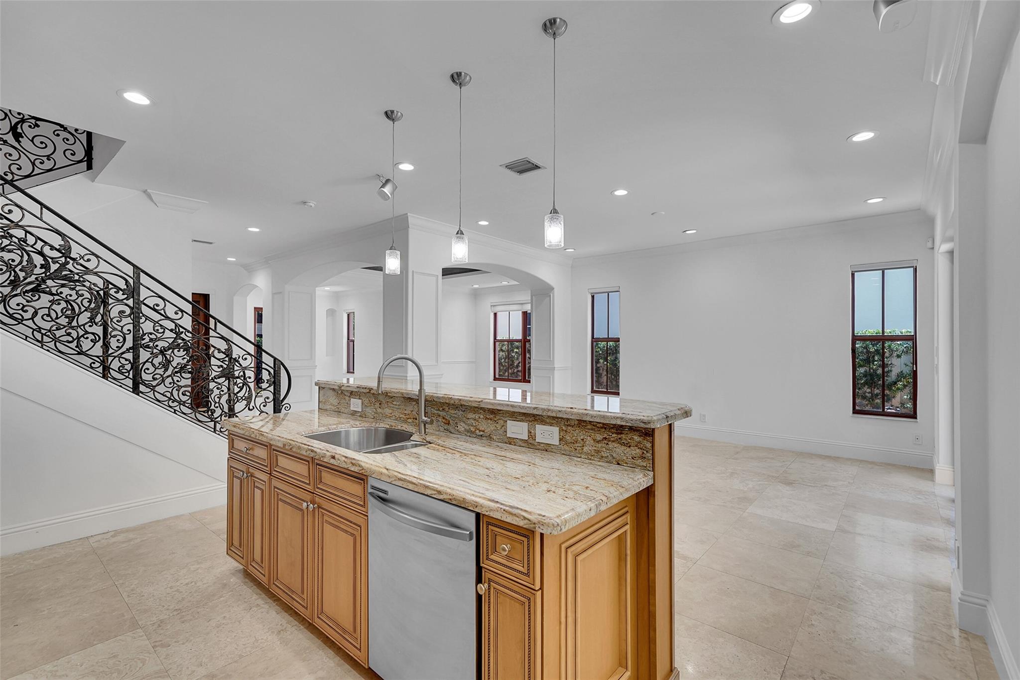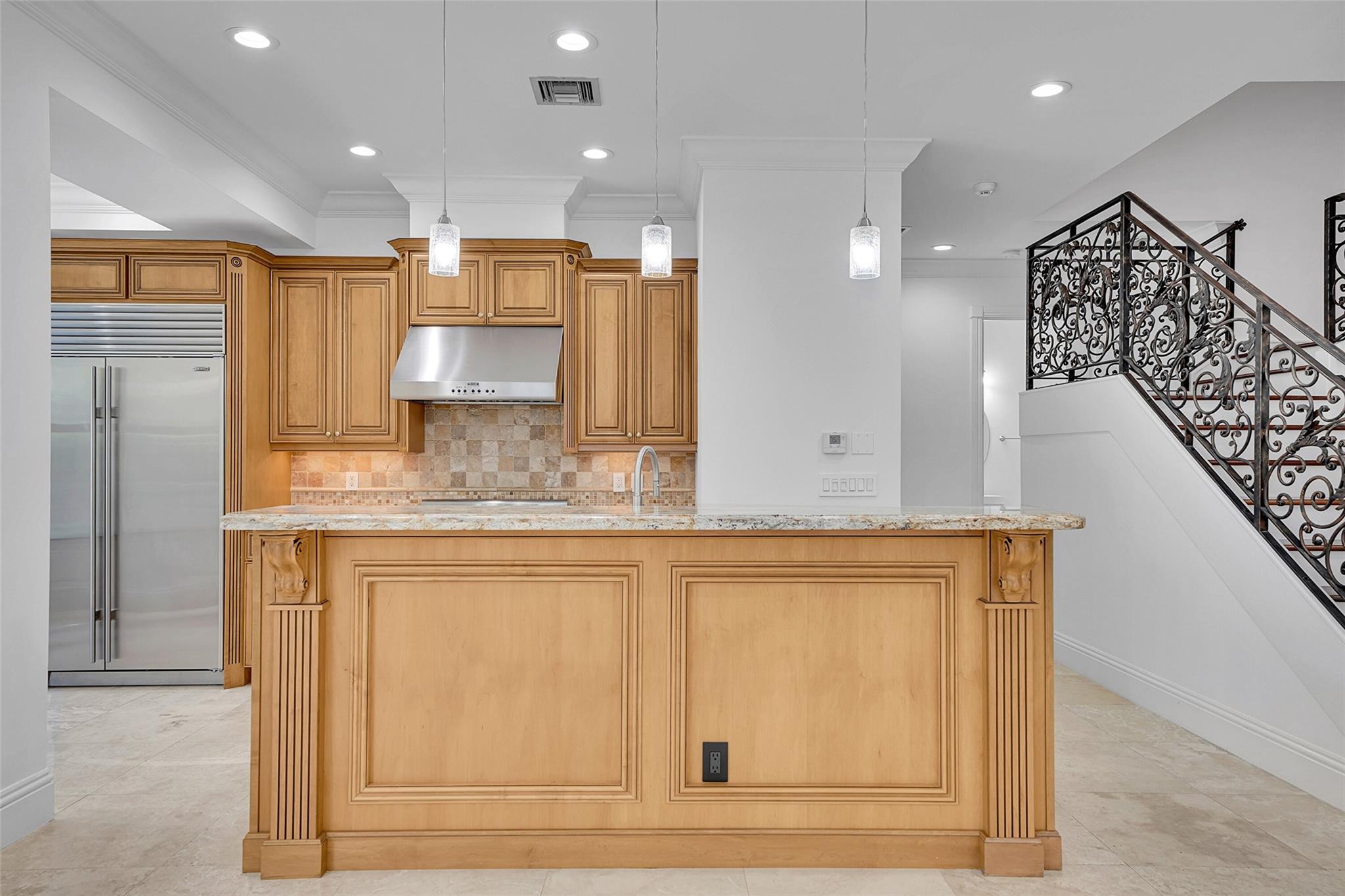 Elegant Mediterranean townhome in Coral Ridge. This 4BR/4.2BA home features a private pool, elevator, 2-car garage, and impact windows/doors. The gourmet kitchen has granite counters, Sub-Zero fridge, Thermador gas range, Bosch appliances, and breakfast area overlooking the fenced yard. Enjoy open yet formal living spaces, Saturnia marble and Brazilian cherry wood floors, custom iron staircase, and 3 balconies. The primary suite offers dual closets, spa bath, and sitting area. Great location! Bayview elementary school. Roof 2017