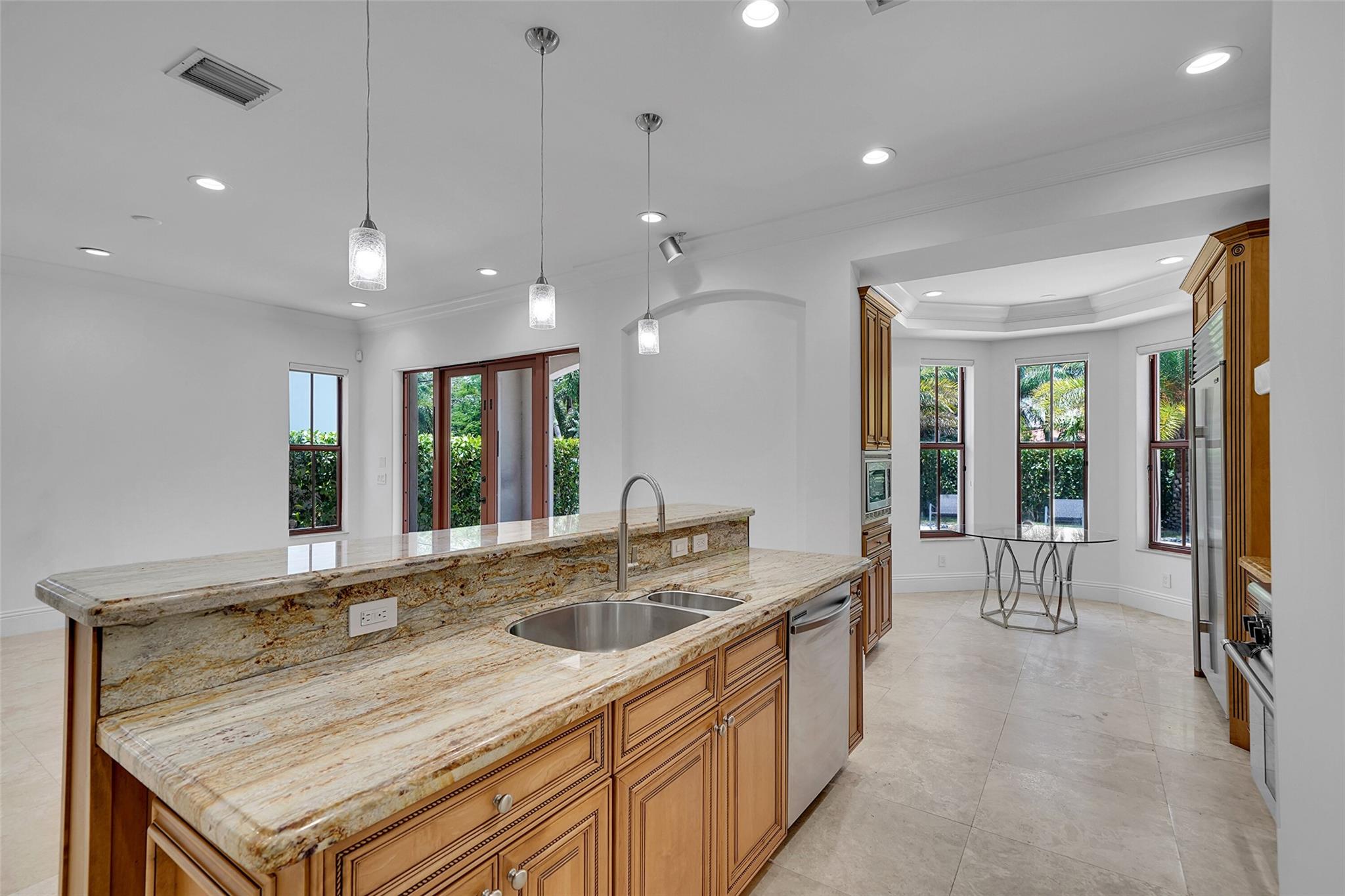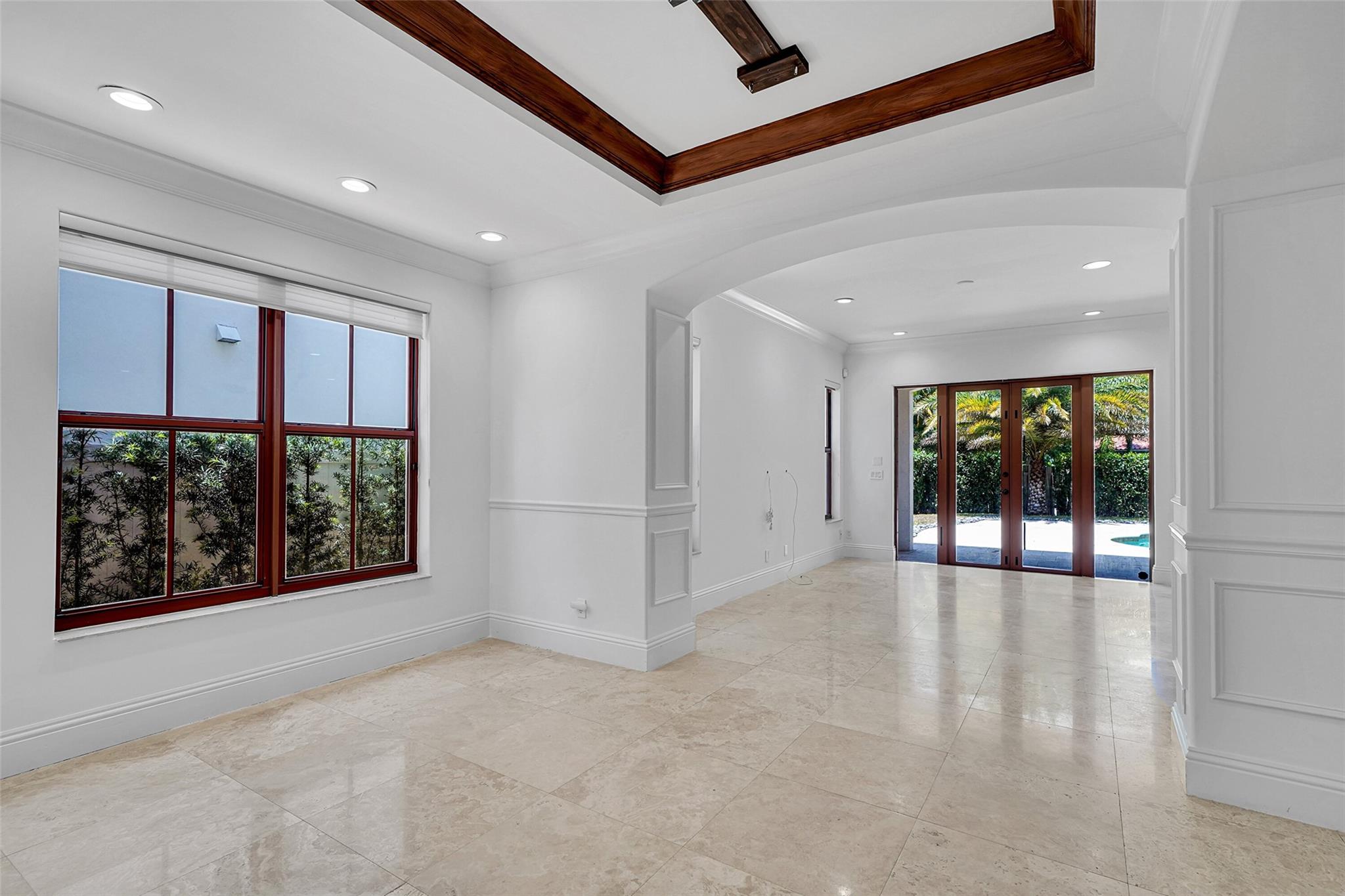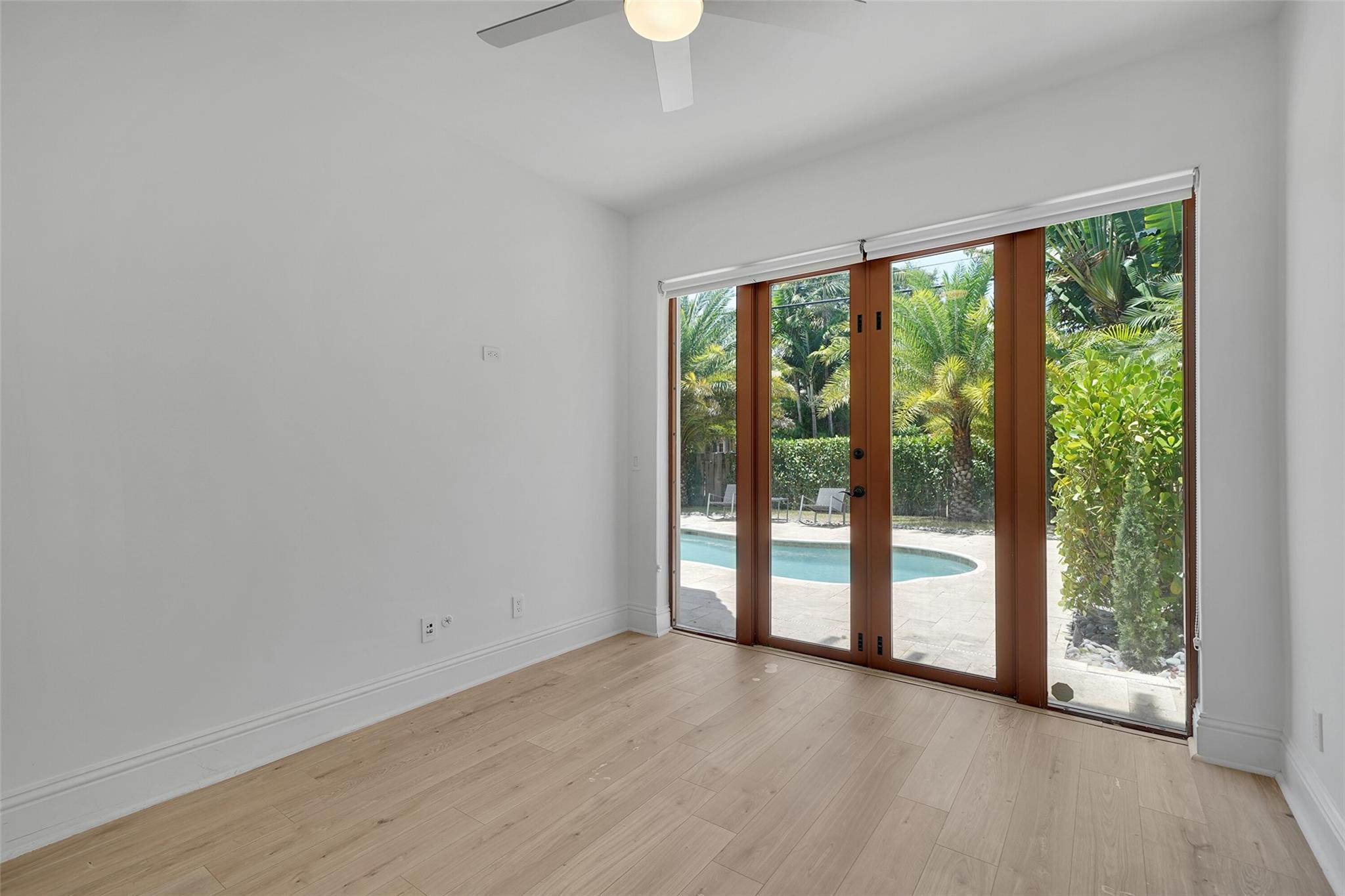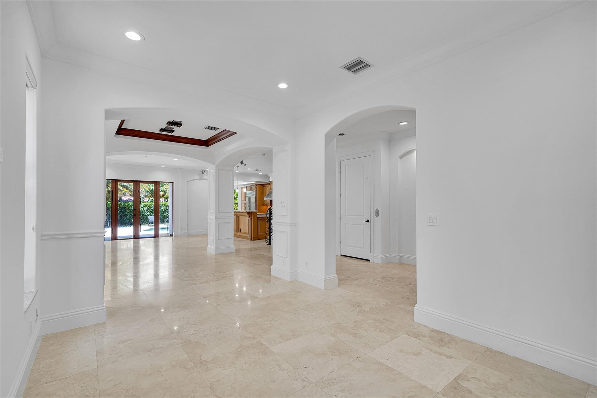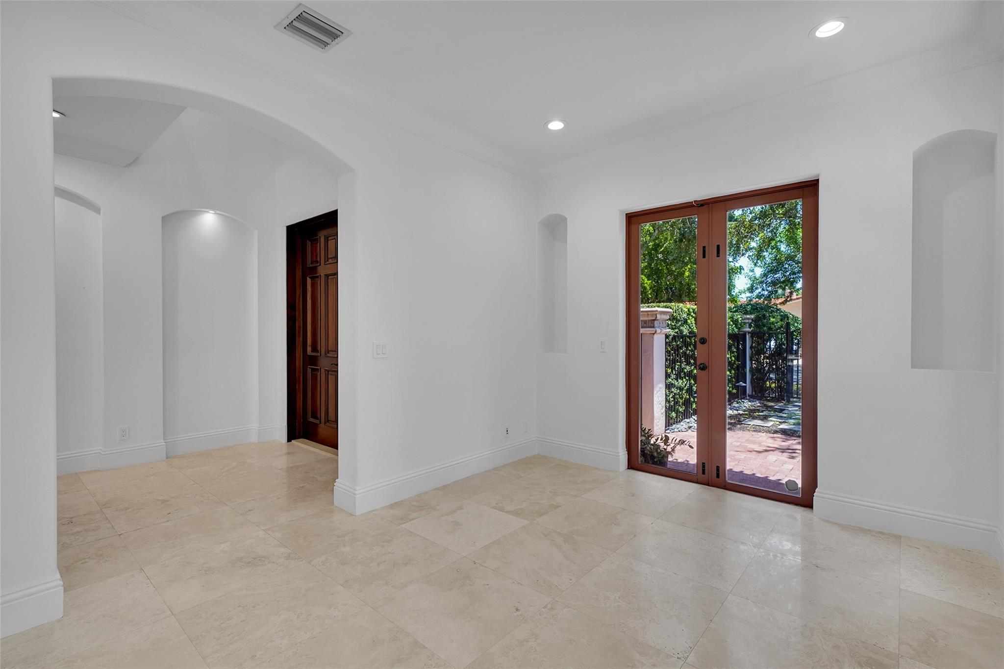 Elegant Mediterranean townhome in Coral Ridge. This 4BR/4.2BA home features a private pool, elevator, 2-car garage, and impact windows/doors. The gourmet kitchen has granite counters, Sub-Zero fridge, Thermador gas range, Bosch appliances, and breakfast area overlooking the fenced yard. Enjoy open yet formal living spaces, Saturnia marble and Brazilian cherry wood floors, custom iron staircase, and 3 balconies. The primary suite offers dual closets, spa bath, and sitting area. Great location! Bayview elementary school. Roof 2017
