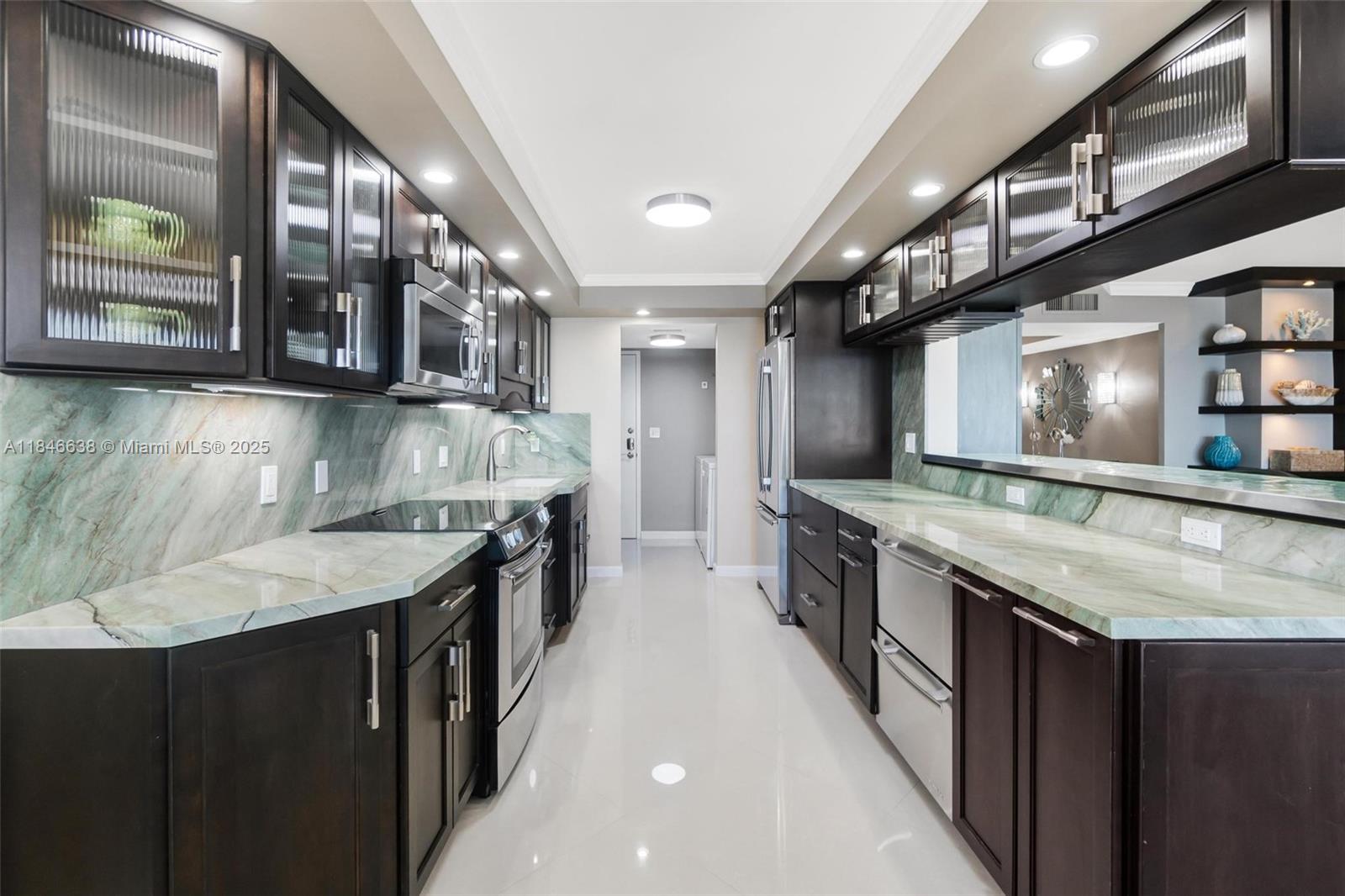 RARE GEM AT THE GALLEON. Direct NE corner unit consisting of 2,350 s.f. with unobstructed stunning ocean views for the discerning buyer. Completely remodeled 3-bedroom, 2-full bath unit exudes coastal elegance. Large kitchen with stainless-steel Jenn Air appliance package. Master bedroom features walk-in closet with an oversized 6-stream shower, double sink, and whirlpool tub. Floor to Ceiling High Impact Windows with 3-doors leading to newly poured concrete 90’ wrap around balcony. The Galleon is being completely upgraded to meet all new codes.Over $240,000 in special assessments paid in full. Brand new resort style pool along with new BBQ area on beach coming soon. Upgraded party rooms, 2-modern gyms, & private beach. Walk to LBTS, grocery store, places of worship, restaurants, and more.