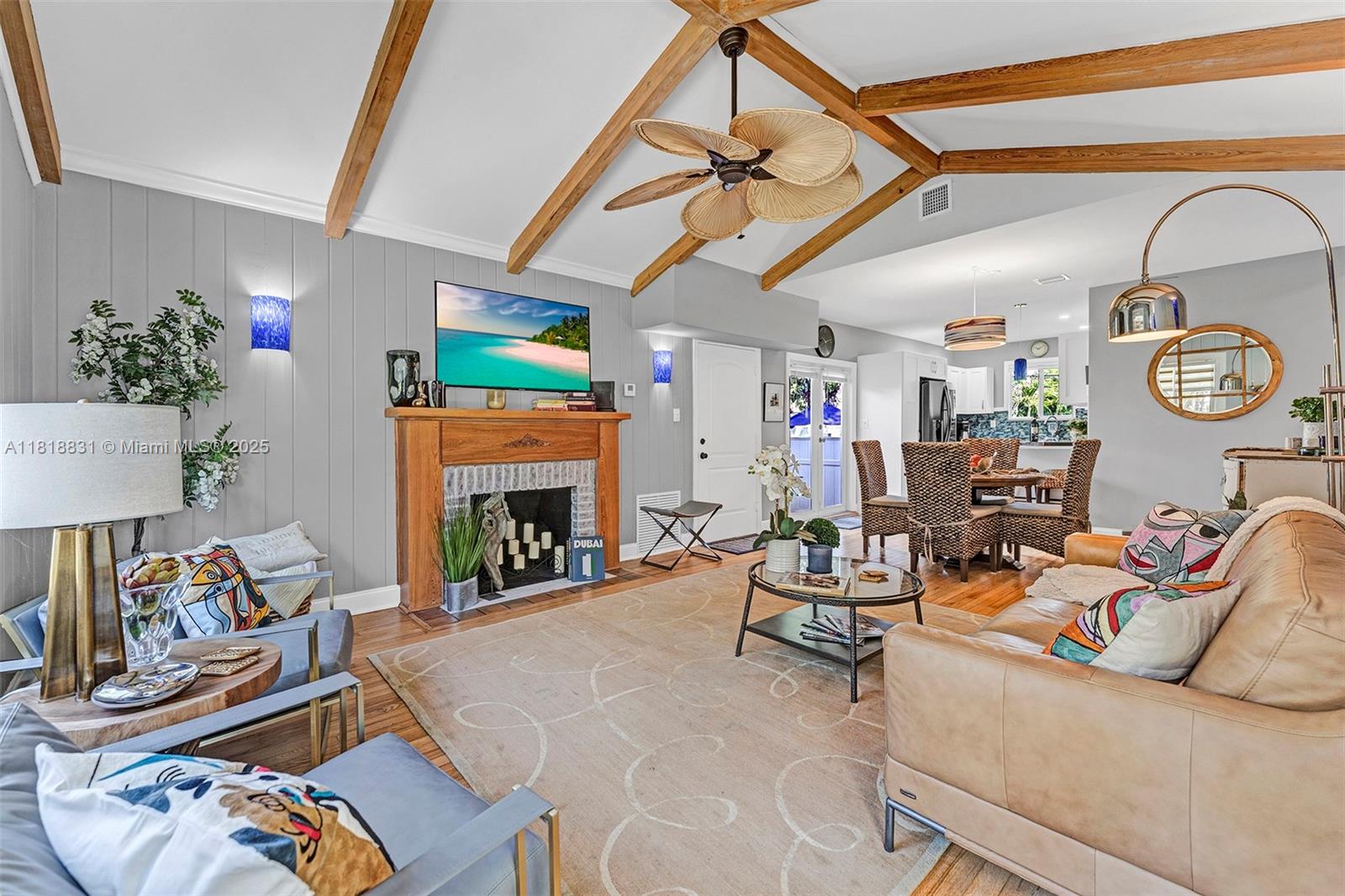 Rio Vista Gem! PLEASE NOTE: AIR CONDITIONED LIVING SPACE WAS INCREASED TO 1114 SF WHEN HOUSE WAS REMODELED, AS PER OWNER. Renovated charmer was lovingly updated with luxurious finishes and contemporary sophistication. Abundant sunlight, all open living area with exposed beam ceilings, rich hardwood floors, a classic brick fireplace, Zen inspired bathrooms, a welcoming front porch and spacious back yard with mature landscaping, compliment this home’s original charm. Enjoy peace of mind with impact windows & doors, newer roof & gutters, plumbing, electrical, AC, Tankless water heater & upscale appliances. Ideal location, close to downtown, Las Olas and Ft Laud beach, an ideal blend of style, serenity, and a smart investment, this is a perfect home for AirBnB or as a primary residence