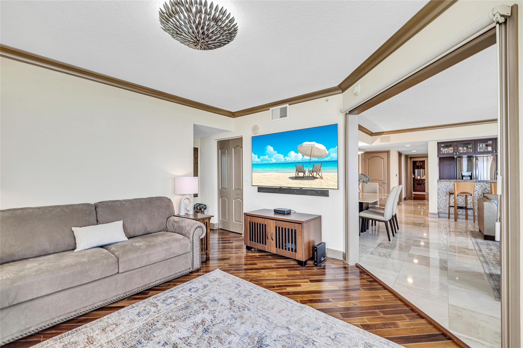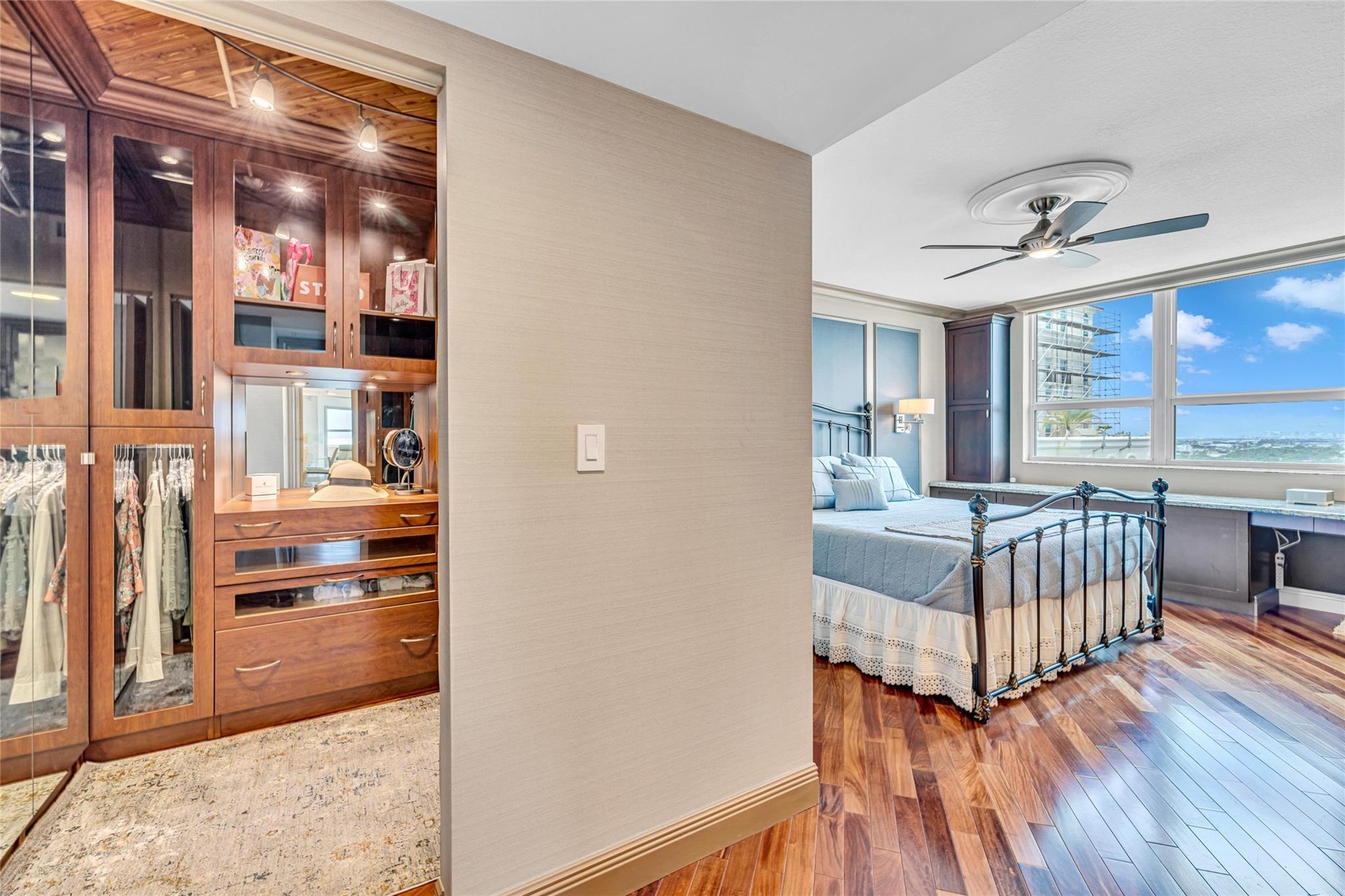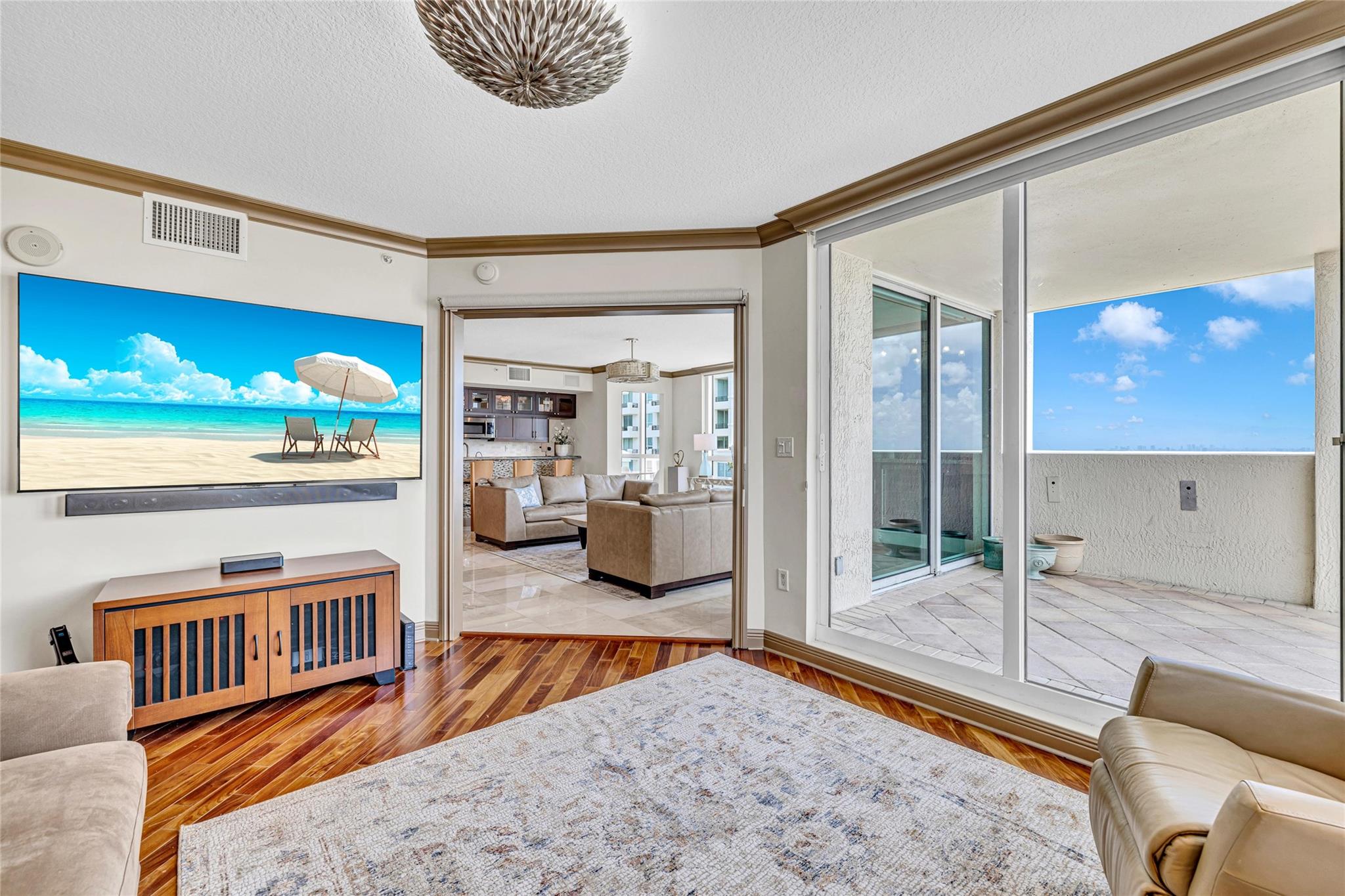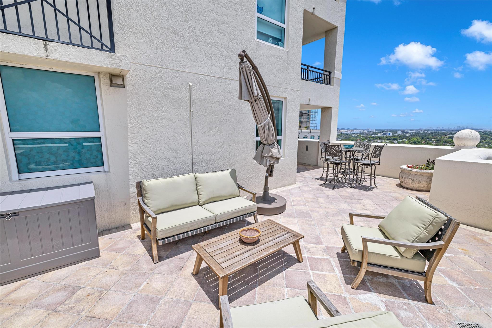 Soaring above the skyline, this customized 3-bed, 3 full-bath Sub-Penthouse offers panoramic views of the Miami and Fort Lauderdale skyline, New River, and Sailboat Bend. A 500 sq ft wraparound terrace plus a second balcony off Bedroom 2 provide exceptional outdoor living. Marble and Brazilian cherry wood floors complement a custom kitchen, bar, and granite-topped workspace in the primary suite. Filled with natural light, the home also features Sonos sound, Ecobee thermostat, Hunter Douglas Roman shades, and V-Kool window film. Includes two 2nd-floor parking spaces. Amenities: dockage to 40’ with no fixed bridges, heated pool, 3 hot tubs, fitness center, salon, wine storage, cigar lounge, valet, and more — all in the heart of Fort Lauderdale. Fully furnished option negotiable.