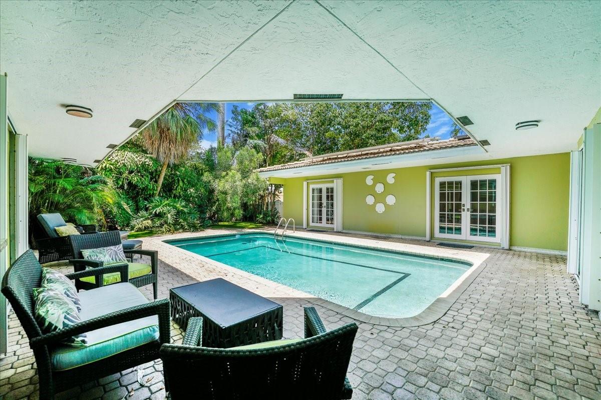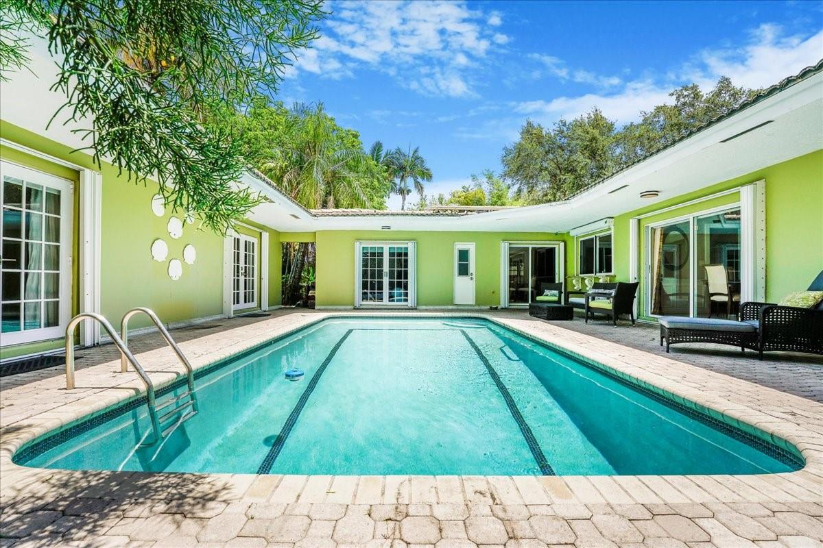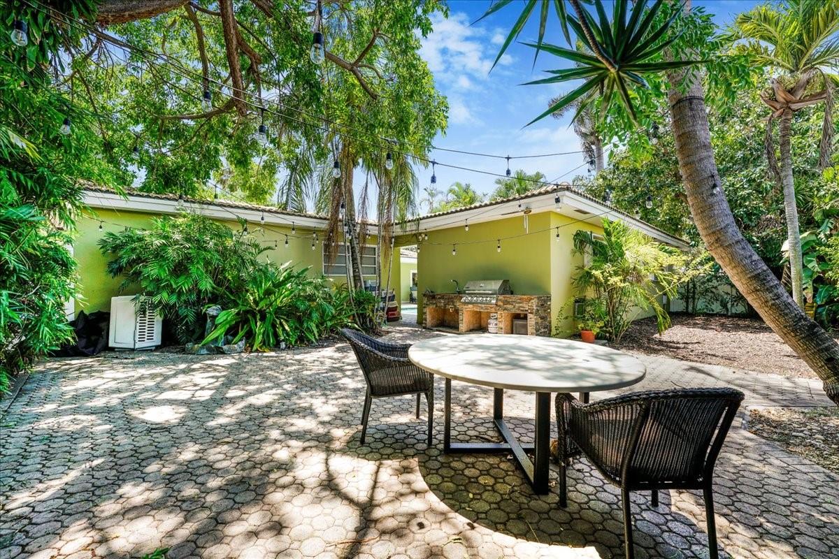 Highly desirable Imperial Point corner lot property. The property boasts beautiful landscaping and offers complete privacy. The main house comprises four bedrooms and three full bathrooms, while a detached guest house provides two bedrooms and a full bathroom and brings the total square footage to over 3000 sq ft. Ample parking is available with a garage and two driveways. The outdoor area includes a patio with a built-in grill and sink. The property’s proximity to entertainment, shopping, dining, and the beach further enhances its appeal.