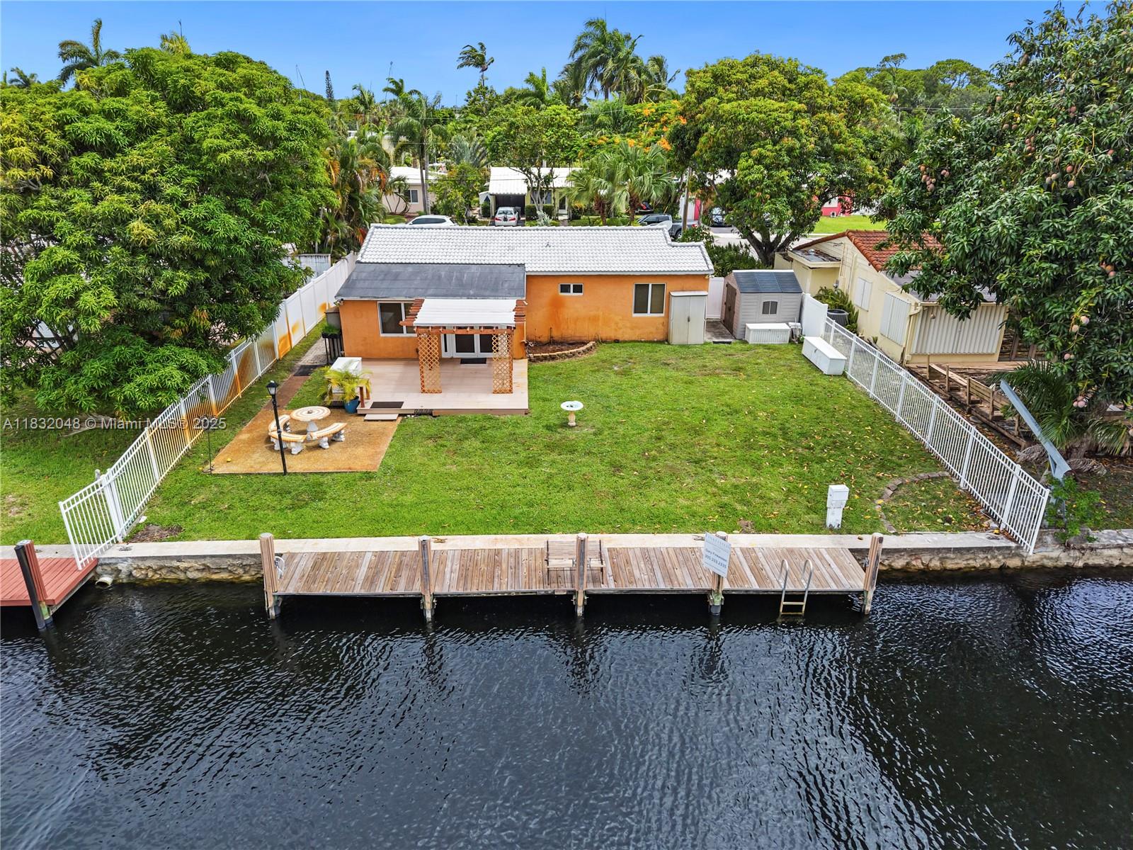 For the first time ever available to the public, 1328 Mango Isle is one of the original homes built on the Isles, owned by the same family since 1953. This waterfront property offers strong fundamentals with numerous functional upgrades: impact windows and doors, updated electric and plumbing, new tile roof, tankless water heater, AC, closed-in carport, and a dock with water and electric (boards replaced in 2023). Also features a new deck with pergola, sprinkler system, and full fencing. Can easily be converted to a 3 bed/2 bath. Located just minutes from Las Olas, the beach, and downtown Fort Lauderdale — an unbeatable location with history, land, and long-term potential.