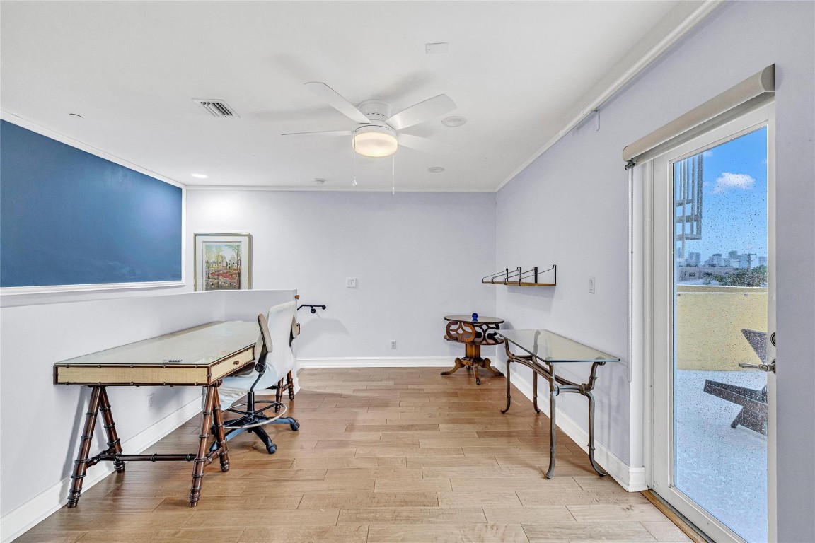Stylish Victoria Park townhome with elevator, three spacious balconies, and a stunning rooftop terrace. A gated garden entry leads to expansive living areas and a chef’s kitchen with premium appliances, gas range, center island, and abundant cabinetry. Sunlight pours through east-facing bay windows, enhancing the open layout. Also on this level: two-car garage, pantry, powder room, and elevator. Upstairs, the luxurious primary suite features a remodeled bath, generous walk-in closets, and private balcony. Two additional bedrooms, an updated bath, and laundry complete the second floor. The top level includes a loft-office, full bath, and fourth bedroom with private balcony and access to rooftop terraces. This is a prime location near beaches, Las Olas, shopping, dining, and parks.