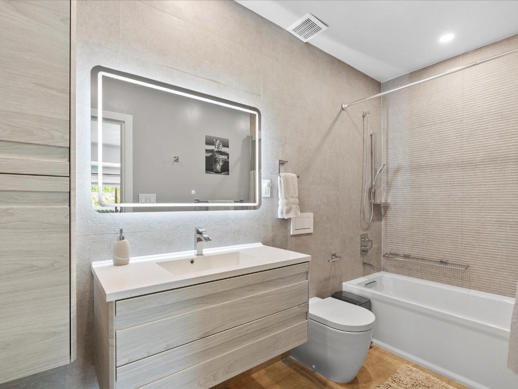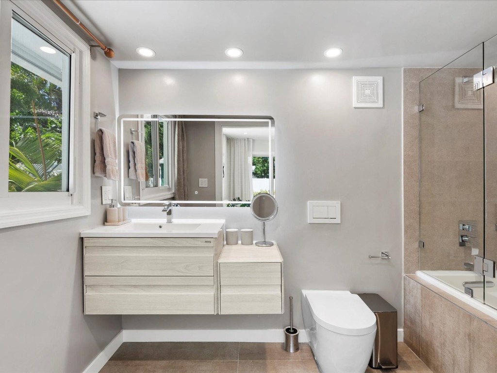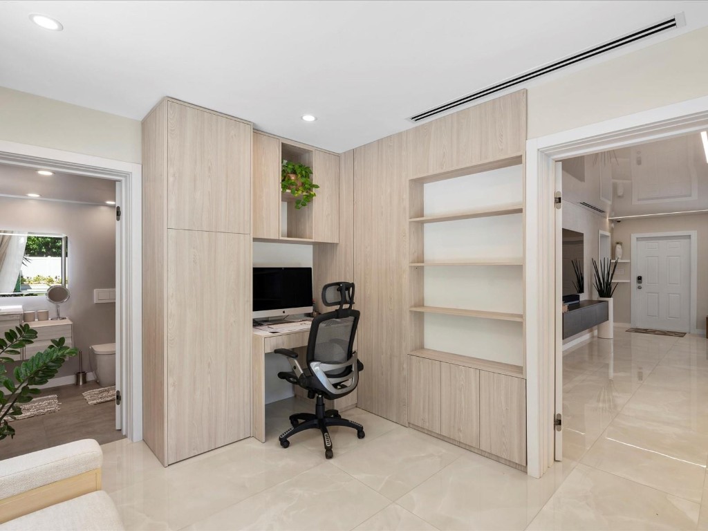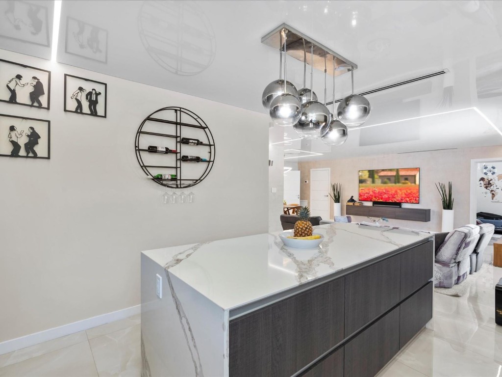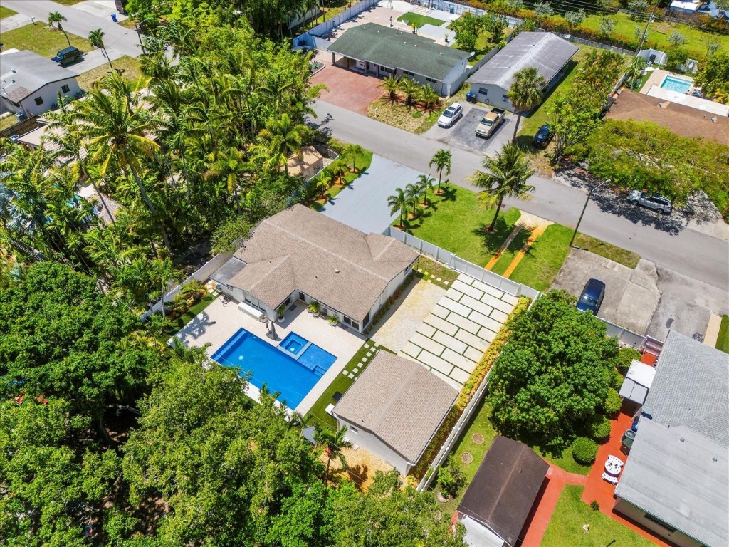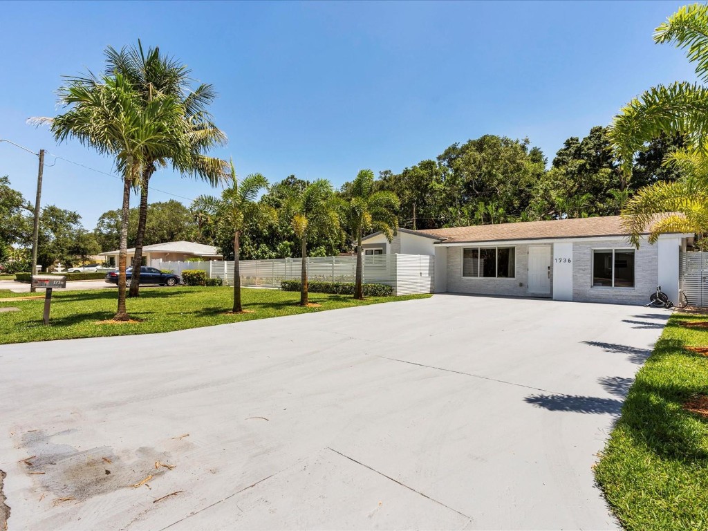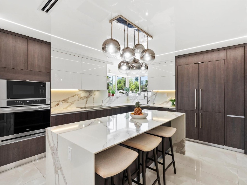 Designer-reimagined and totally renovated in 2022, this stunning 3-bed, 3-bath home offers luxury living inside and out. Features include custom closets, kitchen, built-in furniture, stretch ceilings, dimmable lighting, and new A/C. The modern layout includes a spacious kitchen with large island. All major systems have been updated: new roof, plumbing, electrical, and full hurricane-impact windows and doors. The spa-like master bathroom includes a custom steam room. Outside, enjoy a resort-style saltwater heated pool with hot tub and spa. A new aluminum fence surrounds the property, which also features a new driveway and detached garage with tankless water heater. This turnkey home combines style, comfort, and peace of mind—ideal as a luxury residence or high-end rental.