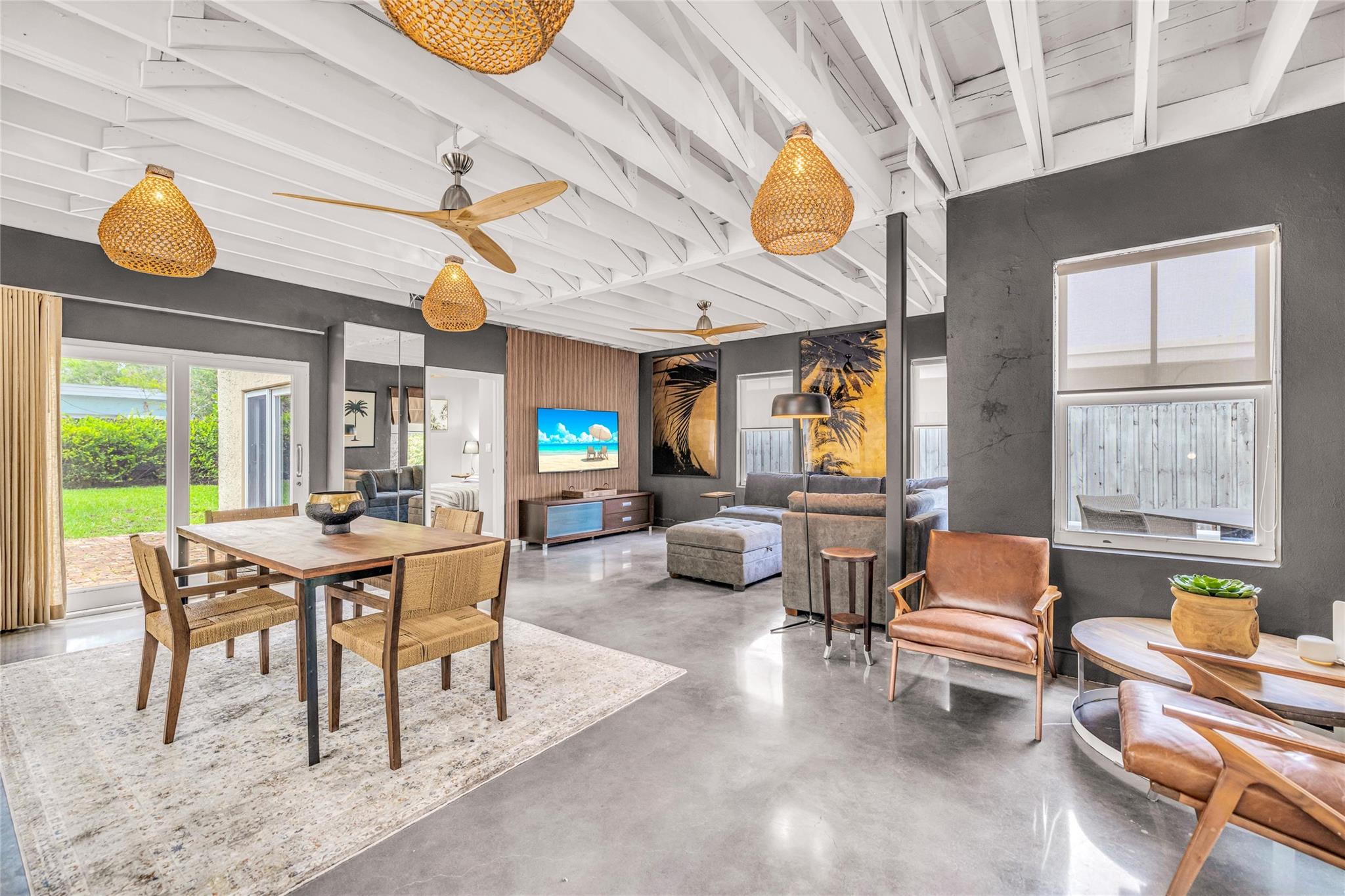 ZONED SRAC-SAE – One of Fort Lauderdale’s most powerful and flexible zoning designations! This fully renovated, fully furnished 2BR/1BA gem in Poinciana Park allows for bars, lounges, restaurants, cafés, retail, creative offices, venue space & more. A rare turnkey live/work setup with polished concrete floors, dramatic exposed wood-beamed ceilings, impact windows, designer finishes, and updated systems. Lush tropical landscaping, private screened porch, circular driveway, and space to expand, add a pool or create. Surrounded by rapid development and located minutes to Las Olas, Airport, Downtown, and the famed Fort Lauderdale beach. Refer to BCPA for accurate square footage. Adjacent parcels may also be available—ask for details!