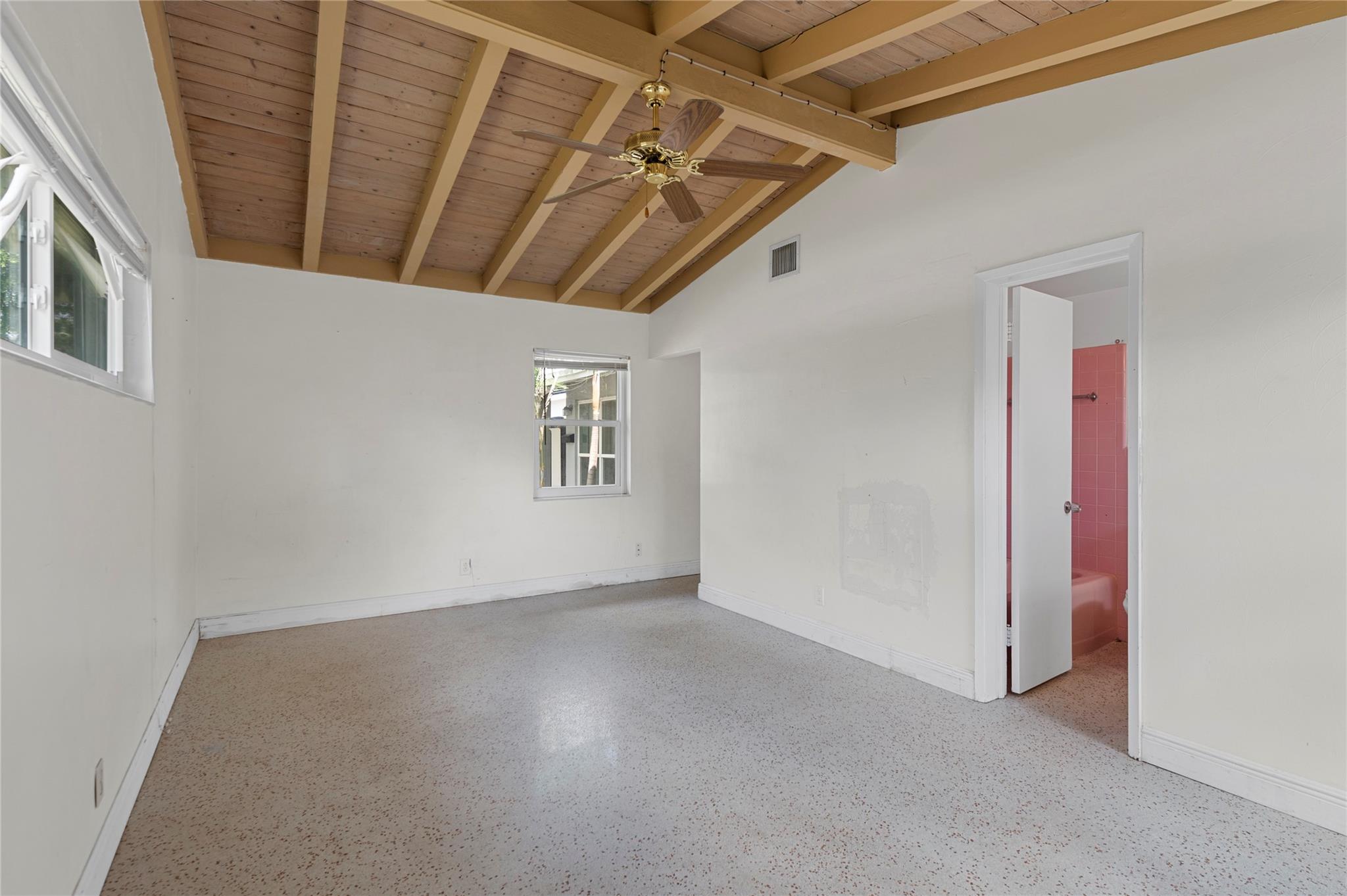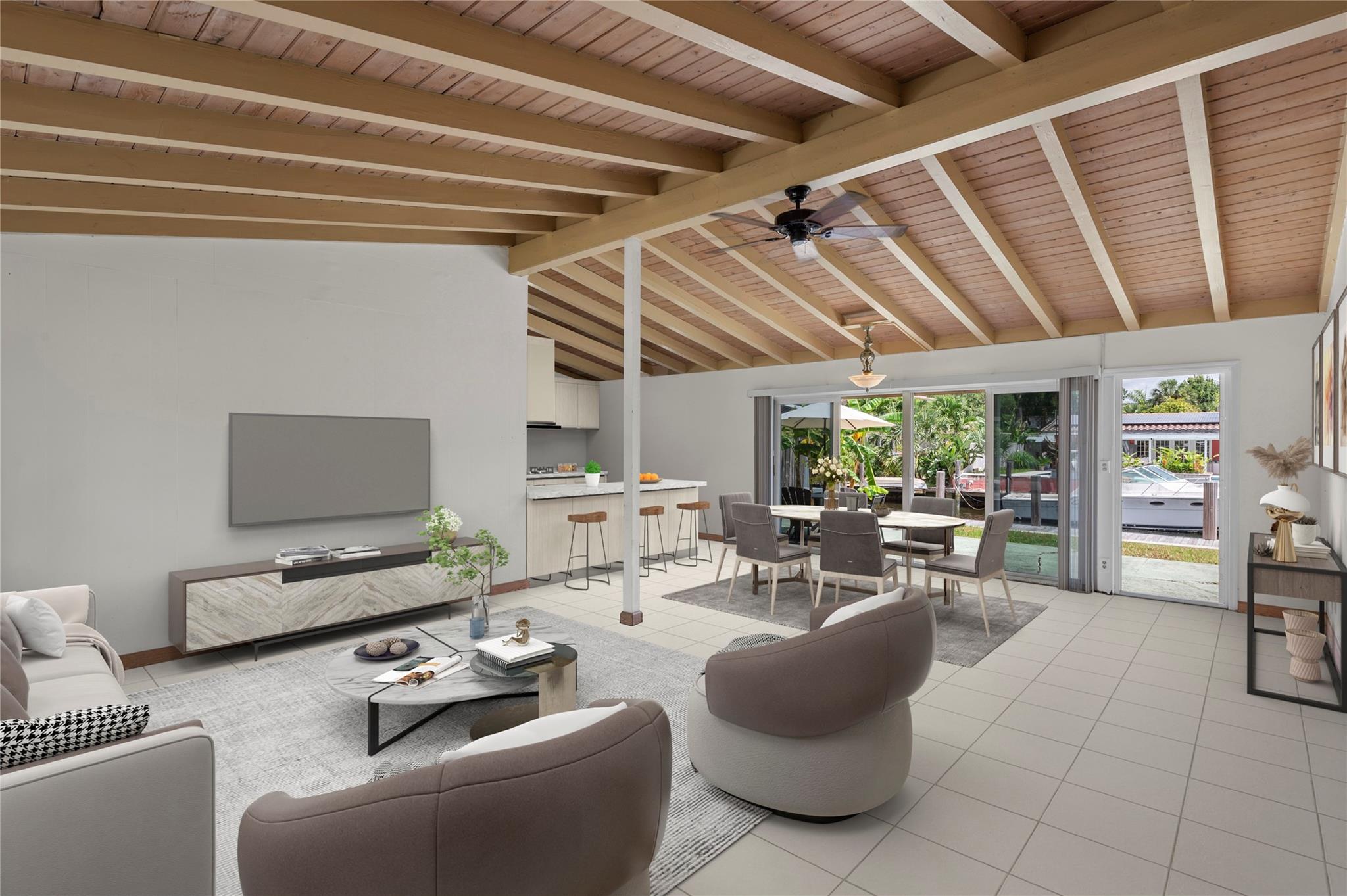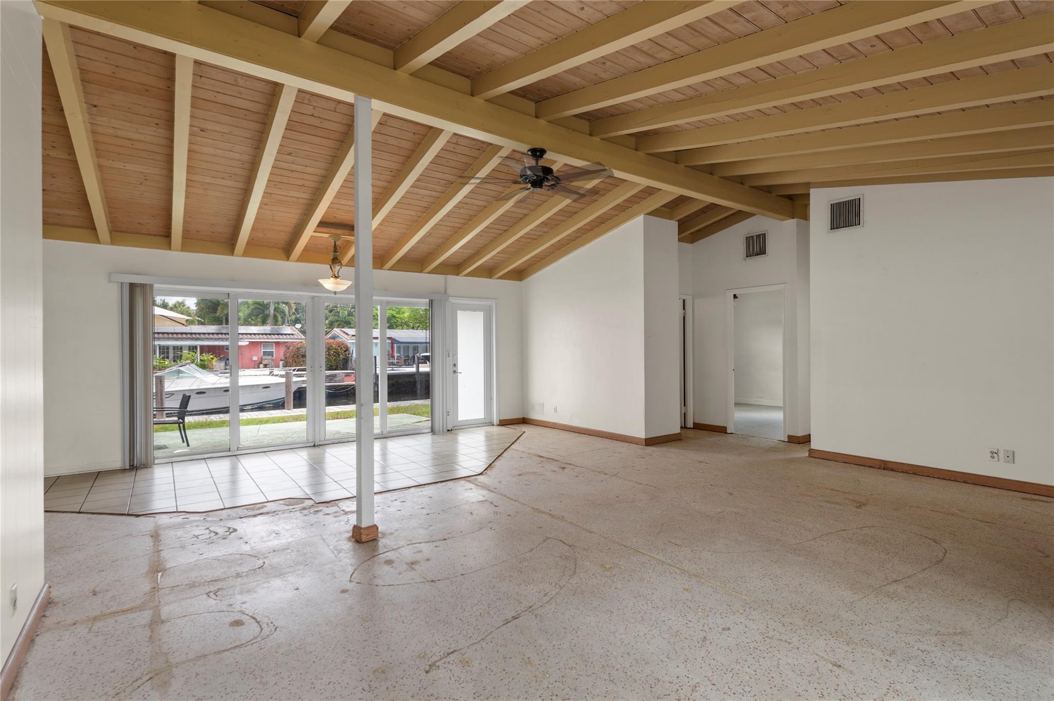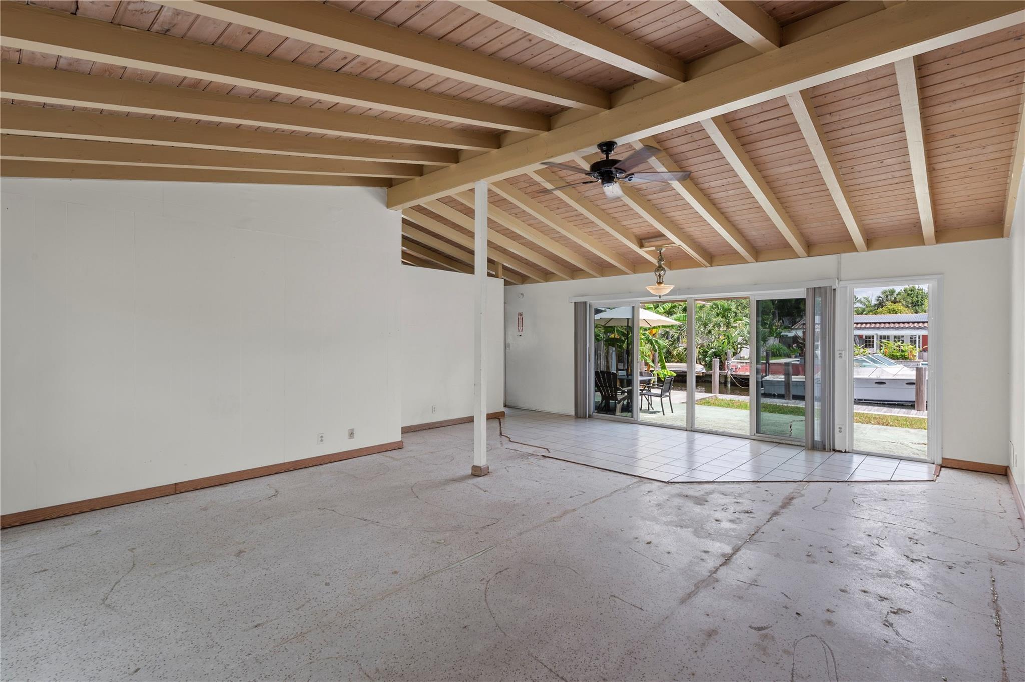 Discover Fort Lauderdale's lowest-priced waterfront opportunity east of I-95 - offering access to the ocean with no fixed bridges! Enjoy the freedom to cruise the Intracoastal and beyond directly from your private 65’ dock. This 3-bed, 2-bath single-story home is loaded with character and ready for your vision. It features original terrazzo floors, vaulted ceilings with exposed Dade Pine beams, full impact windows, newer A/C, and tons of natural light. The large backyard is perfect for entertaining. Located minutes from Downtown Ft Laud, Brightline, I-95, airport, and cruise port, you’re at the center of convenience and lifestyle. Picture weekend boat outings, sunset dockside cocktails, and the satisfaction of transforming a hidden gem. Act fast to claim your slice of waterfront paradise.