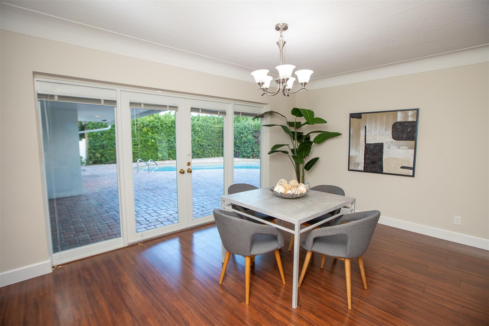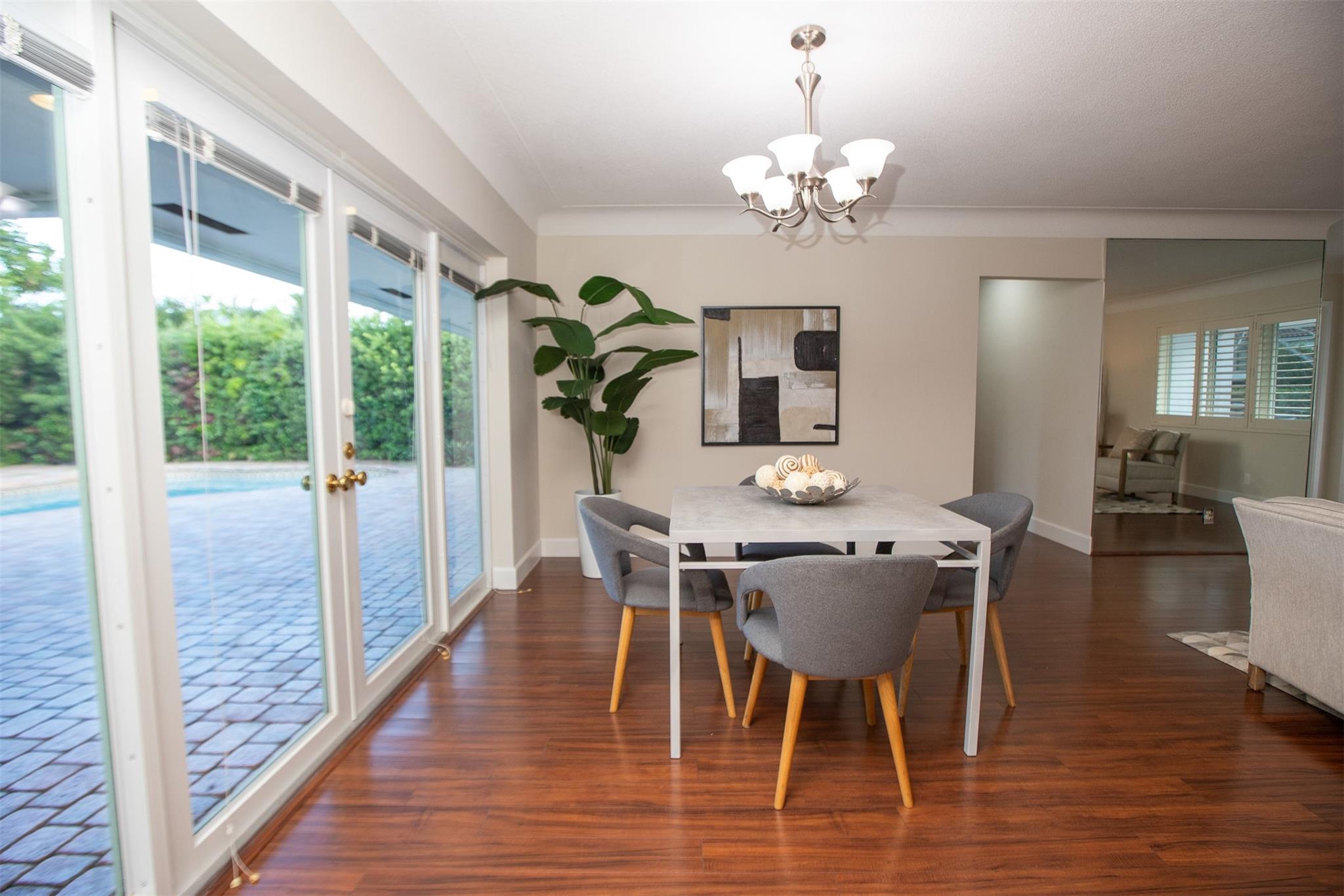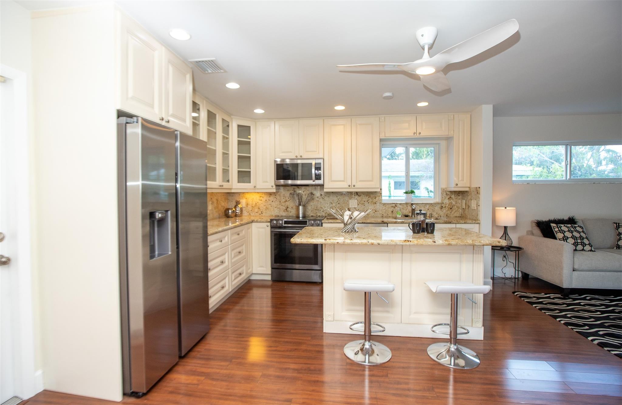 Beautifully updated 3-bedroom, 2-bath home in sought-after Coral Ridge Isles—just minutes from the beach and downtown Fort Lauderdale. This spacious split-floor plan features an open kitchen with granite countertops, stainless steel appliances, and wood flooring throughout. All impact windows and doors provide security and energy efficiency. Step outside to a large pool deck and sparkling swimming pool—perfect for entertaining. The oversized 2-car garage features a beautifully designed epoxy floor, and the huge circular driveway offers plenty of parking. Incredible location near top schools, shopping, dining, and the beach.