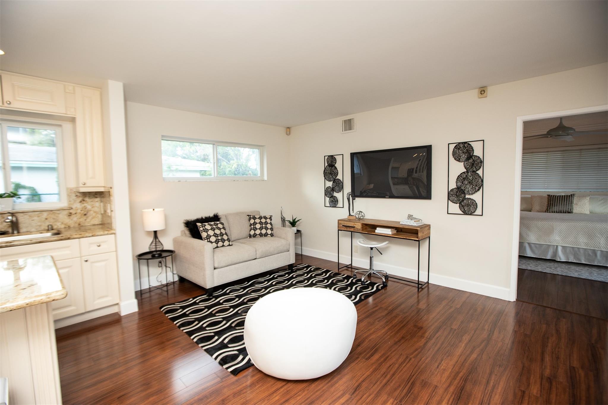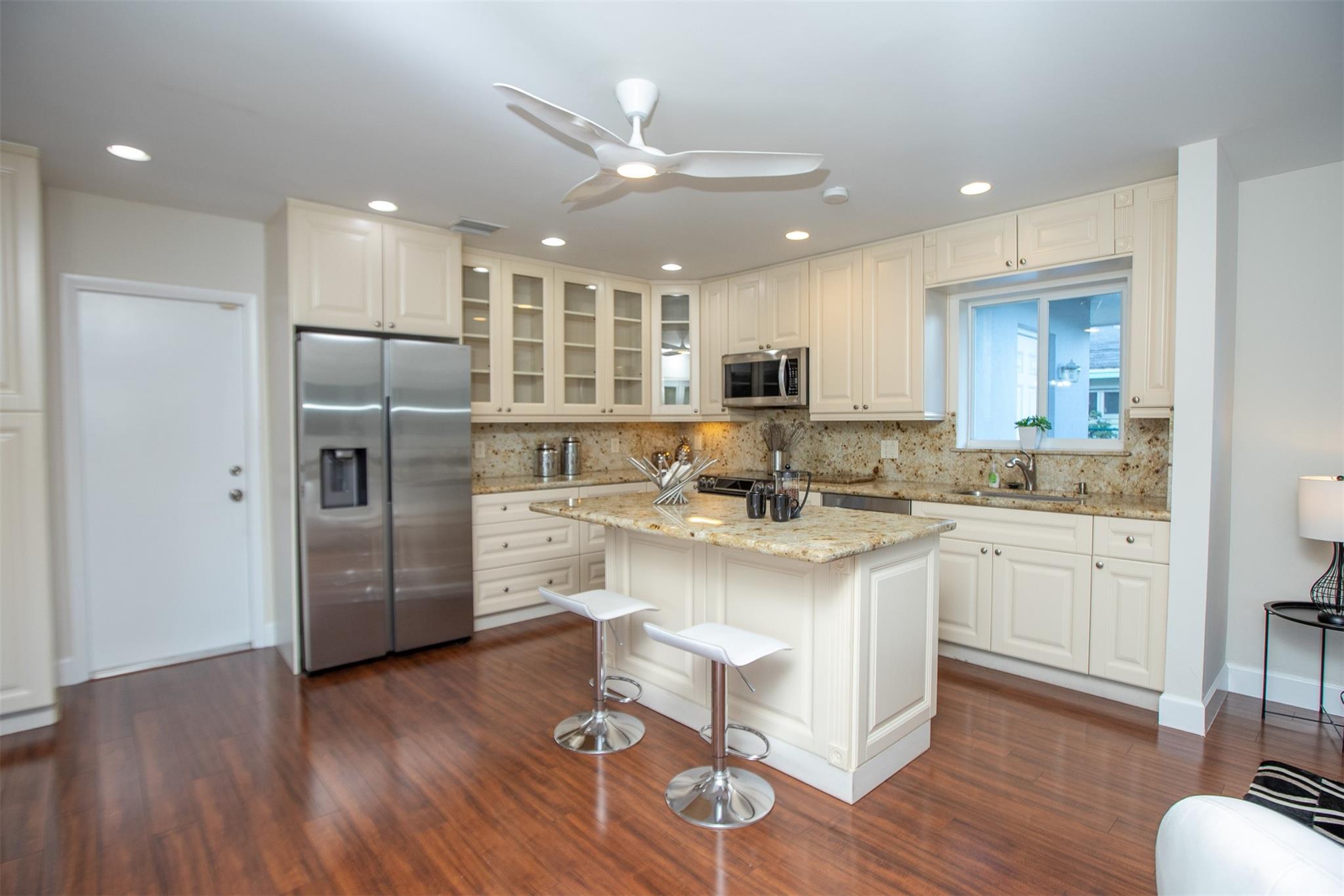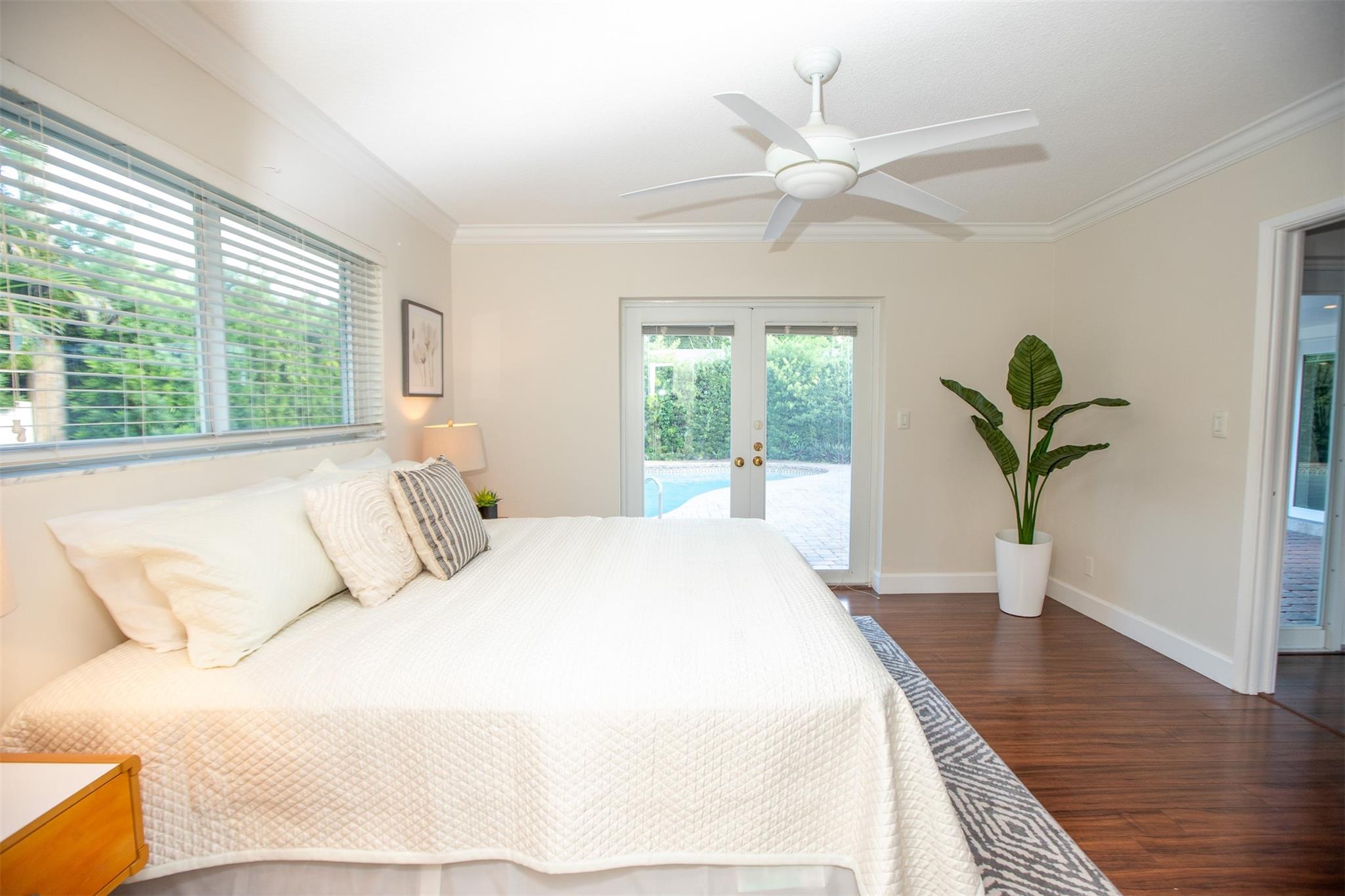 Beautifully updated 3-bedroom, 2-bath home in sought-after Coral Ridge Isles—just minutes from the beach and downtown Fort Lauderdale. This spacious split-floor plan features an open kitchen with granite countertops, stainless steel appliances, and wood flooring throughout. All impact windows and doors provide security and energy efficiency. Step outside to a large pool deck and sparkling swimming pool—perfect for entertaining. The oversized 2-car garage features a beautifully designed epoxy floor, and the huge circular driveway offers plenty of parking. Incredible location near top schools, shopping, dining, and the beach.
