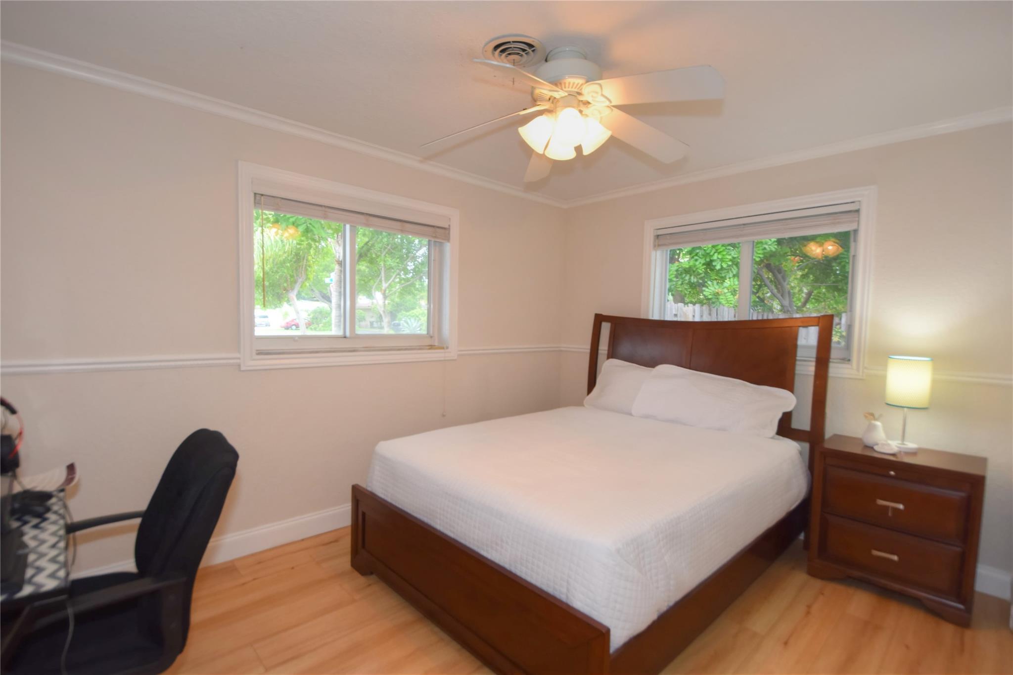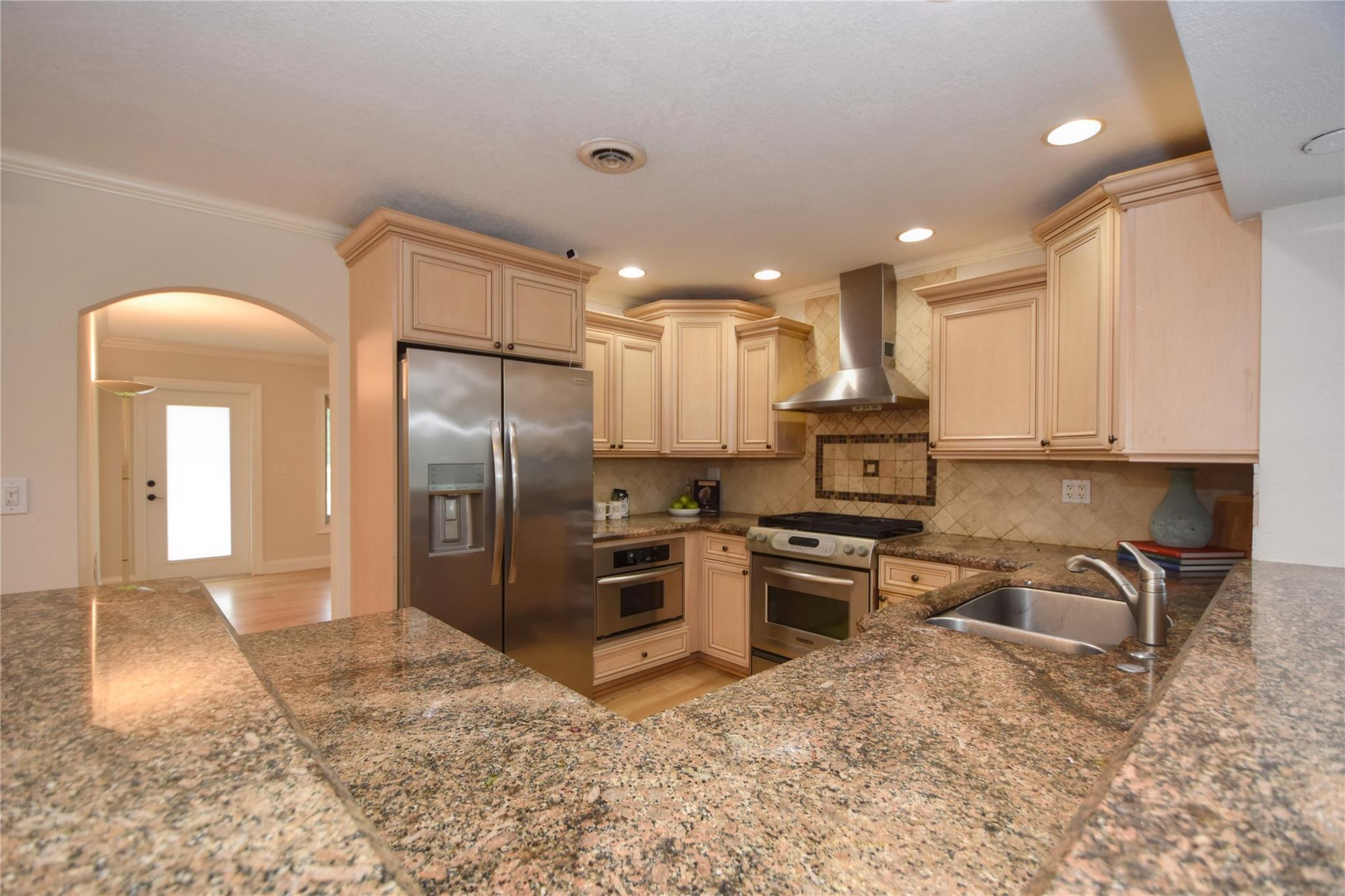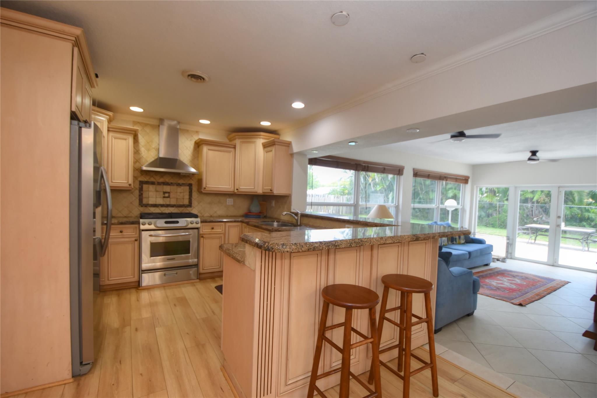 Well-maintained 3/2 home on a lg, fully fenced corner lot with pool, impact windows, & oversized 1-car garage. Split floor plan featuring a natural gas stove, tankless gas water heater & energy-efficient design throughout. Gated side access allows secure storage for boat or trailer. Located in a desirable neighborhood with no HOA, Kitchen includes custom cabinetry, bar-height counters, high-end appliances & a built-in wine chiller/bar cabinet. Additionally: custom blinds, dimmer switches, interior laundry, new fans in family rm, & updated lighting in dining area. Exterior includes a separate irrigation system to reduce water costs, a storage shed, & ample yard space for recreation or expansion. This is not a model home—it offers thoughtful features & character!