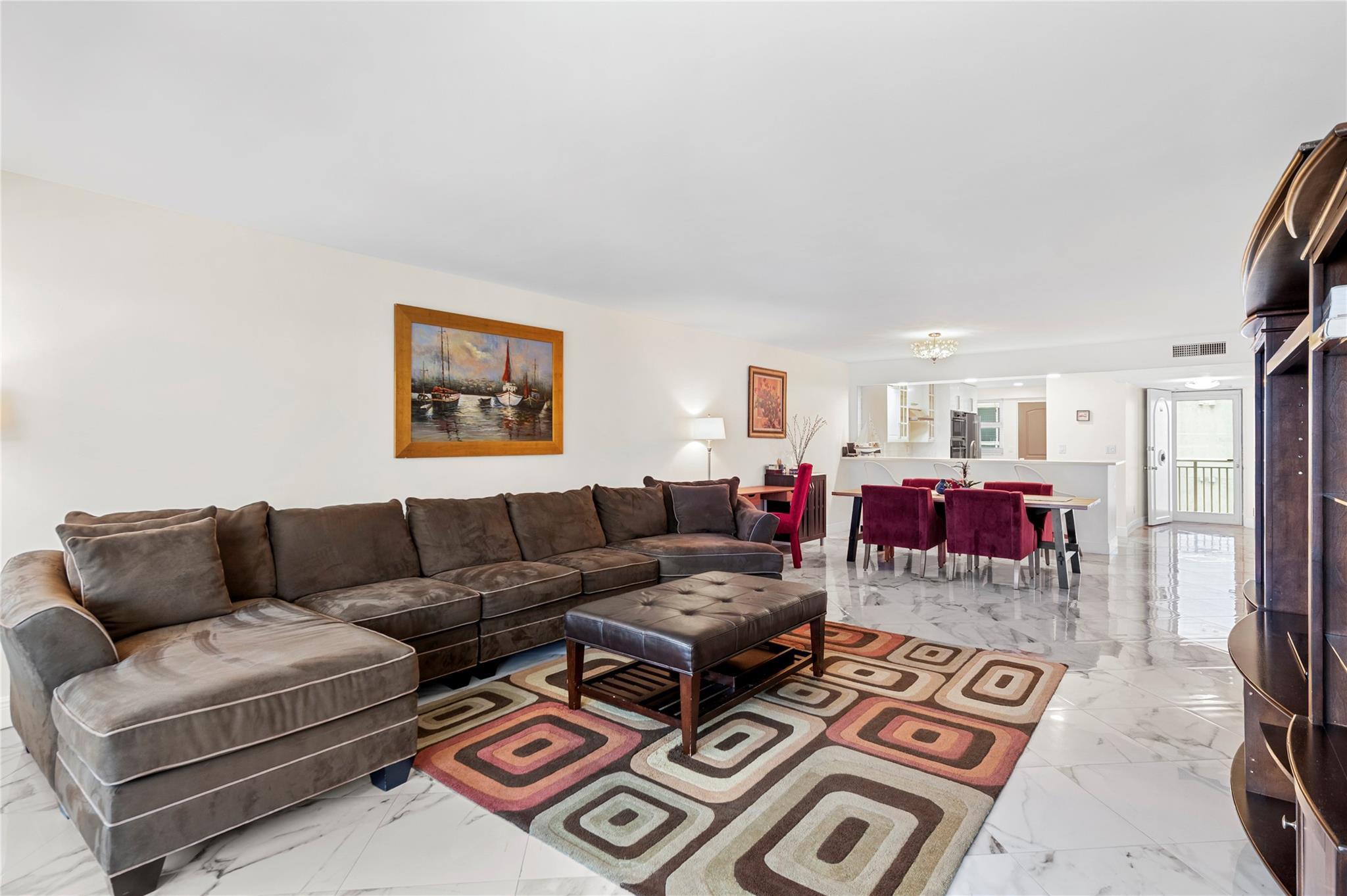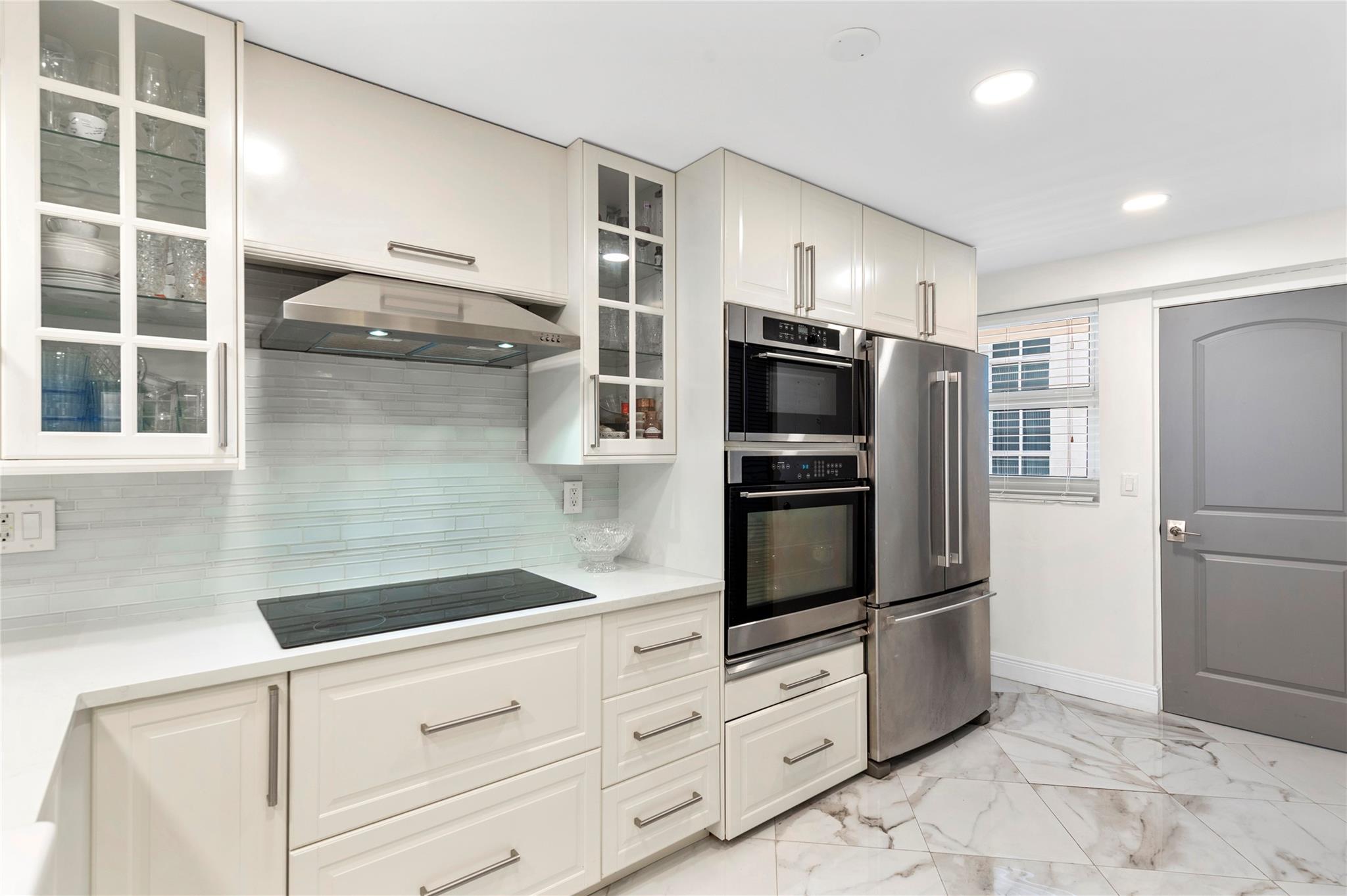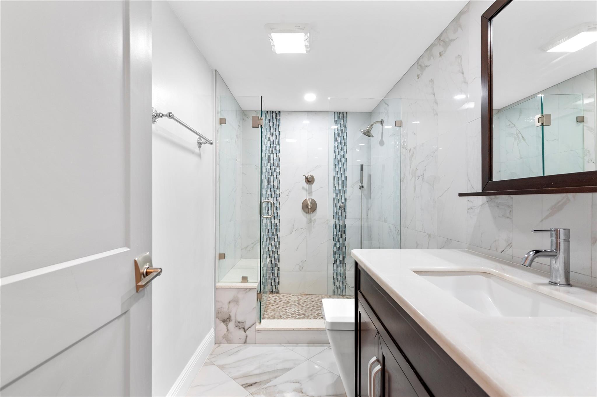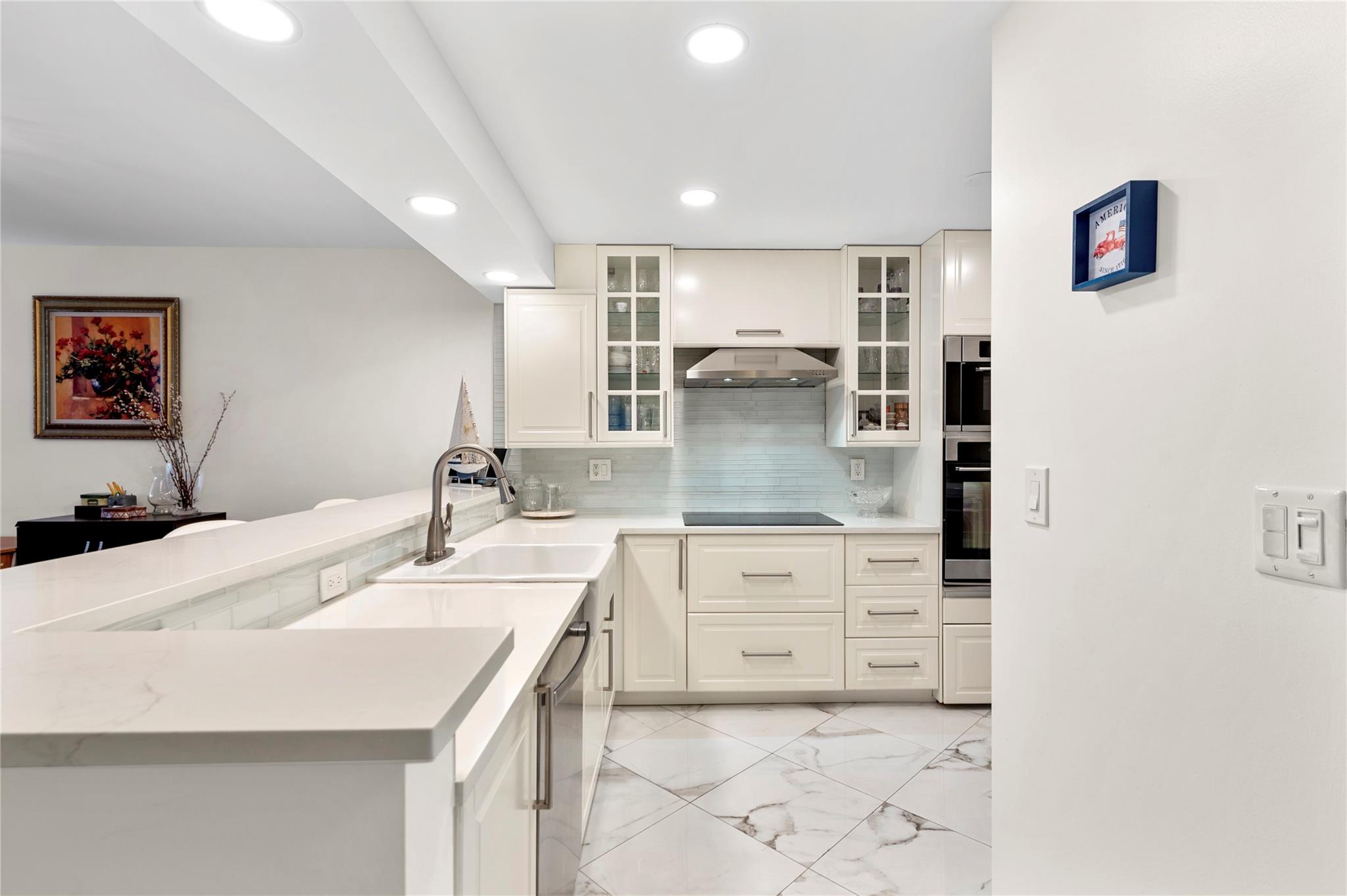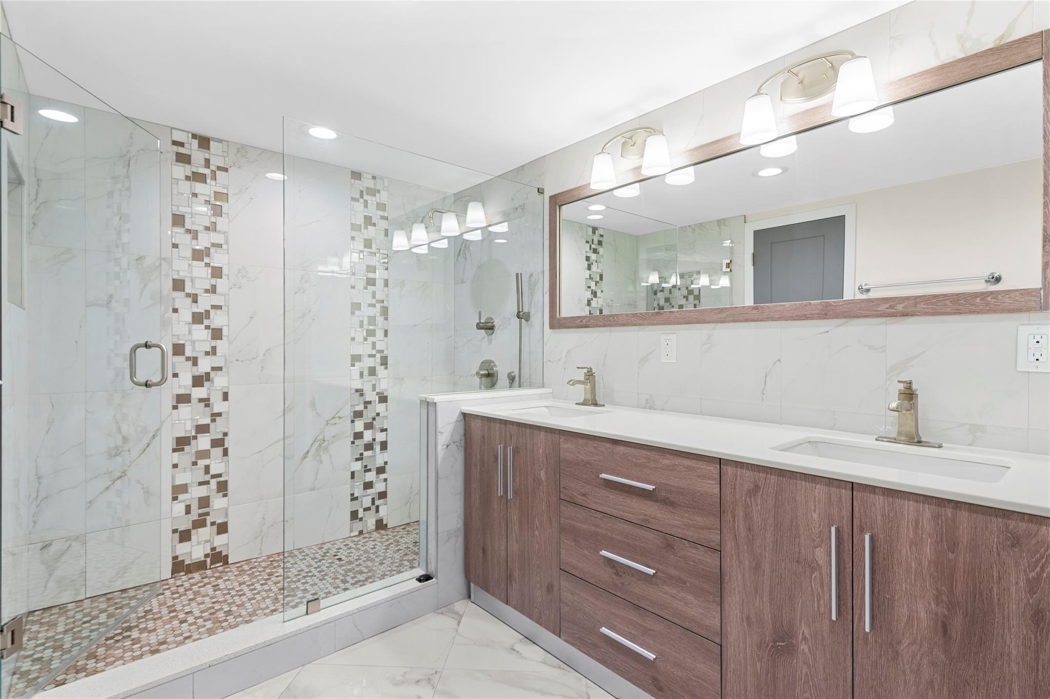 Stunning ocean views from the renovated 2 bedroom, 2 bath + office or guest room...When remodeled, this unit boasts an open concept, Split bedroom plan, larger bathrooms and an added 3rd bedroom, den or office. Beautiful Porcelain Tile Floors throughout...All white kitchen open to living and dining rooms with a large breakfast bar peninsula. Stainless steel appliances, Built-in oven, full sized washer and dryer, topped with quartz countertops. Primary bedroom with floor to ceiling windows and awesome views features an enlarged en-suite with custom tiled shower, frameless glass shower enclosure, double sink vanity, and linen closet. Spacious guest bedroom and modern guest bath. (1) Garage parking space and (1) storage locker. The Galleon is an amenity rich complex, Impressive!