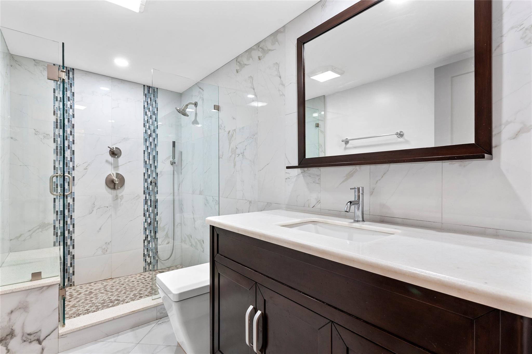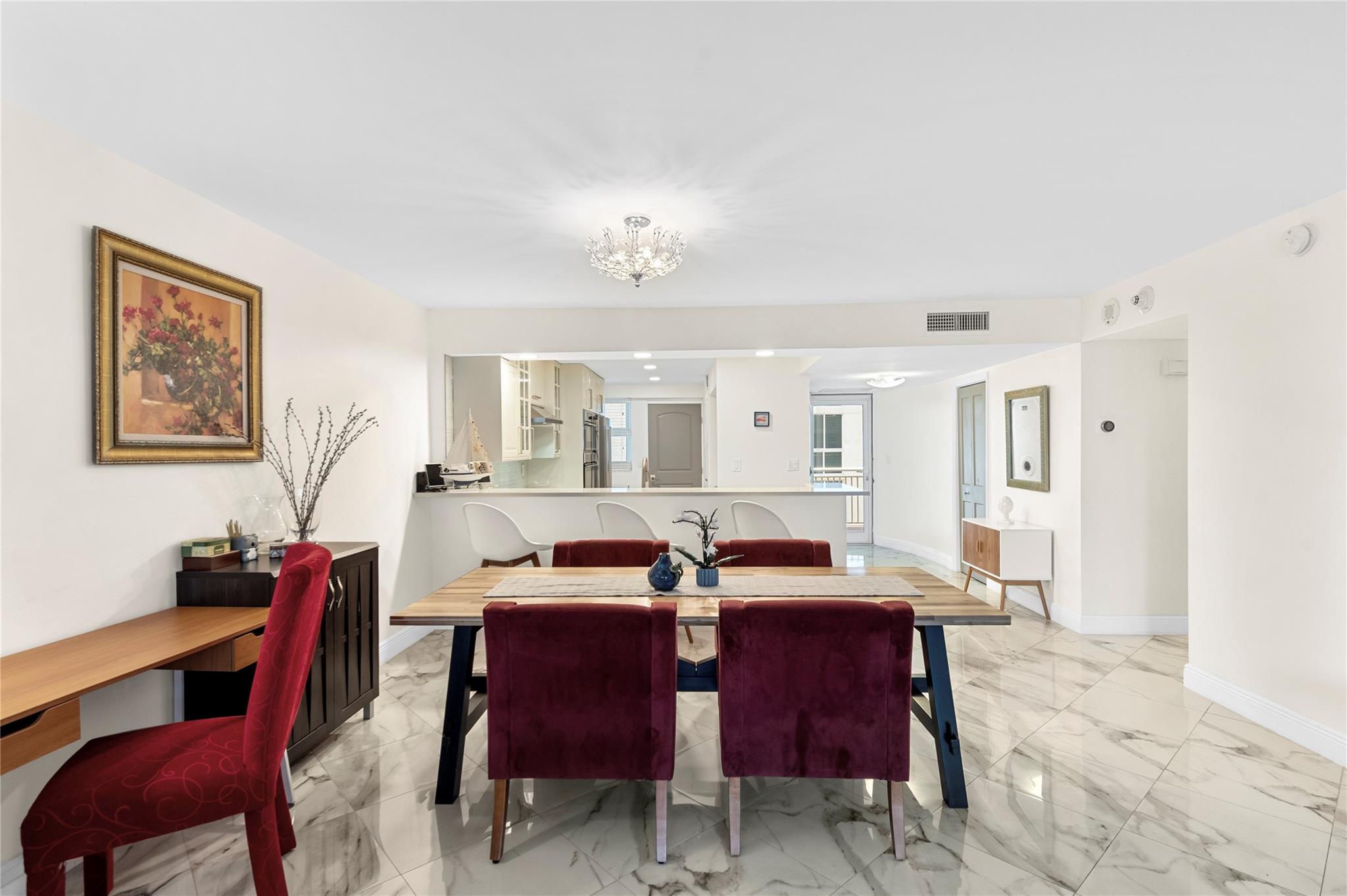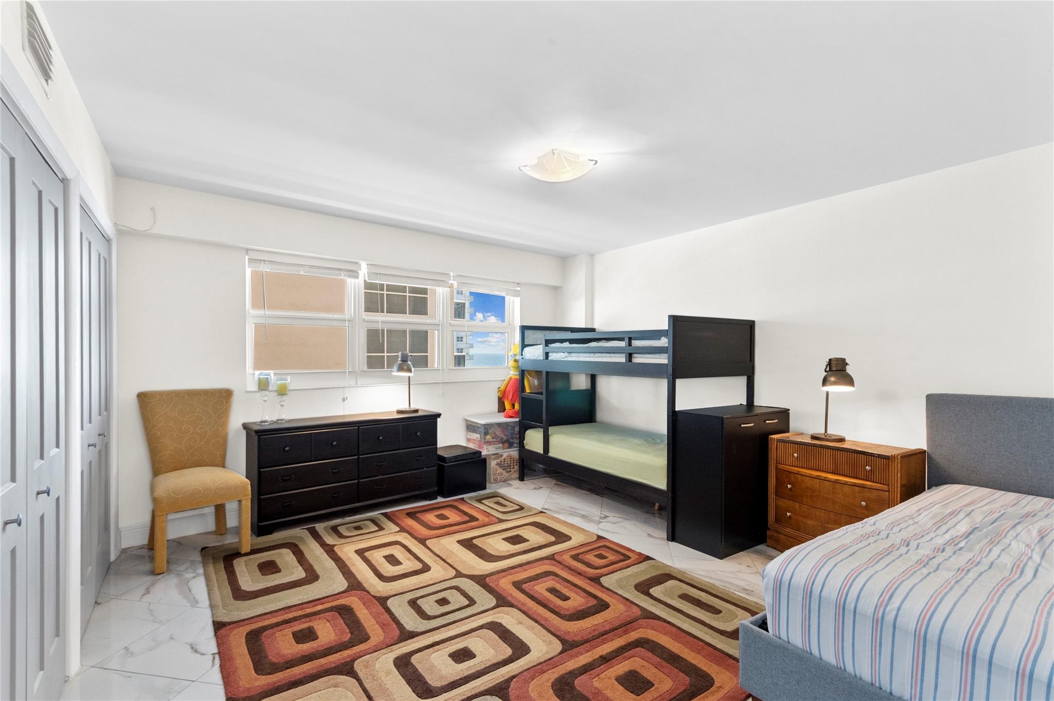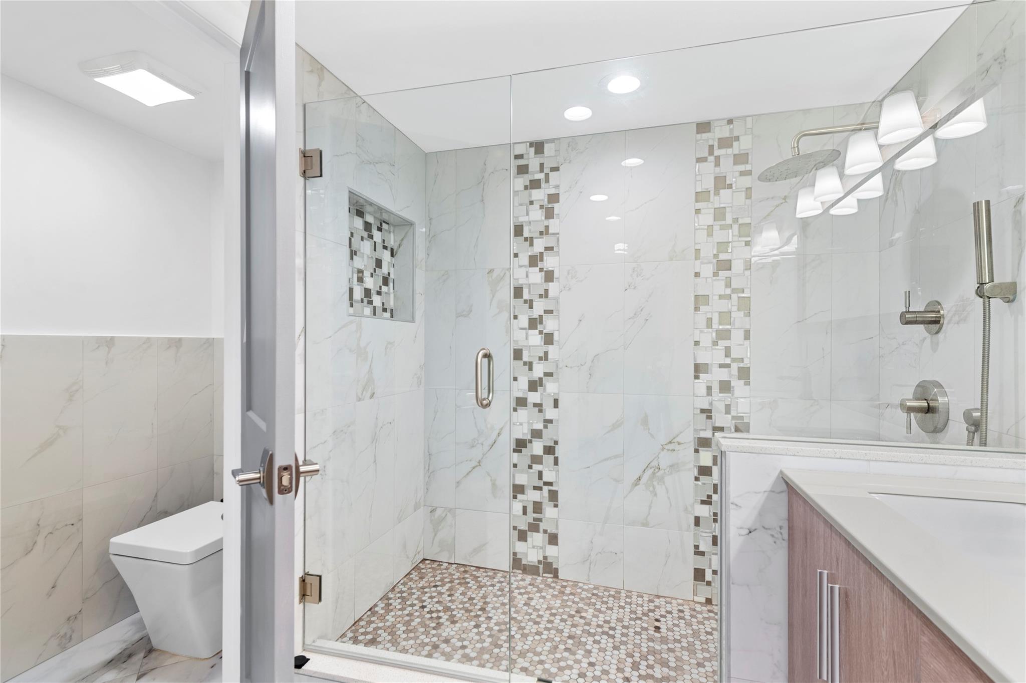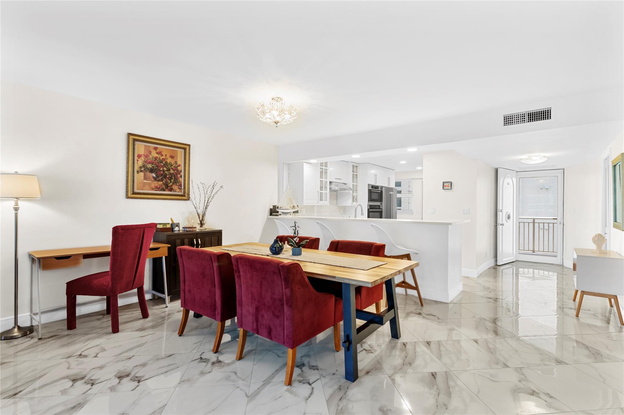 Stunning ocean views from the renovated 2 bedroom, 2 bath + office or guest room...When remodeled, this unit boasts an open concept, Split bedroom plan, larger bathrooms and an added 3rd bedroom, den or office. Beautiful Porcelain Tile Floors throughout...All white kitchen open to living and dining rooms with a large breakfast bar peninsula. Stainless steel appliances, Built-in oven, full sized washer and dryer, topped with quartz countertops. Primary bedroom with floor to ceiling windows and awesome views features an enlarged en-suite with custom tiled shower, frameless glass shower enclosure, double sink vanity, and linen closet. Spacious guest bedroom and modern guest bath. (1) Garage parking space and (1) storage locker. The Galleon is an amenity rich complex, Impressive!