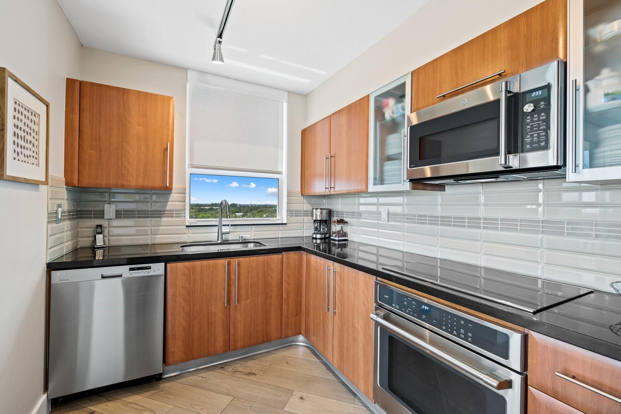 Enjoy captivating views of the New River from this meticulously maintained 2B / 2.5 BA home. Inside you're greeted by ample space for comfortable living and entertaining, while the wrap-around balcony provides for a breath of fresh air. GE Cafe Series appliances outfit the open kitchen and the additional half bath offers the perfect blend of convenience and functionality. The primary suite includes dual sinks, spa tub, separate shower and two walk-in closets. This exceptional home also includes the convenience of two coveted garage parking spaces. The Symphony is ideally located within a short walk to the shops, restaurants and nightlife of Las Olas. With unsurpassed amenities and just five minutes to the beach, The Symphony harmoniously blends luxury, convenience and waterfront living.