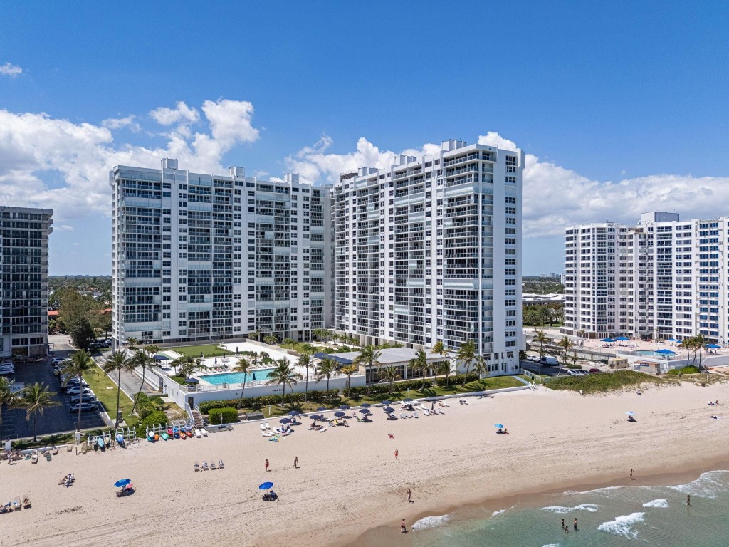 FULLY FUNDED RESERVES & PASSED 40 YR INSPECTIONS! The most desirable “J” stack unit at Plaza East. Enjoy a semi-private elevator from your parking spot directly to your unit, offering convenience and privacy. This unit was designed to offer spectacular ocean views from the moment you enter. The open concept layout features timeless neutral décor in cabinetry, countertops, backsplash, and flooring. Floor-to-ceiling windows & a spacious balcony to enhance the beachfront living experience. Two generous bedrooms boast ample closet space, with added conveniences like in-unit washer/dryer & trash chute. Residents enjoy access to the largest heated pool on the Galt Ocean Mile, beach chaise/umbrella service, a manager's apartment available for rent to guests. NO WORK BEING DONE ON THE BULIDING!!