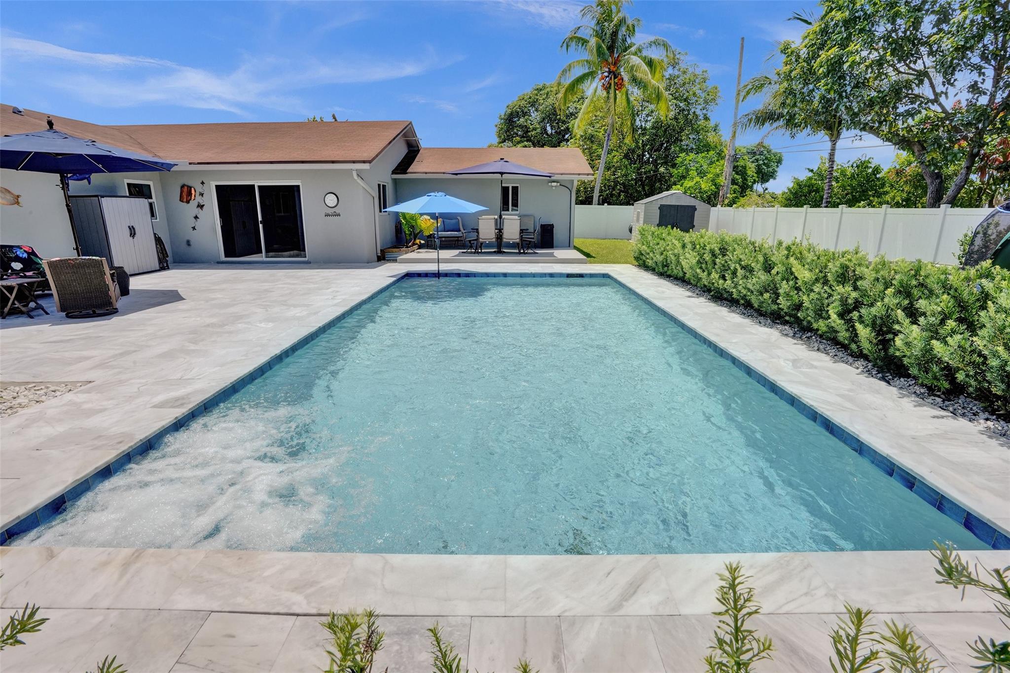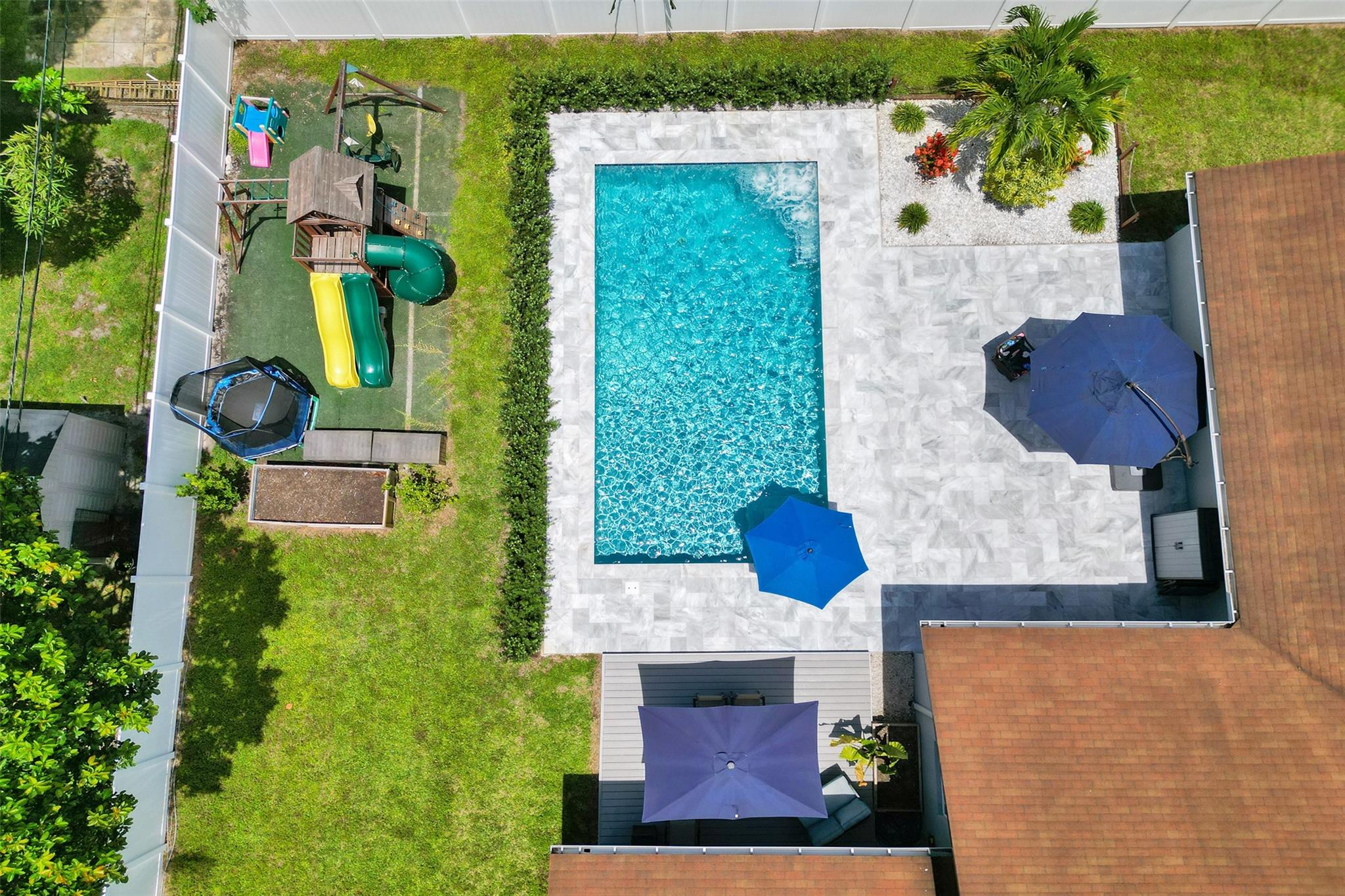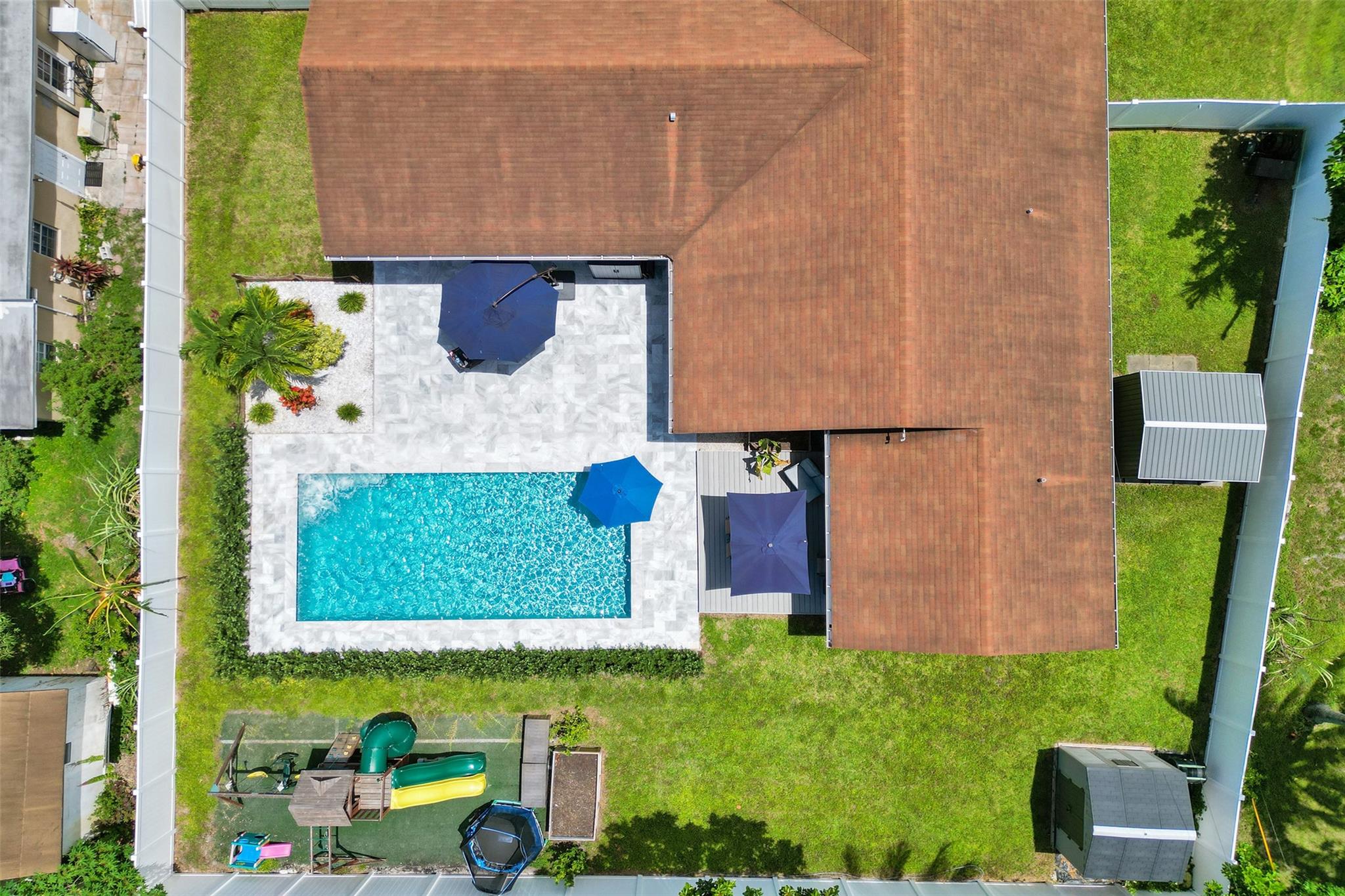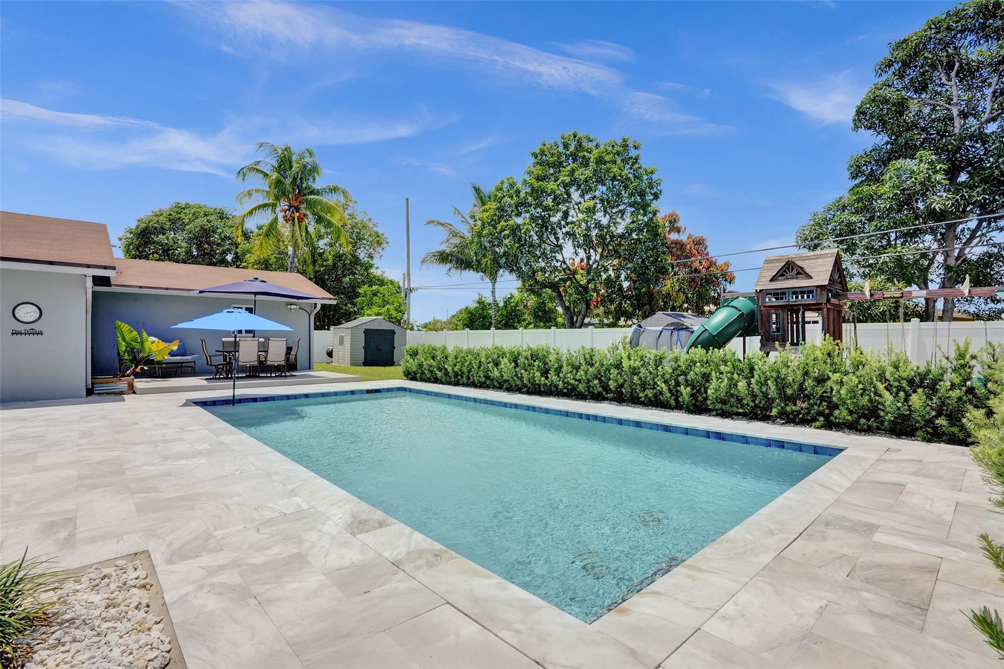 This beautiful home sits on a large lot with a stunning heated saltwater pool. Enjoy ultimate privacy with a new vinyl fence, two 12-ft gates—perfect for storing a boat or RV—and a lush backyard with a sprinkler system, playground, and two sheds. Inside, you'll find a spacious layout with a modern kitchen, new stainless steel appliances, and a large island for entertaining. All three bedrooms offer generous closet space, including a walk-in in the primary suite. Impact windows/doors, tankless water heater, 2018 roof, 2021 A/C, cleaned ductwork, and a security system with cameras offer comfort and peace of mind. Oversized 2-car garage with built-in storage and A/C mini split. Full-size washer/dryer included. NO HOA. DO NOT SHOW UP OUTSIDE OF OPEN HOUSE TIMES WITHOUT APPOINTMENT