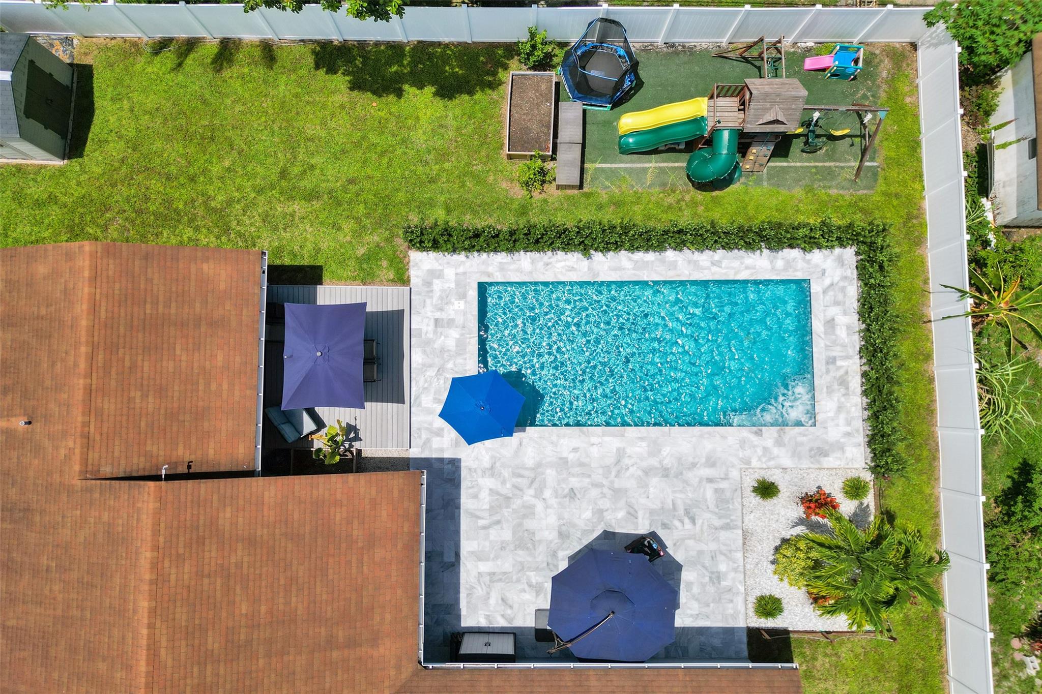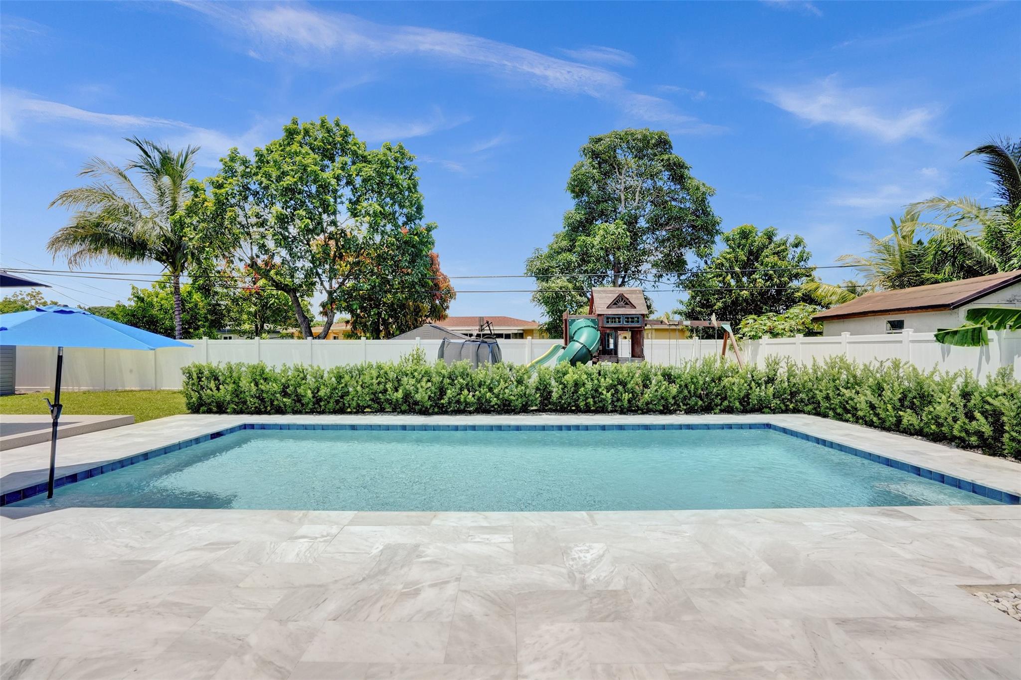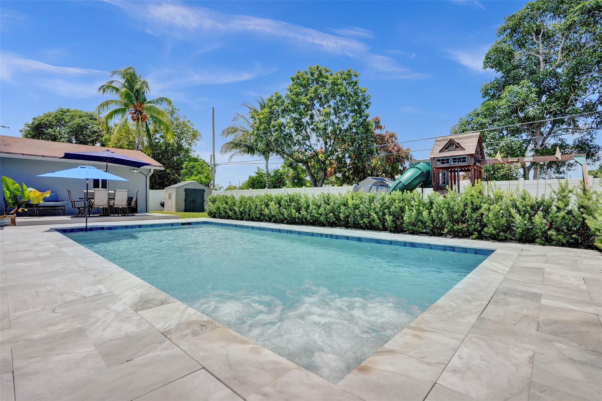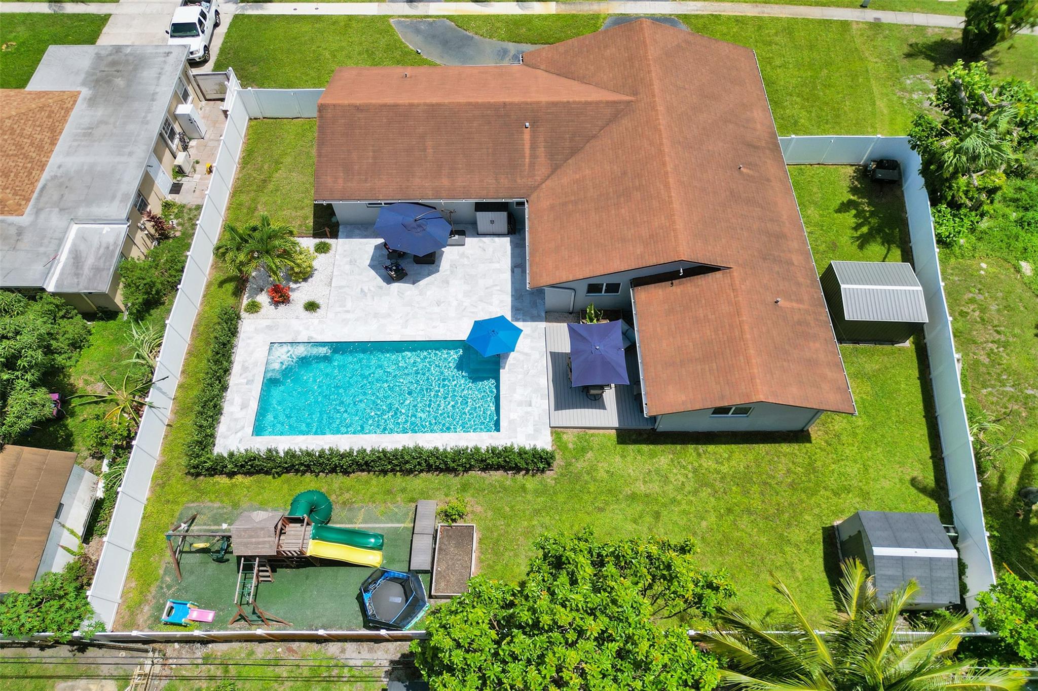This beautiful home sits on a large lot with a stunning heated saltwater pool. Enjoy ultimate privacy with a new vinyl fence, two 12-ft gates—perfect for storing a boat or RV—and a lush backyard with a sprinkler system, playground, and two sheds. Inside, you'll find a spacious layout with a modern kitchen, new stainless steel appliances, and a large island for entertaining. All three bedrooms offer generous closet space, including a walk-in in the primary suite. Impact windows/doors, tankless water heater, 2018 roof, 2021 A/C, cleaned ductwork, and a security system with cameras offer comfort and peace of mind. Oversized 2-car garage with built-in storage and A/C mini split. Full-size washer/dryer included. NO HOA. DO NOT SHOW UP OUTSIDE OF OPEN HOUSE TIMES WITHOUT APPOINTMENT