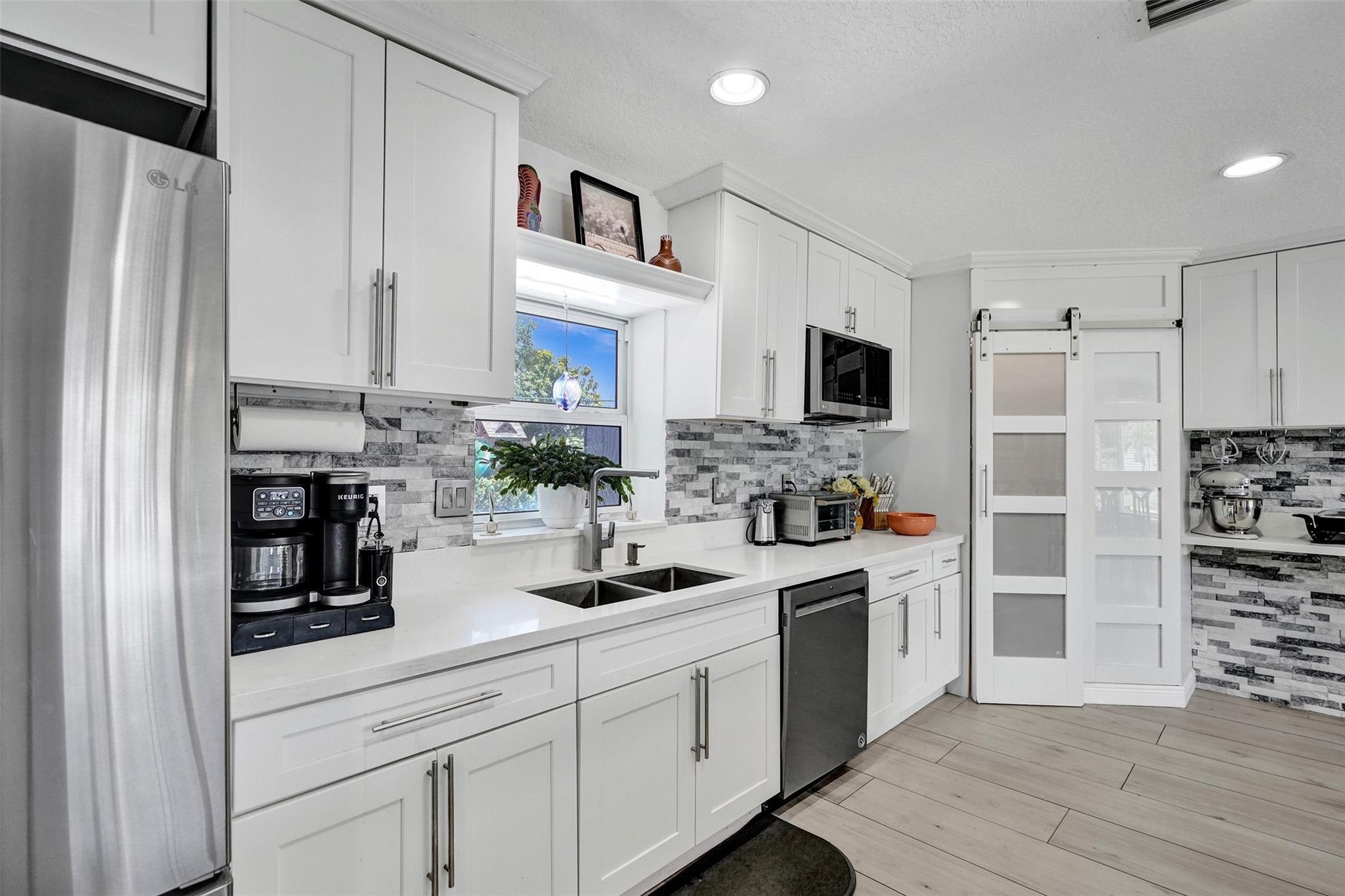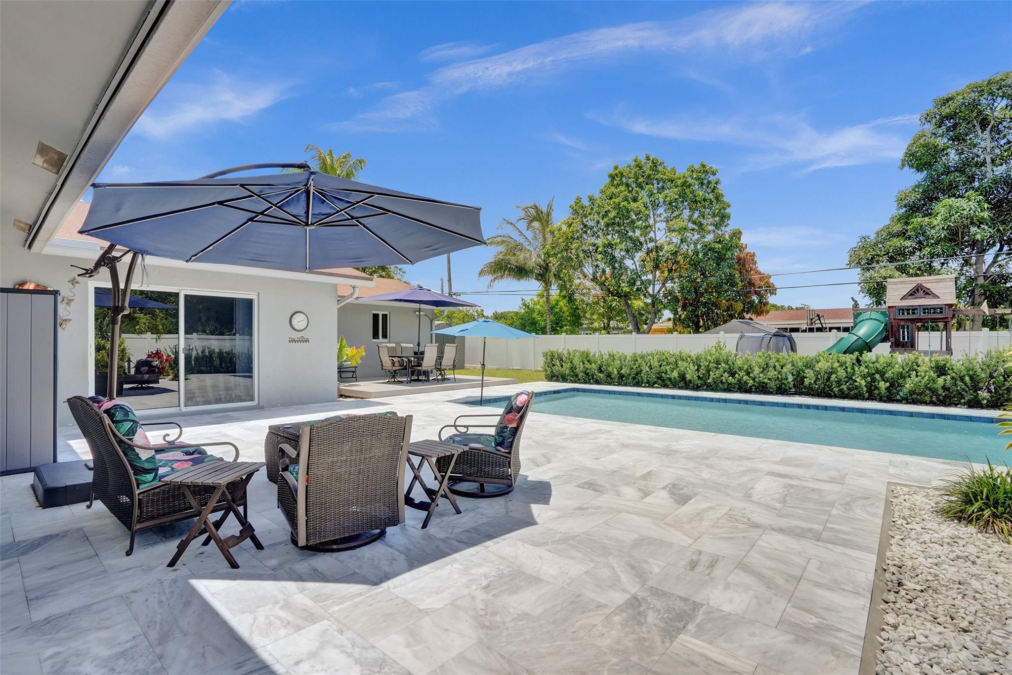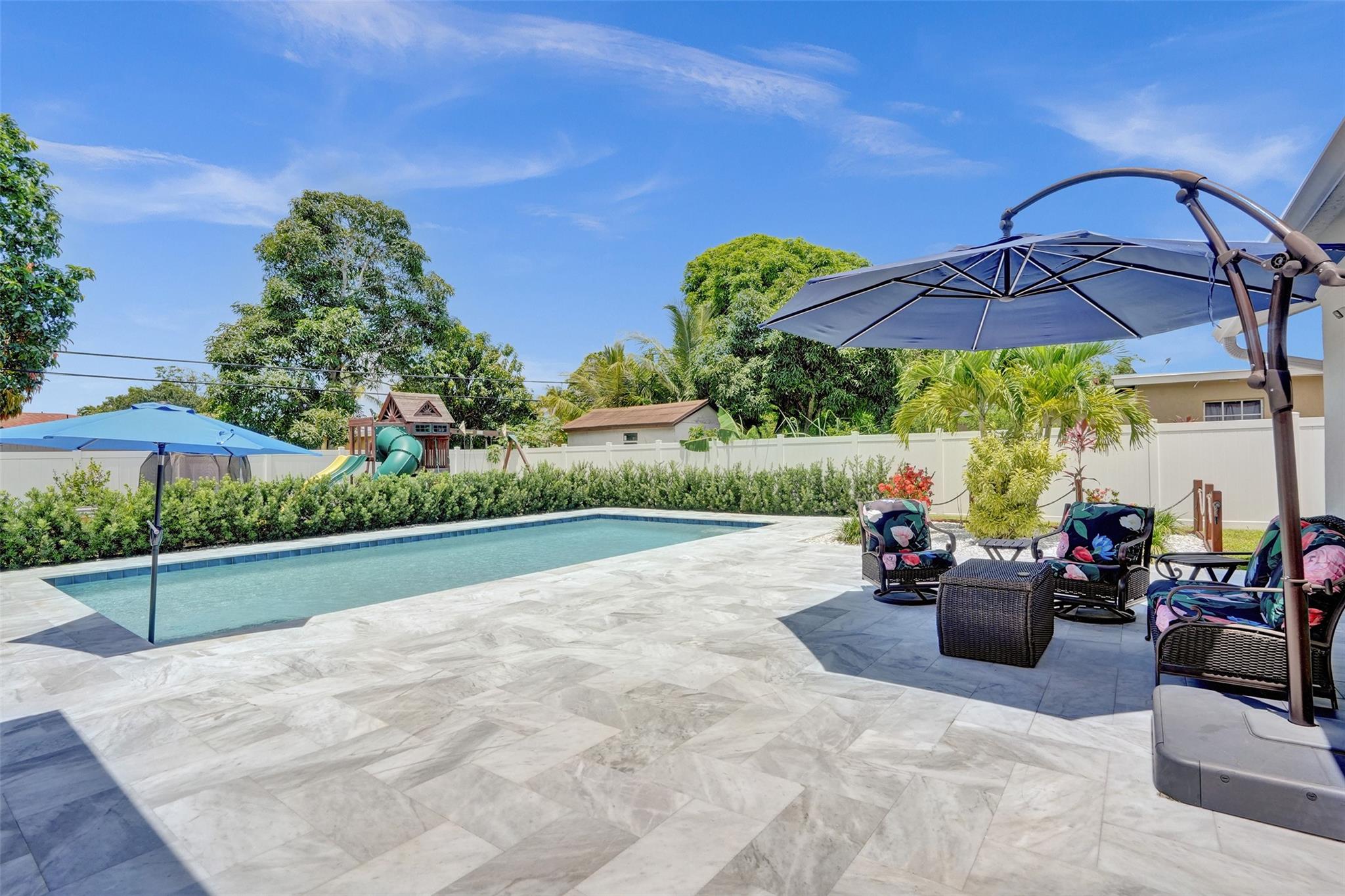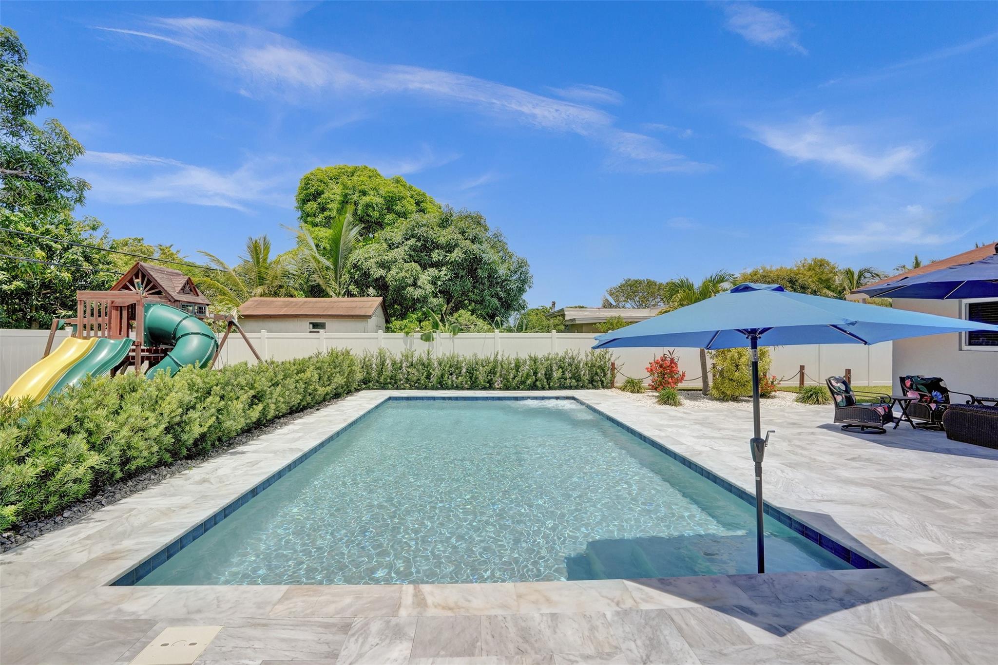 This beautiful home sits on a large lot with a stunning heated saltwater pool. Enjoy ultimate privacy with a new vinyl fence, two 12-ft gates—perfect for storing a boat or RV—and a lush backyard with a sprinkler system, playground, and two sheds. Inside, you'll find a spacious layout with a modern kitchen, new stainless steel appliances, and a large island for entertaining. All three bedrooms offer generous closet space, including a walk-in in the primary suite. Impact windows/doors, tankless water heater, 2018 roof, 2021 A/C, cleaned ductwork, and a security system with cameras offer comfort and peace of mind. Oversized 2-car garage with built-in storage and A/C mini split. Full-size washer/dryer included. NO HOA. DO NOT SHOW UP OUTSIDE OF OPEN HOUSE TIMES WITHOUT APPOINTMENT