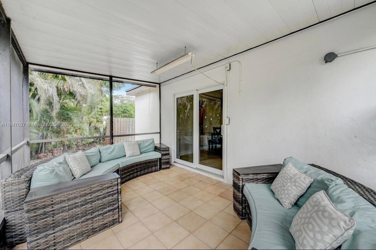 Charming home with spacious lot, orchard and income potential This well maintained home sits on a large, fully fenced corner lot with mature trees New powerful air conditioning (2025) and updated plumbing throughout Split master bedroom with separate entrance, perfect for in-laws or rental income Large driveway with room for multiple cars New exterior awnings on every window for sun protection Hurricane resistant aluminum shutters on all front windows • Florida room enclosed with screen and clear plastic panels - enjoy life in any weather Most of the furniture will remain with the new owner. • mango trees, avocado trees and a newly planted orchard with papaya, guava, blueberries, bananas, pineapples, figs and limes • Street lights provide good illumination of the area at night