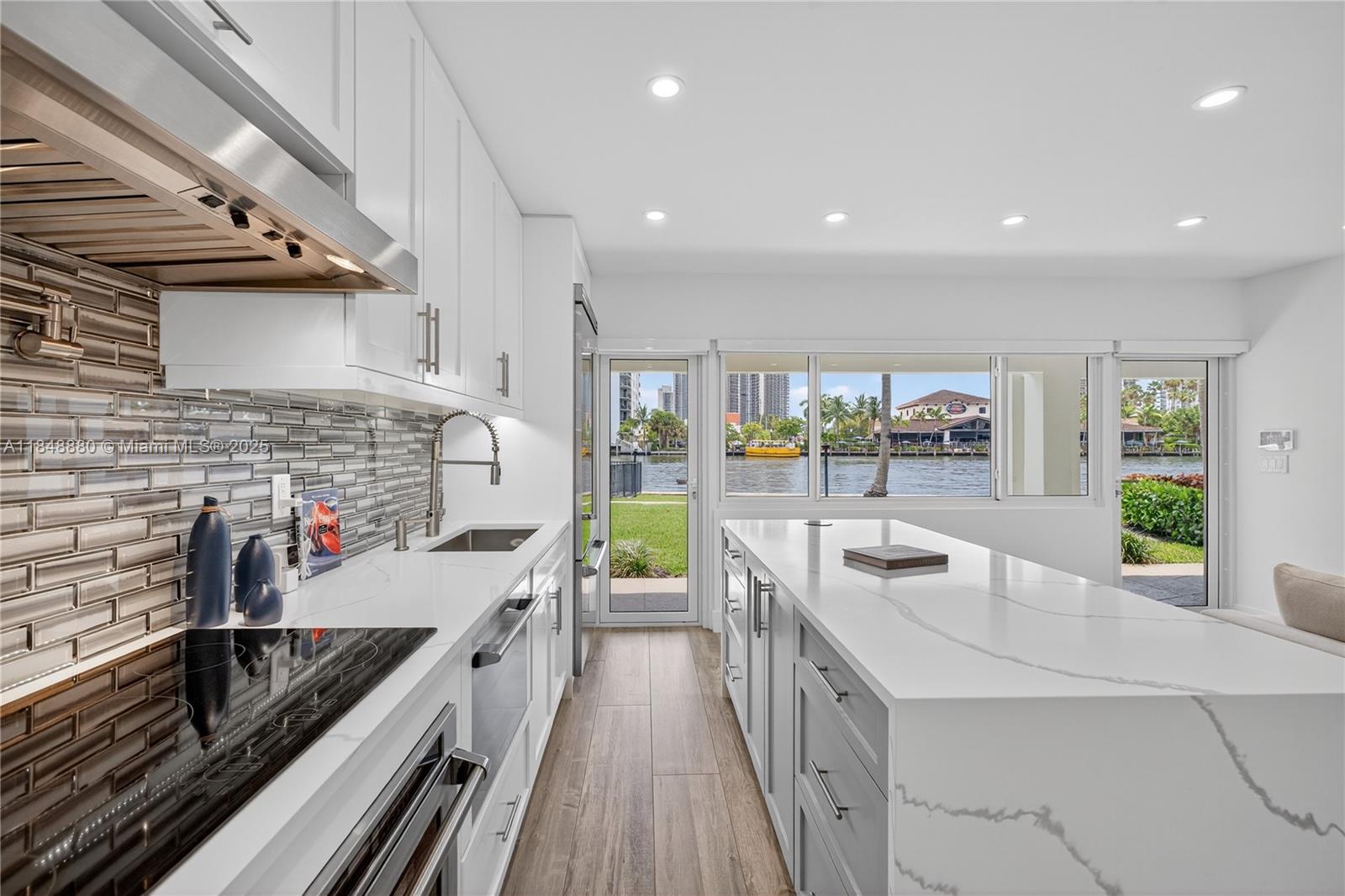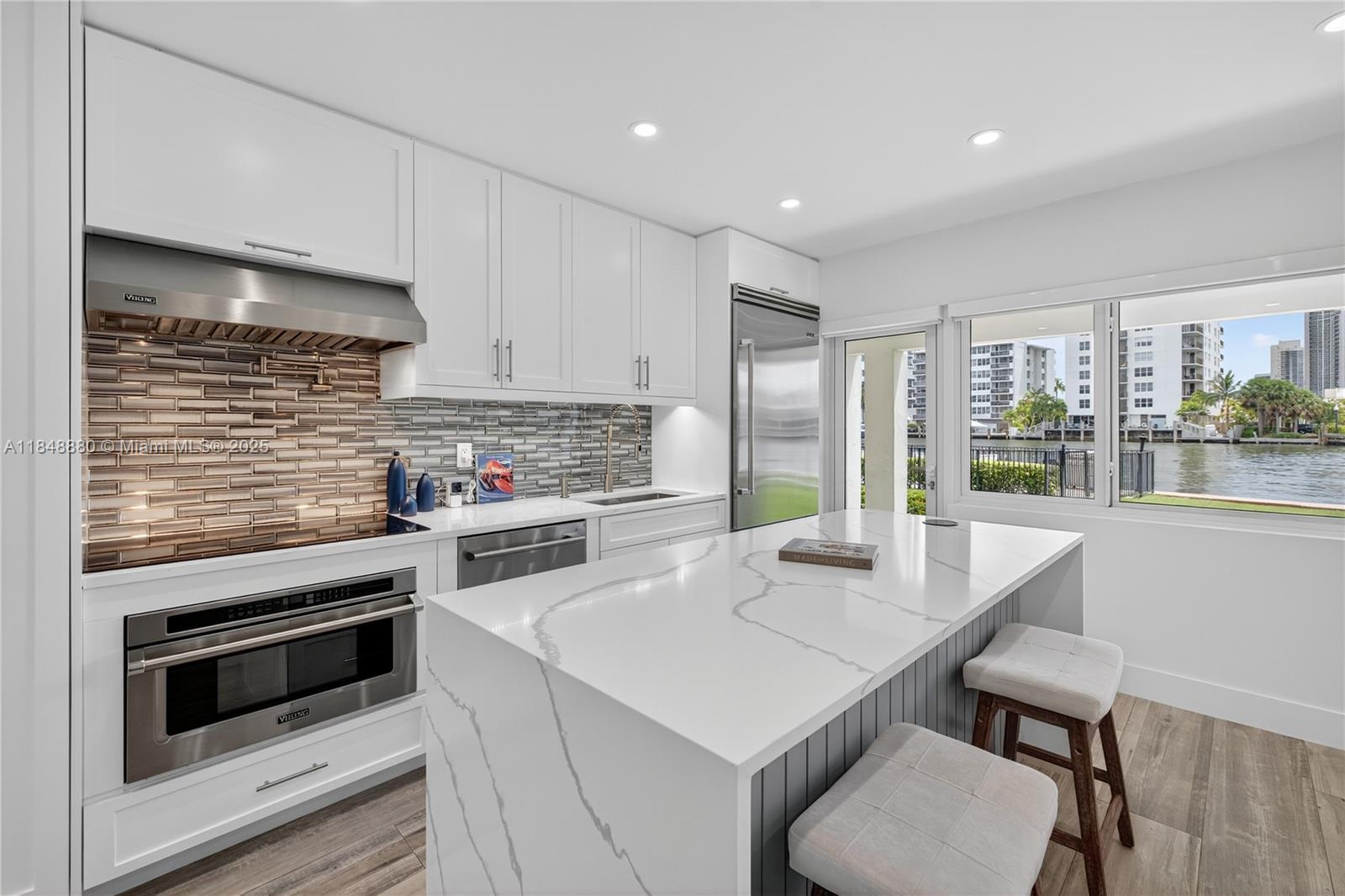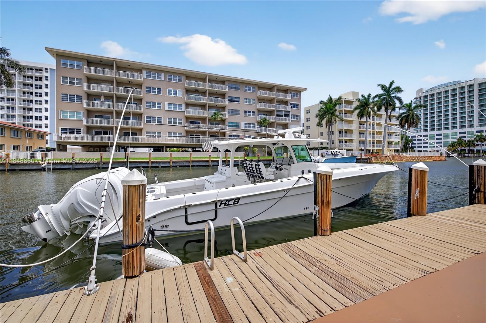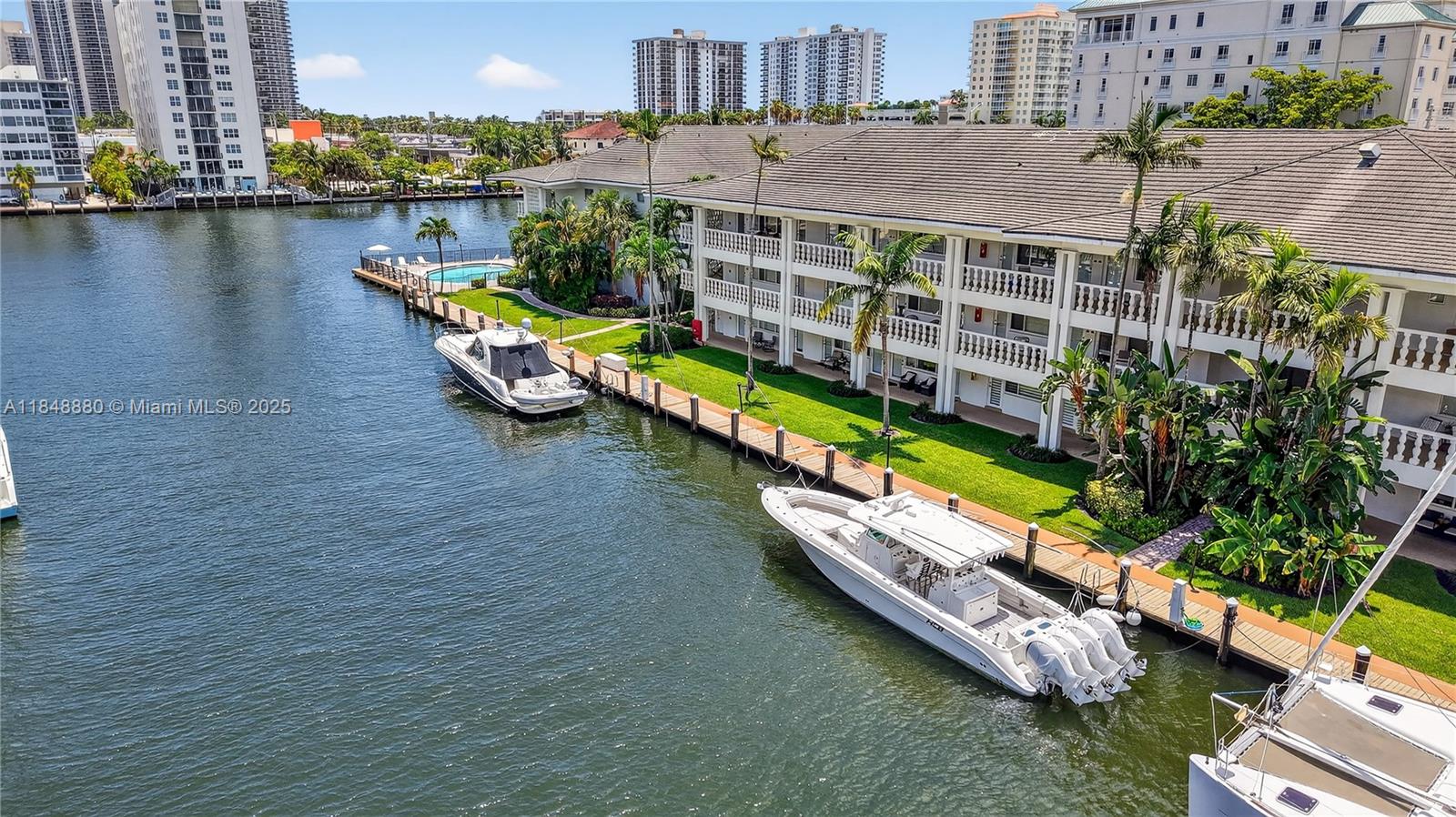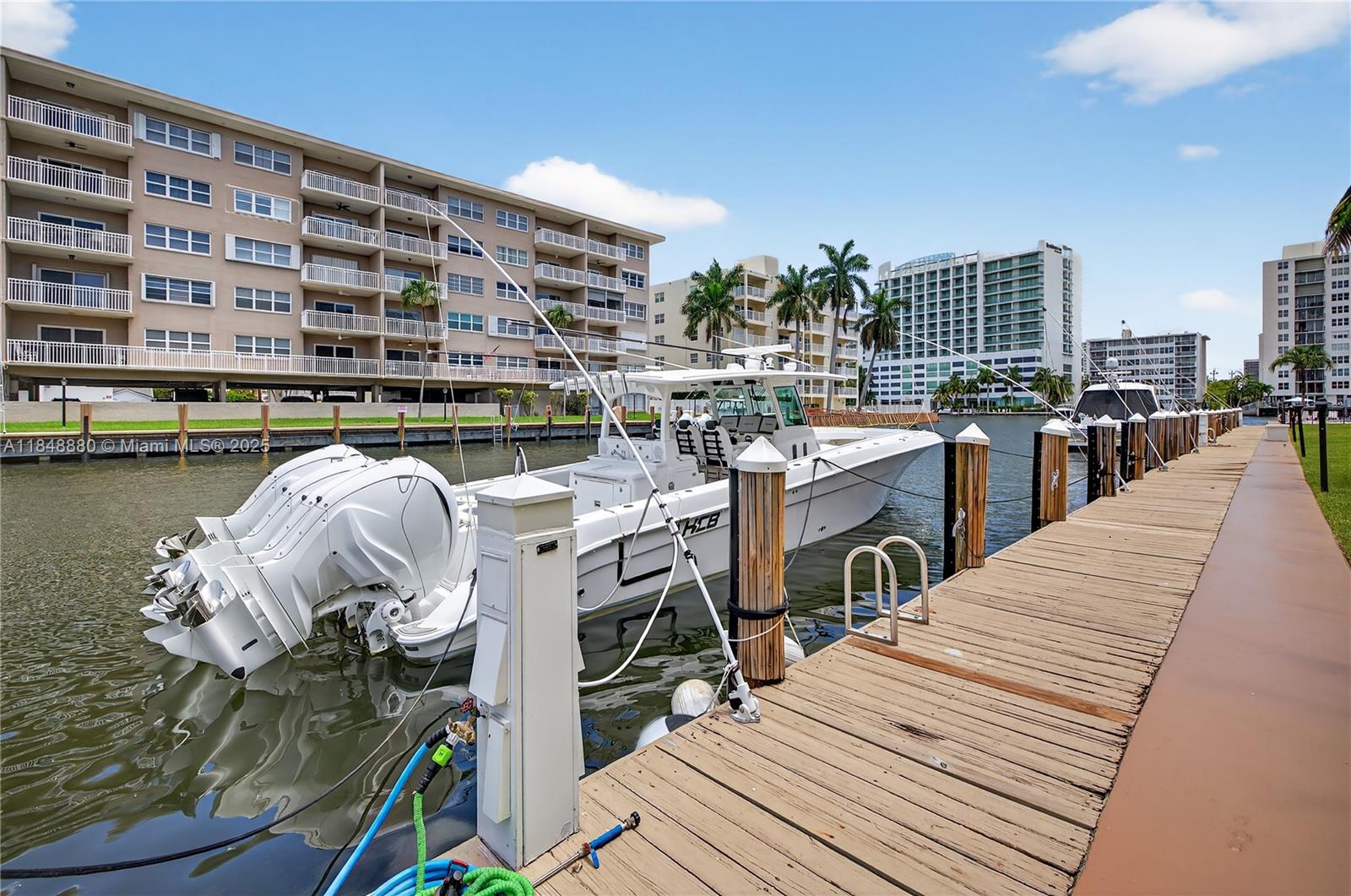 Unparalleled Intracoastal elegance. This fully reimagined 1st-floor residence boasts a rare 49’ deeded dock in a tranquil no-wake zone, complete with power, mooring whips, bumpers, and security. Meticulously curated with top-tier finishes: Viking kitchen with 36” commercial fridge, quartz surfaces, pot filler, drawer dishwasher, and touchless faucet. Spa-level bath with Toto Neorest bidet, jetted shower, and floating vanity. Smart home features include Trane 23 SEER A/C, RGF air purification, custom lighting, USB ports, wall safe, and a hidden bookshelf door. Full-size washer/dryer, tankless water heater, bespoke closets. Deeded parking/storage, heated pool, show-stopping views, pet friendly, and fully funded reserves.