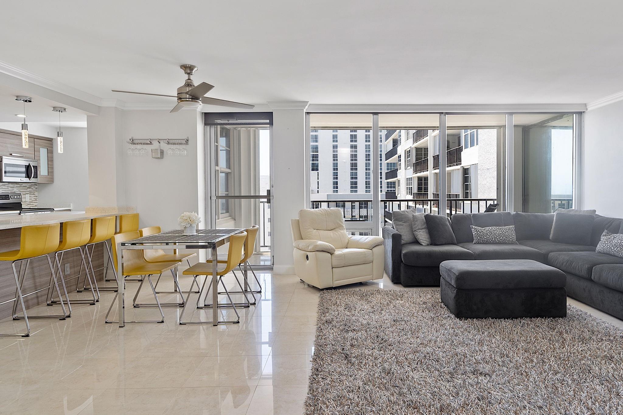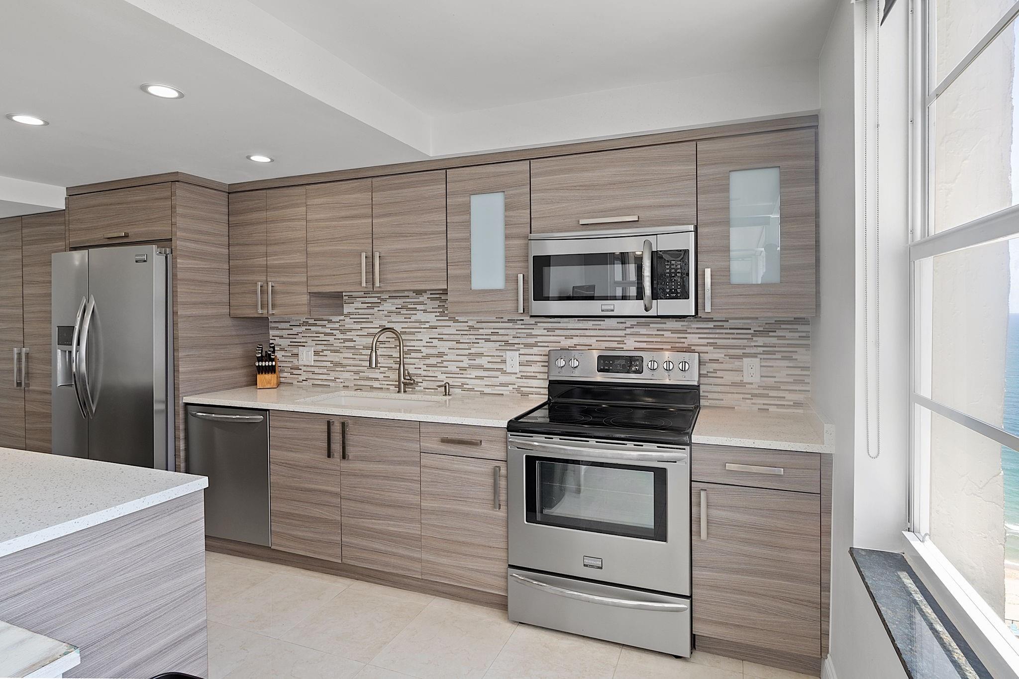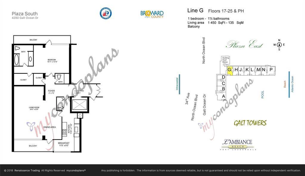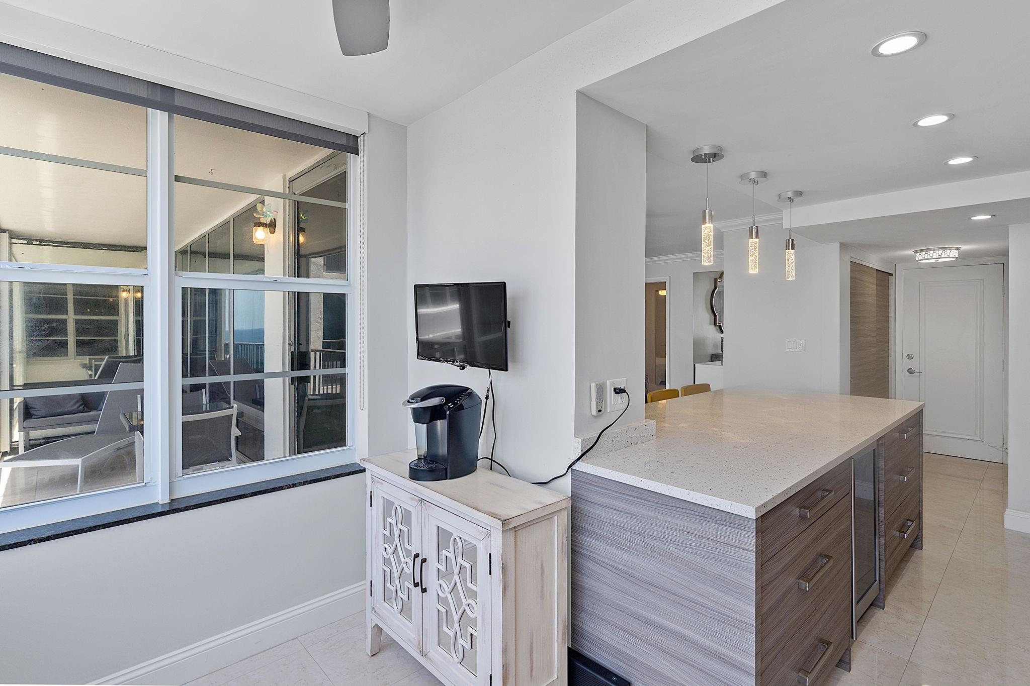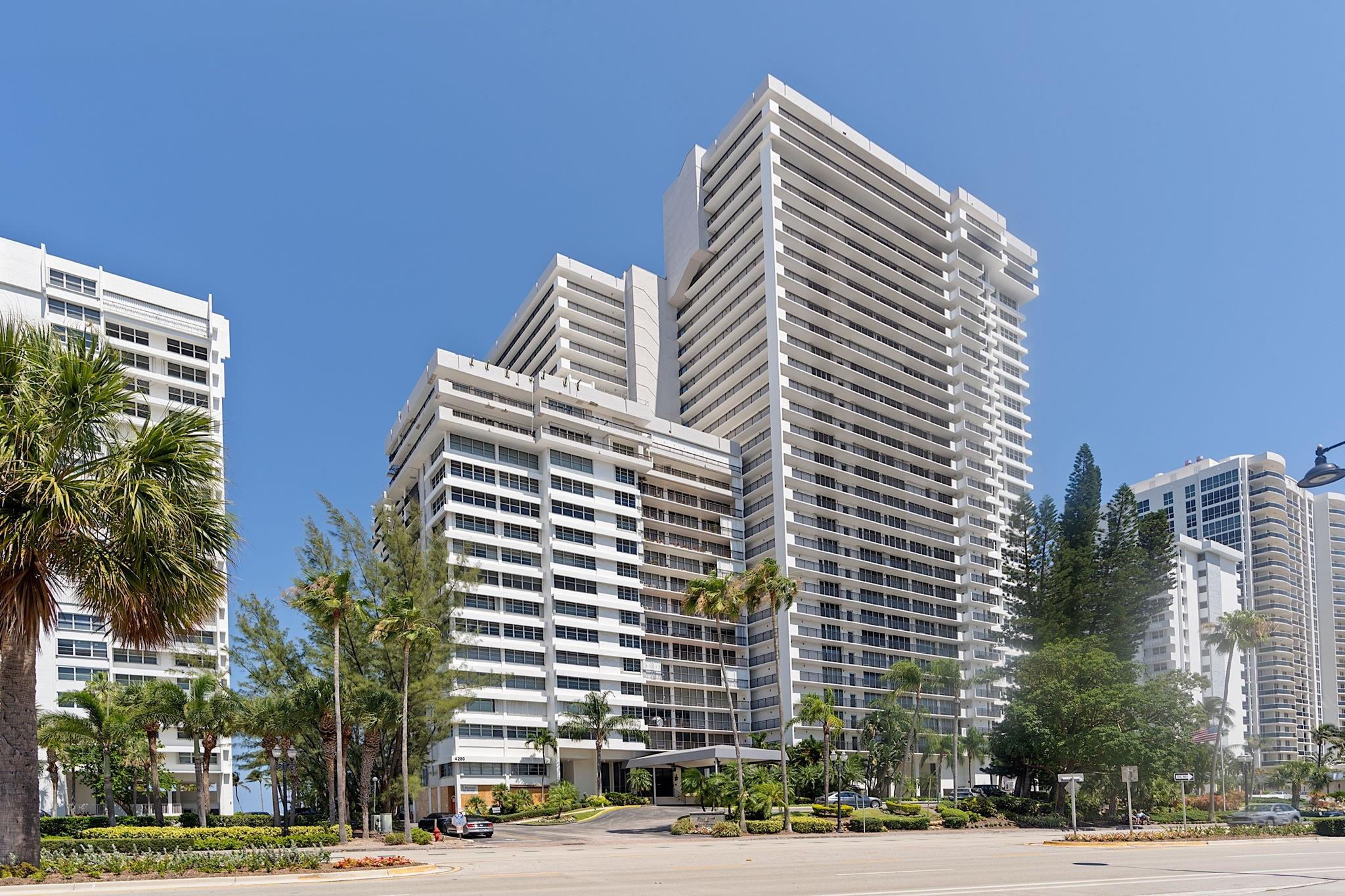 LARGEST 1-Bedroom with den on the Galt Ocean Mile! Turnkey contemporary oceanfront condo with semi-private elevator, open layout, porcelain tile, quartz breakfast bar, custom kitchen with SS appliances & wine cooler, separate laundry room, new Bosch A/C, and walk-in closets. Floor-to-ceiling windows offer stunning SE & NE ocean views from every room, including the large private balcony. Enjoy resort-style amenities featuring an infinity pool overlooking the ocean, beach patio, BBQs, ocean lounge, saunas, fitness center, billiards, library & more. Plaza South is undergoing its 40 plus 50-year certification. Seller has paid the Special Assessment in Full!
