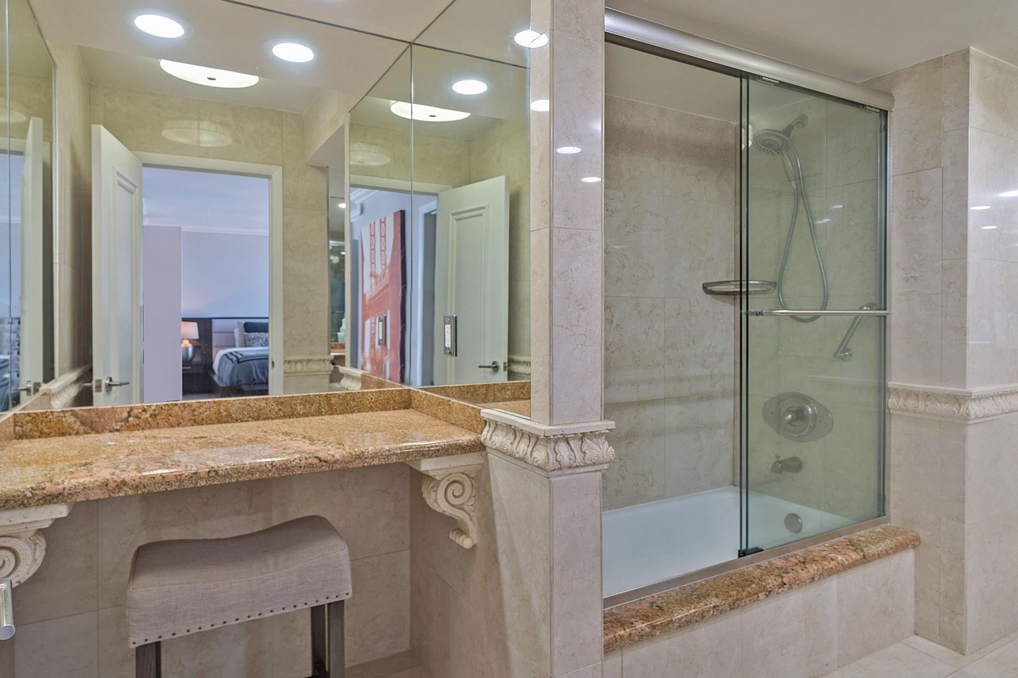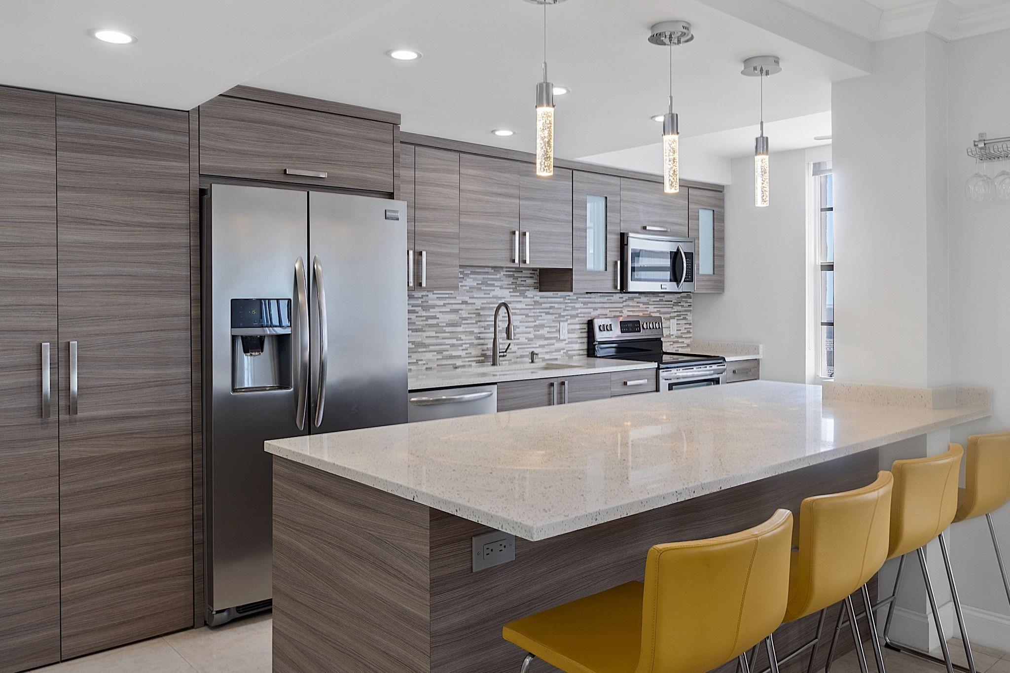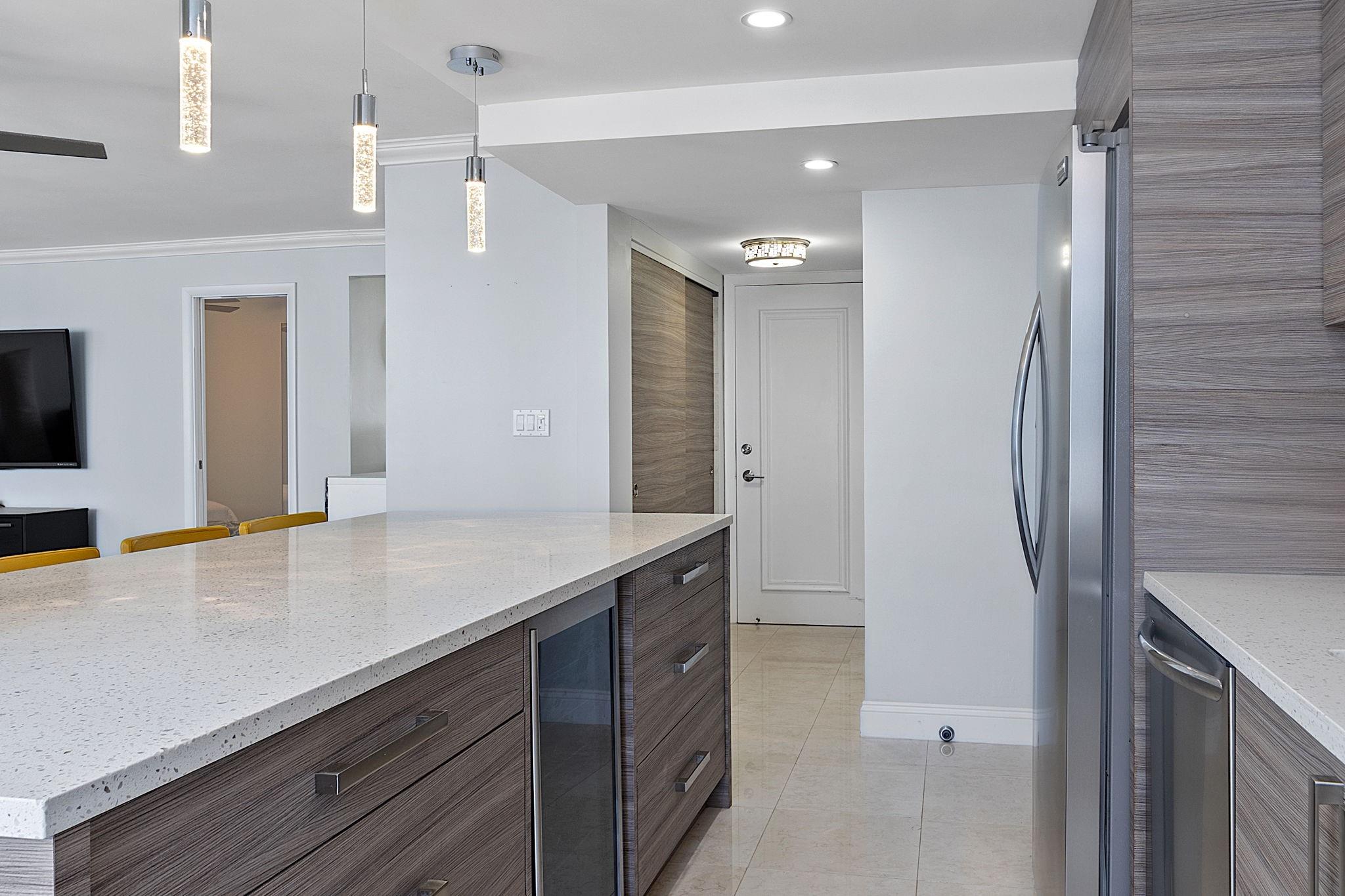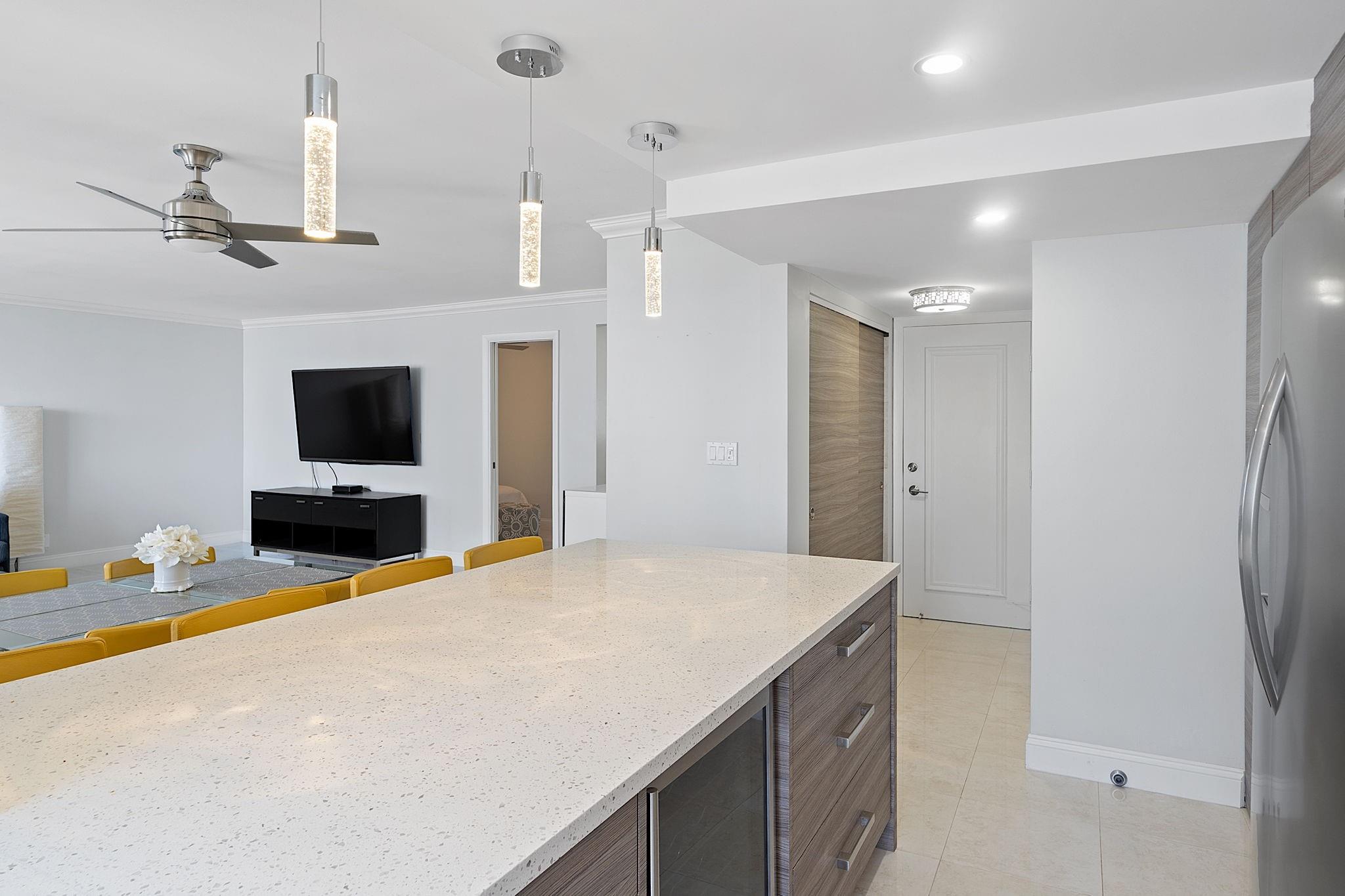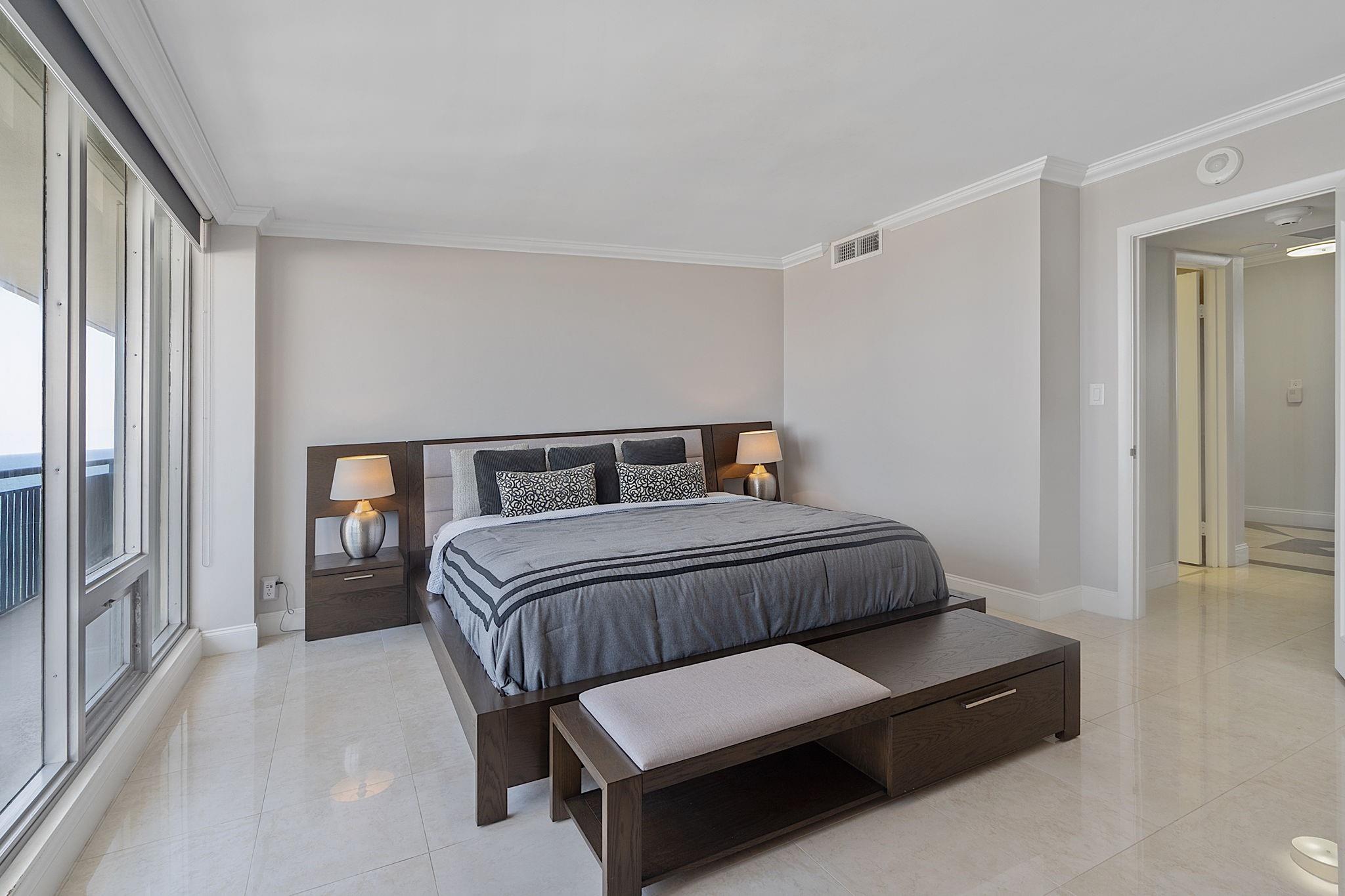 LARGEST 1-Bedroom with den on the Galt Ocean Mile! Turnkey contemporary oceanfront condo with semi-private elevator, open layout, porcelain tile, quartz breakfast bar, custom kitchen with SS appliances & wine cooler, separate laundry room, new Bosch A/C, and walk-in closets. Floor-to-ceiling windows offer stunning SE & NE ocean views from every room, including the large private balcony. Enjoy resort-style amenities featuring an infinity pool overlooking the ocean, beach patio, BBQs, ocean lounge, saunas, fitness center, billiards, library & more. Plaza South is undergoing its 40 plus 50-year certification. Seller has paid the Special Assessment in Full!
