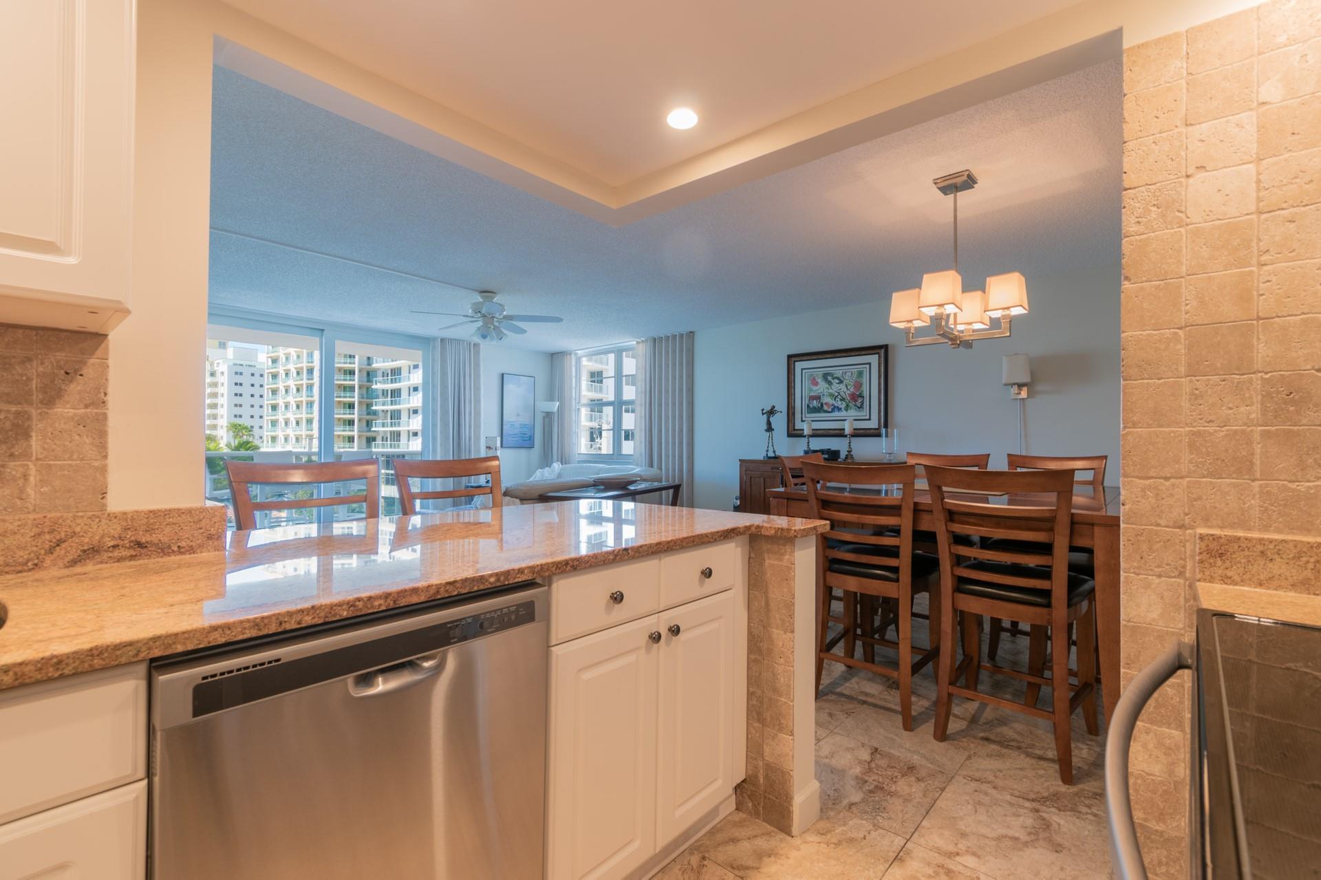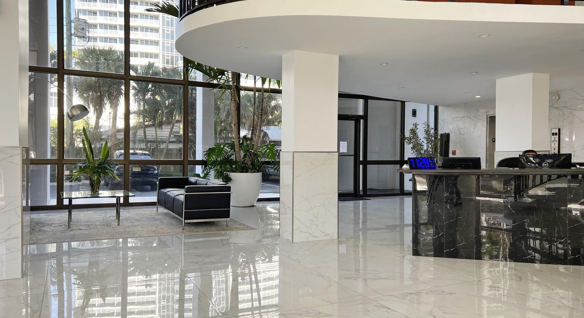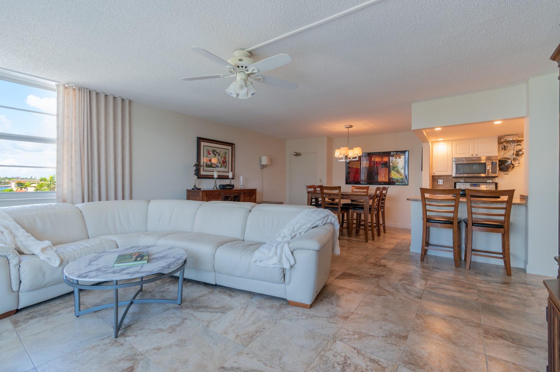 NEW AND IMPROVED PRICE!!!Located in the coveted Birch Crest Condominium in Fort Lauderdale’s Central Beach, this meticulously upgraded corner unit features Italian-style porcelain tile throughout. The modern open kitchen offers white cabinetry, granite countertops, and Whirlpool appliances. Enjoy views of the newly renovated pool deck from the living and dining areas. The unit boasts panoramic views of the Intracoastal and Las Olas Isles. Both bathrooms feature walk-in showers, refined vanities, and granite counters. The primary bedroom includes a walk-in closet, blackout shades, and stylish blinds. A fantastic home in a great building.