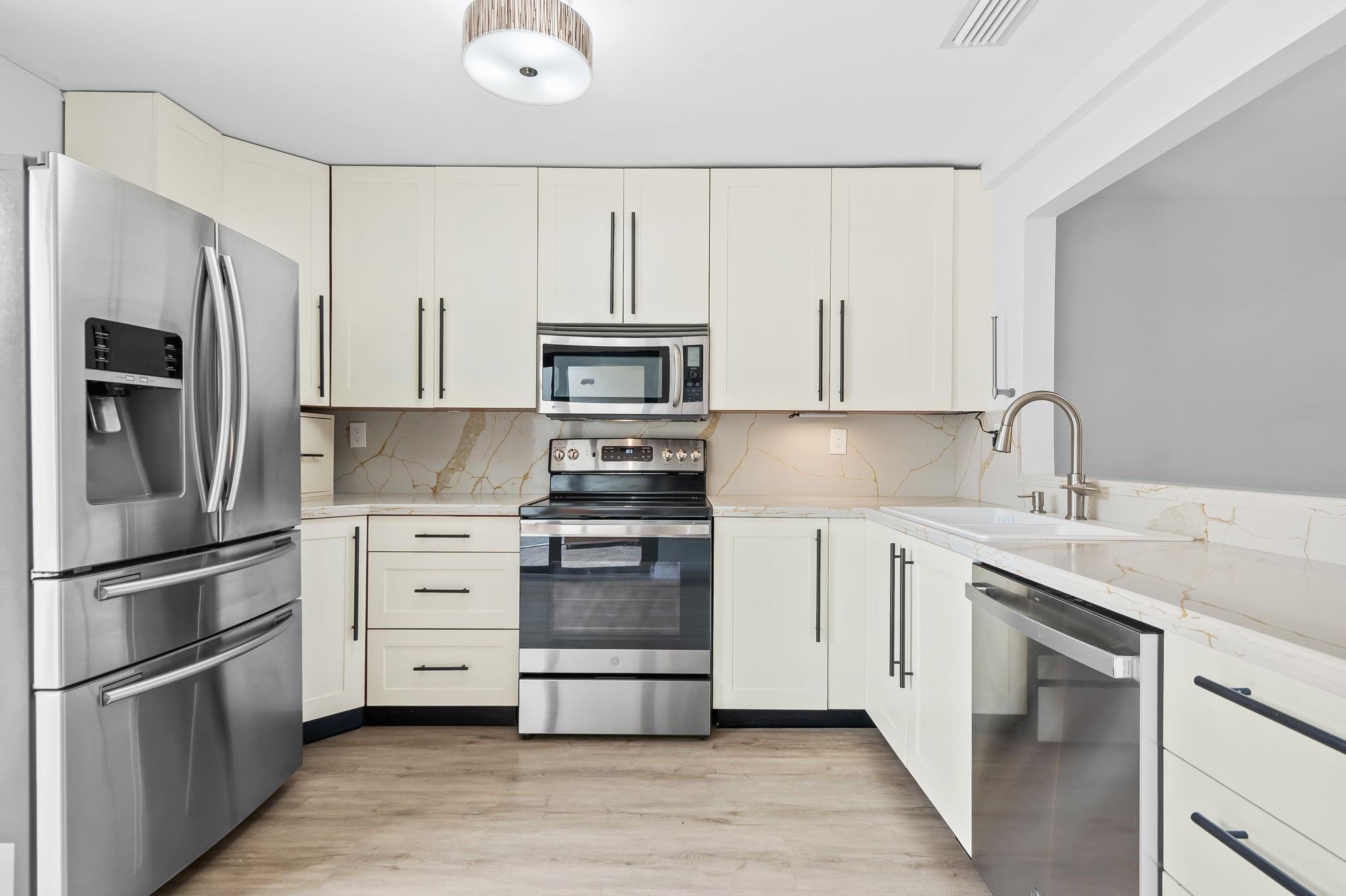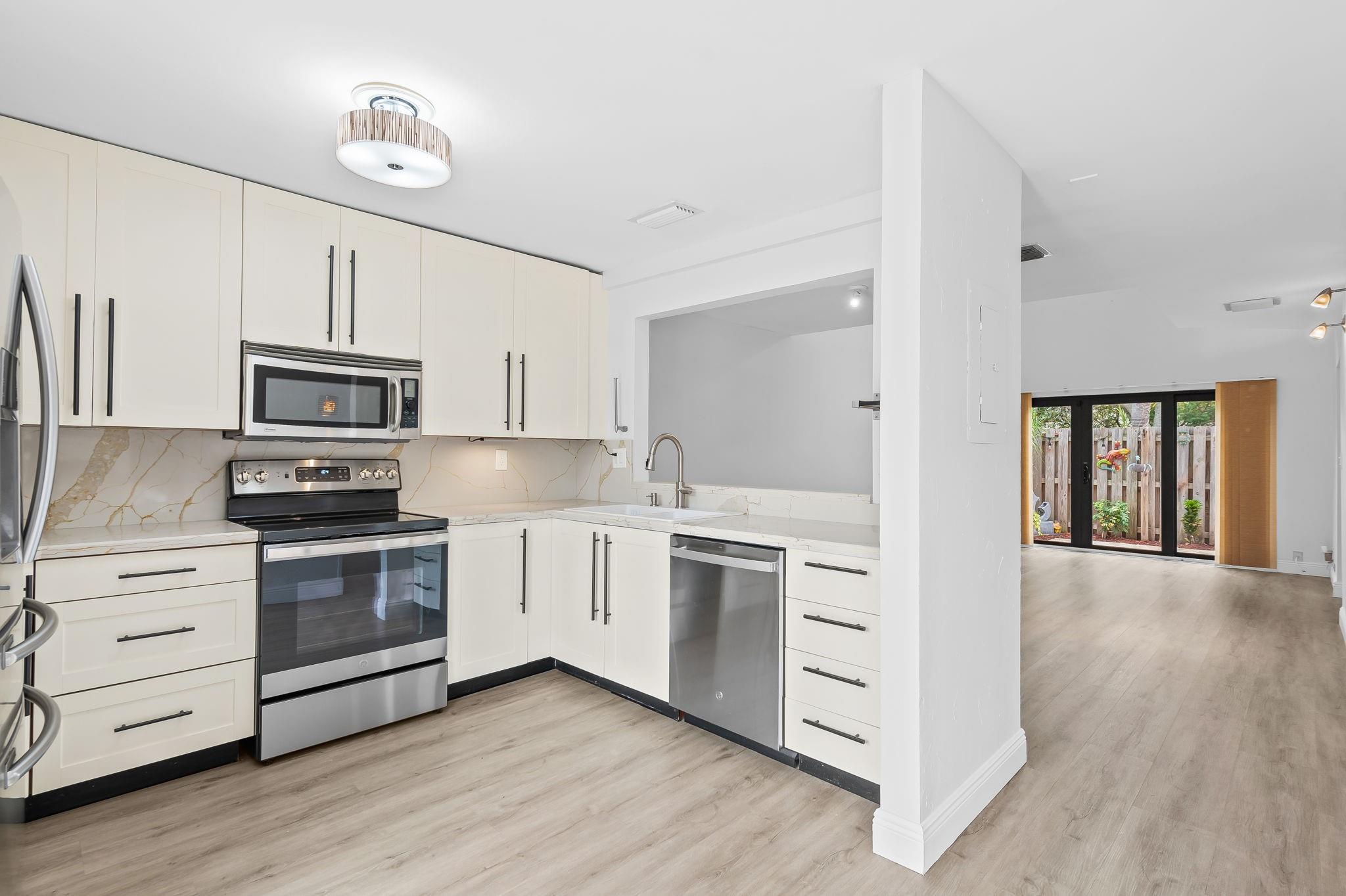 FEE SIMPLE 3/2.5 corner unit townhome in the heart of Downtown Fort Lauderdale! Rare floor plan in City View with two upstairs primary bedrooms with en-suites plus a downstairs bedroom and half bath. Remodel completed with permits. Features include FULL IMPACT WINDOWS & DOORS, volume ceilings, updated kitchen with quartz counters & SS appliances, new vinyl flooring, fresh interior paint, laundry room, and private front/back travertine patios. 2010 HVAC, 2013 roof (HOA covered). Gated 18-acre community near Brightline, Flagler Village & Las Olas with heated pool, tennis, and low HOA with reserves. HOA covers exterior insurance, roof, landscaping, fencing, gate, reserves & management. FHA, VA & 3% down loans welcome!