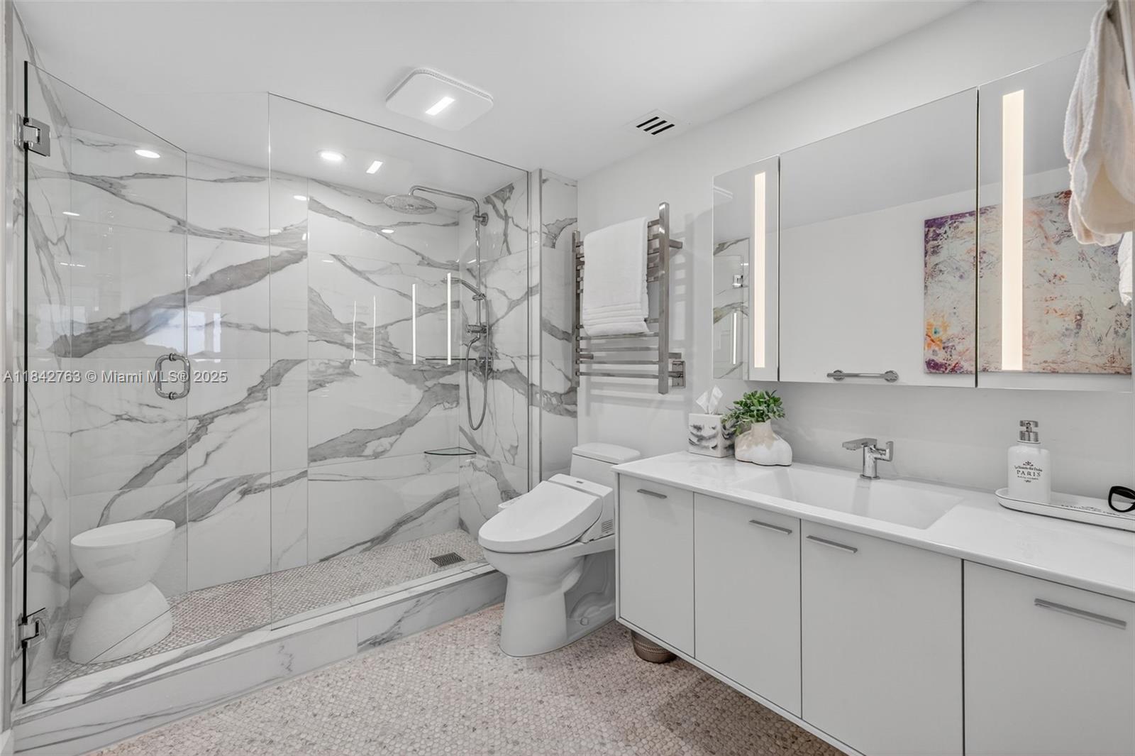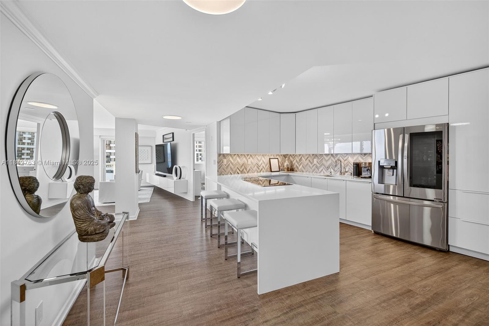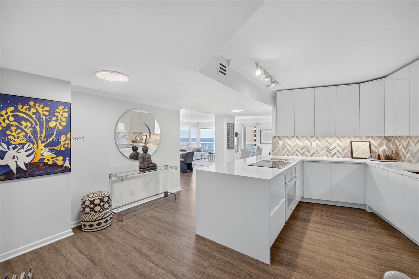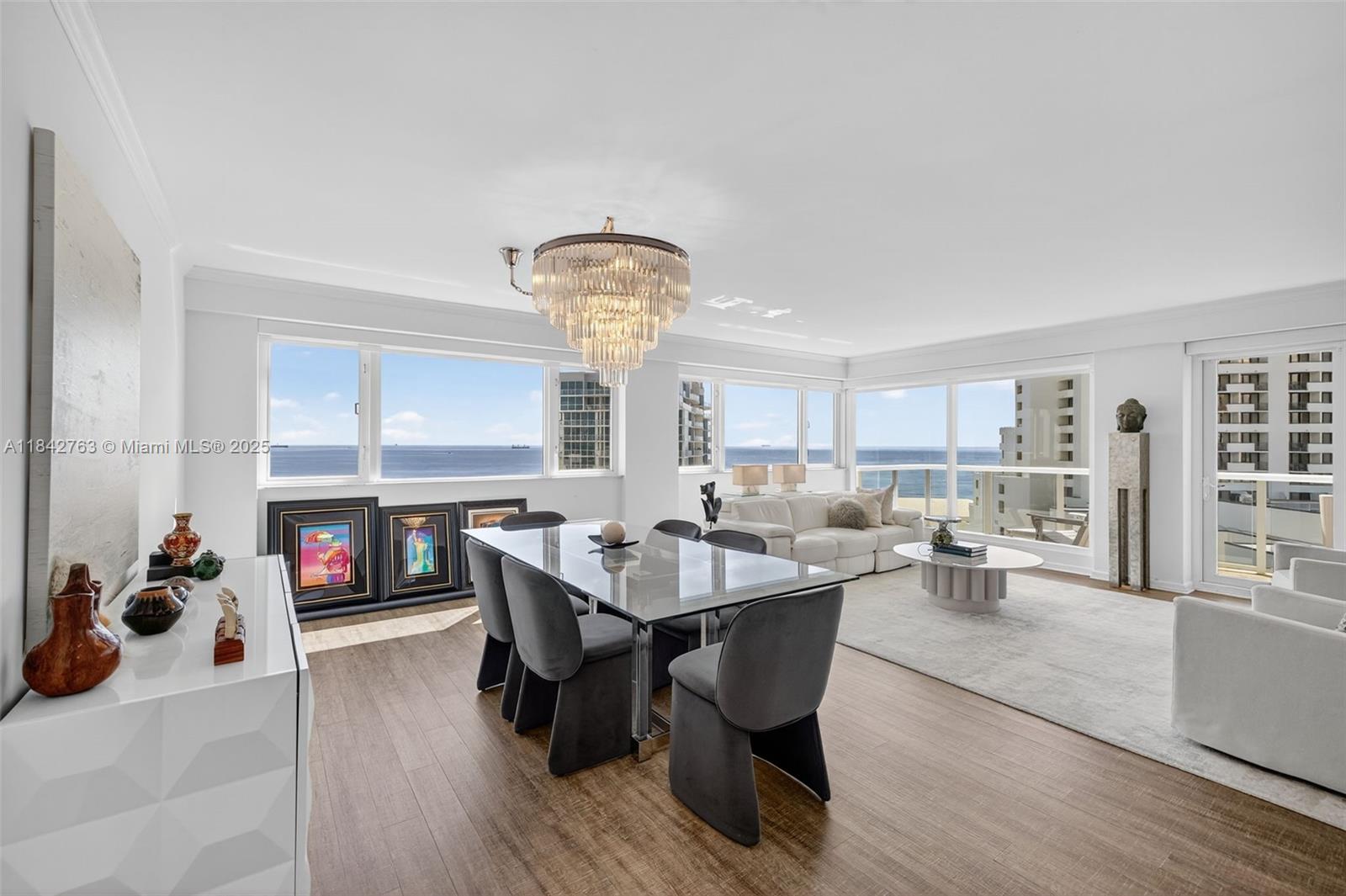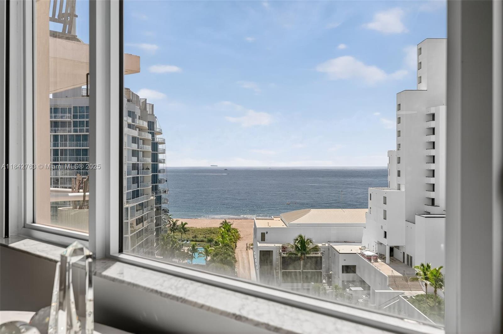 Wake up to breathtaking sunrises and fall asleep under moonlit skies through your wall-to-wall windows in this luxuriously updated 1BR/1.5BA condo with just under 1,200 sqft of coastal elegance. The kitchen is a showstopper, featuring oversized quartz countertops, a marble backsplash, high-end appliances, water filter, & under-cabinet lighting. Large primary suite features amazing views, & dual closets. The spa-like primary bath includes a walk-in shower with modern tile, grab bar, and towel warmer. Step onto your balcony and take in sweeping views of the ocean, Port Everglades, cruise ships, holiday fireworks, and the iconic annual air show. Additional features include remote controlled shades, and separate storage unit. Stroll to restaurants, water taxis, hotels, boat docs, and markets.