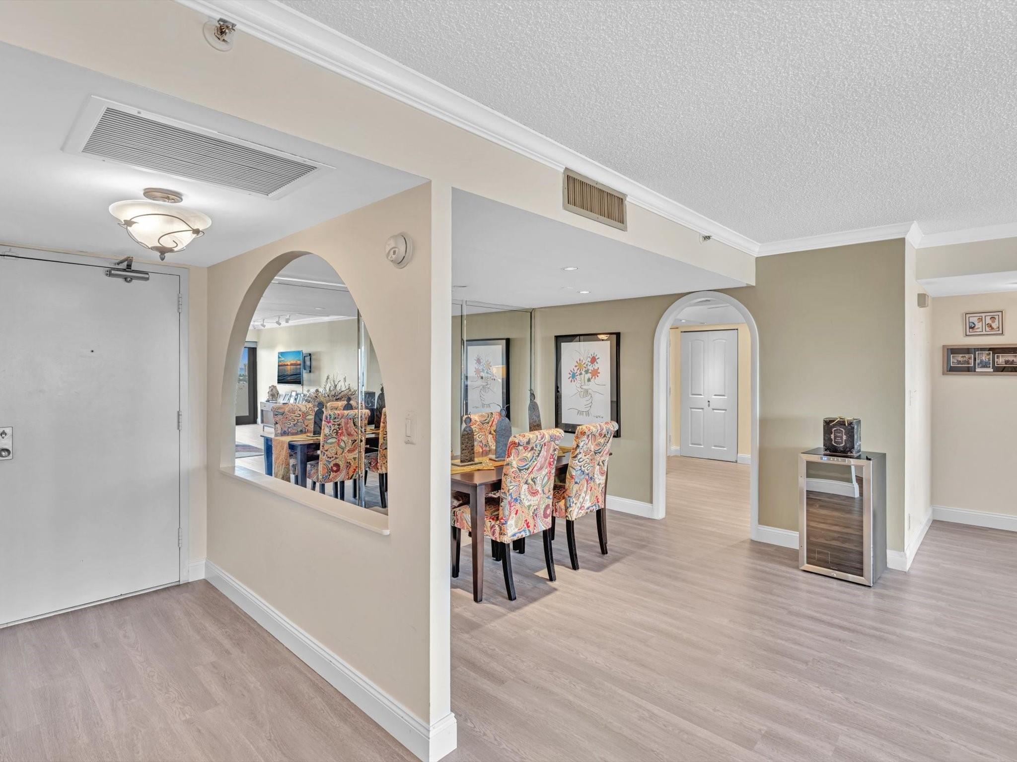 Boaters' dream home here! Private Condo Community w/ Dockages($520/Qtr)! Updated & Remodeled East-Facing 2/2 HIGH Floor unit in gated community & secured bldg w/ DIRECT OCEAN & INTRACOASTAL VIEWS from both bedrooms, Living & Dining rooms. 2023 hurricane impact windows & doors with original accordion shutters, 2022 Roller-shade , 2023 waterheater, 2017 AC & 2022 Luxury Waterproof LVT flooring. W&D in unit, split bedrooms (floor-plan attached). Jacuzzi tub in master. Garage (covered) parking, storage unit, plenty of guest parkings. Credit score 600+. Can Rent Immediately. Building is well maintained & has great reserves. Info & fees are believed to be accurate, buyers & agent to verify.