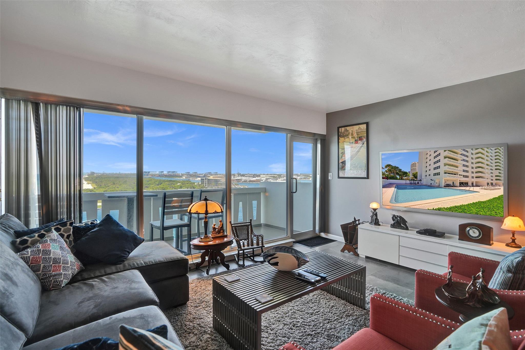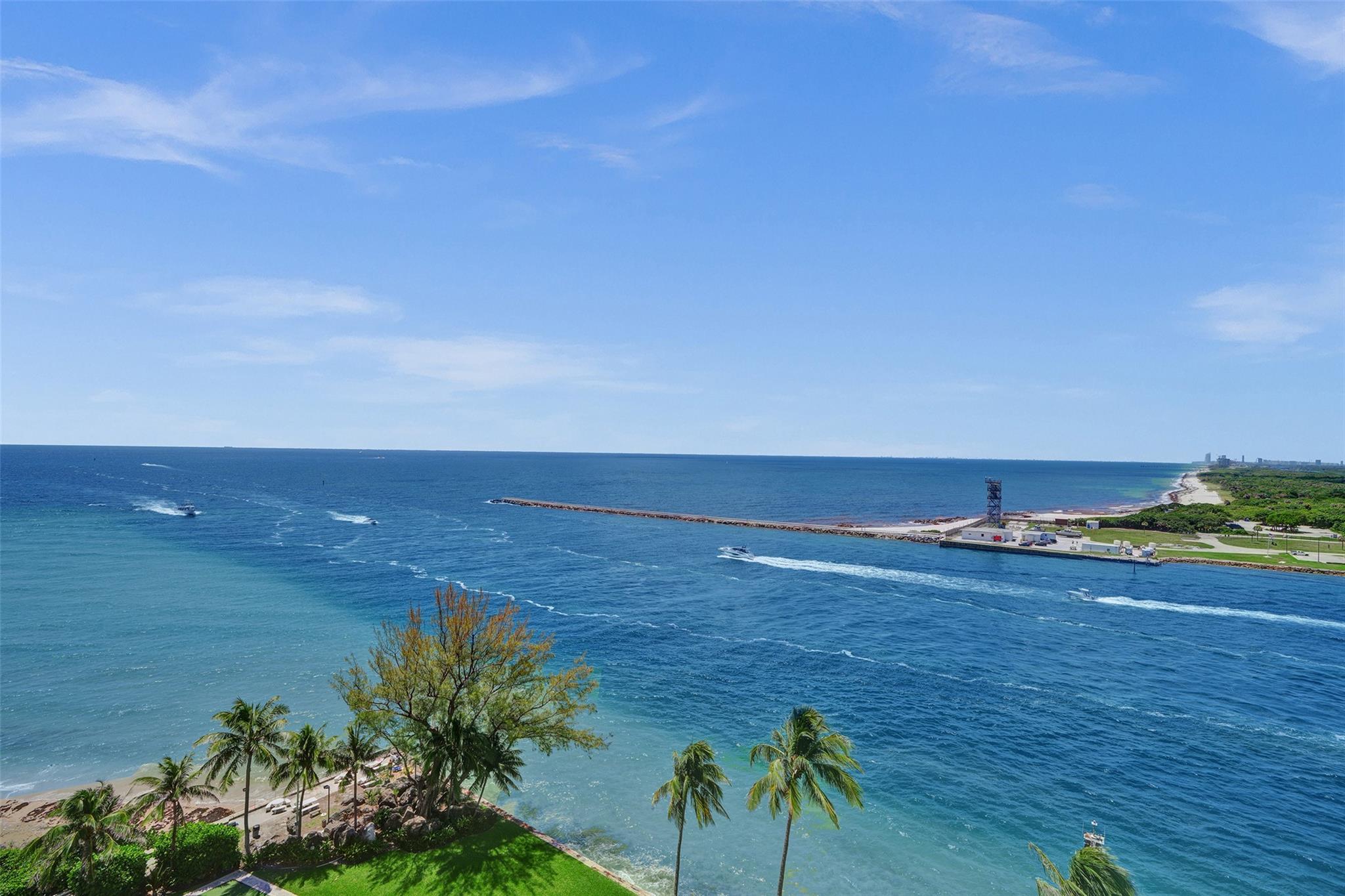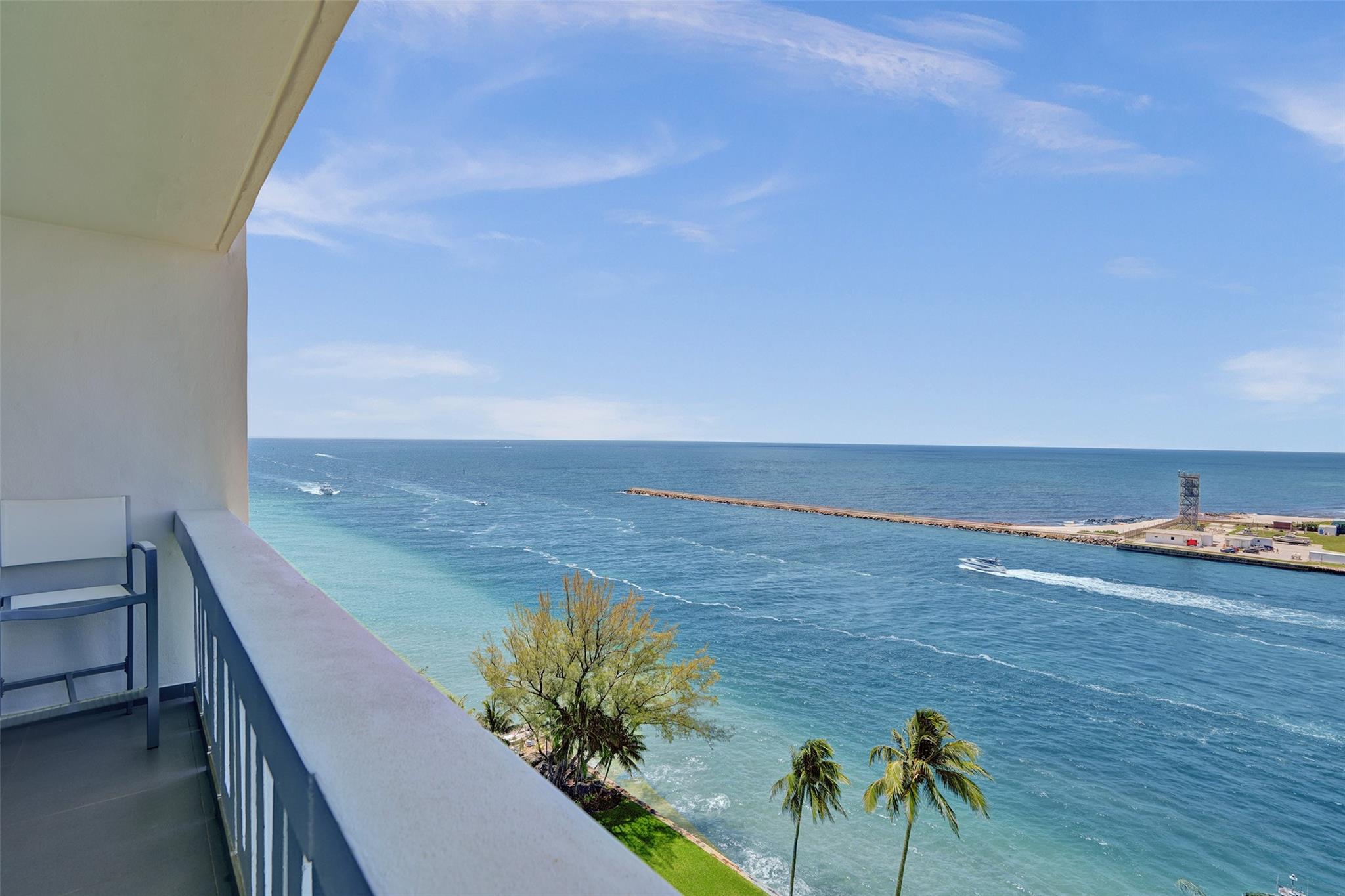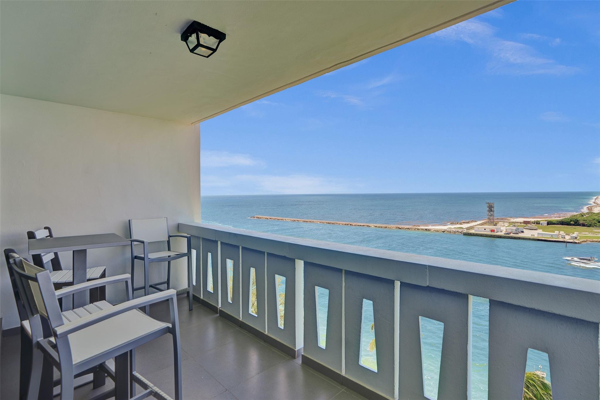 Move right into this fully furnished (artwork excluded) condo with spectacular south-facing views of the inlet and ocean. Features include tile floors in living areas, plush carpet in the bedroom, impact windows and doors, a luxury white kitchen with quartz countertops, and a fully updated bathroom. The spacious bedroom includes a walk-in closet with custom cabinetry. Lowest-priced unit in the building with these upgrades and views! Sky Harbour offers premium amenities, including a heated inlet-view pool, fitness center, putting green, BBQ area, fishing, and direct beach access. Ideal for full-time living or a relaxing beach getaway. Easy to show—call today! Enjoy sunrises from your private balcony and walk to the beach in minutes. W/D IN THE UNIT.