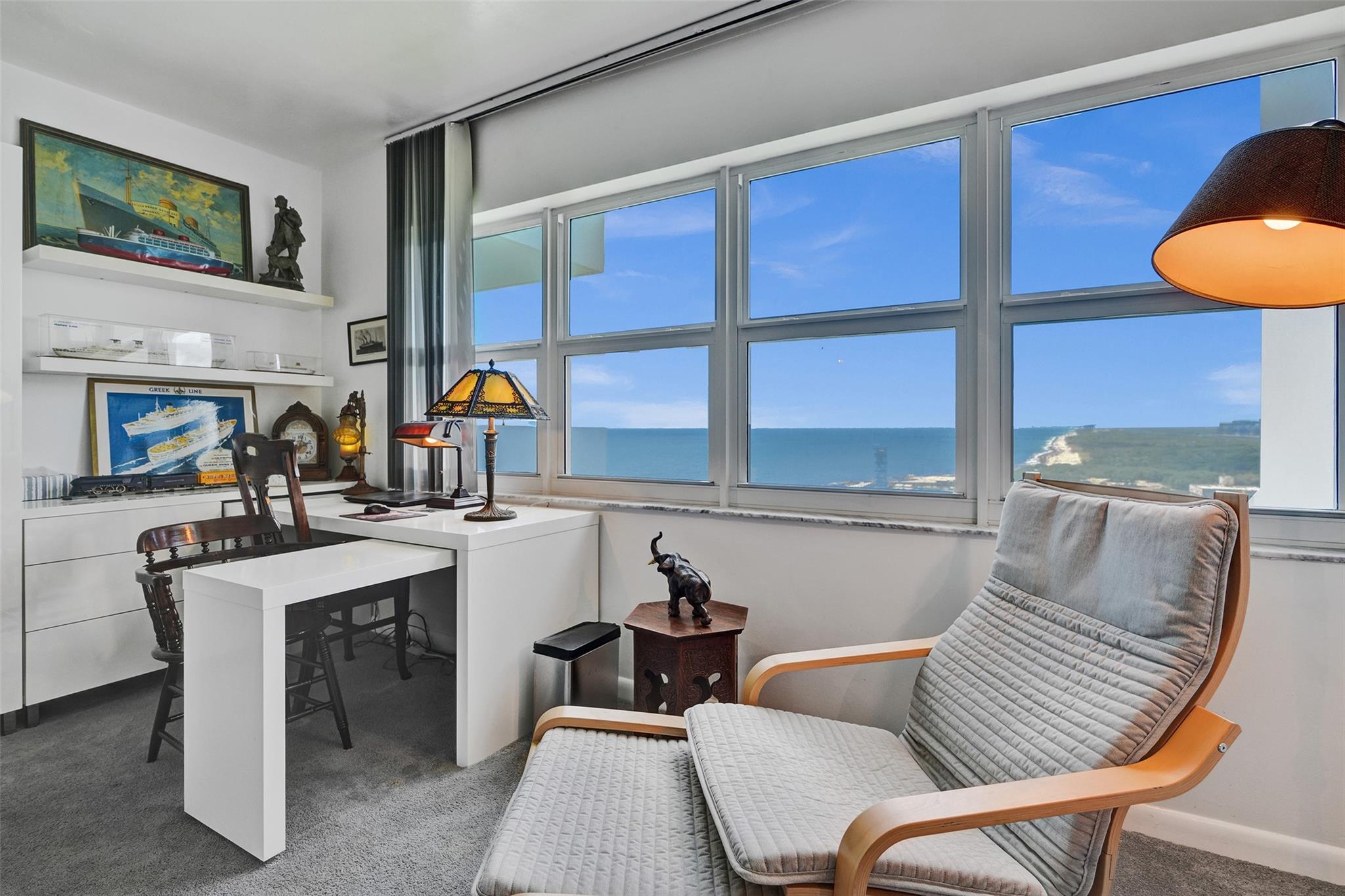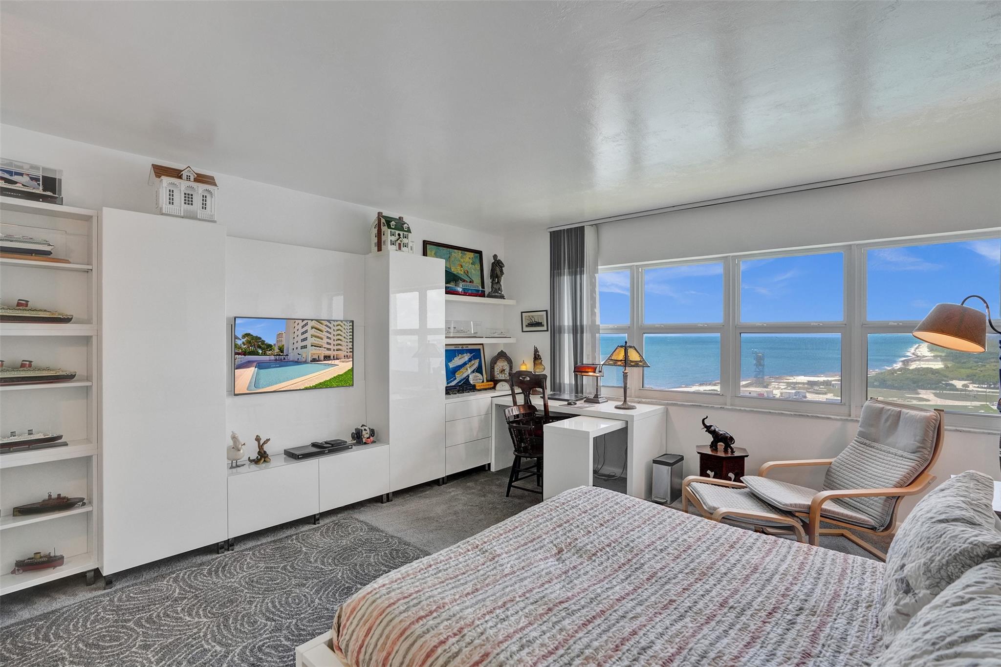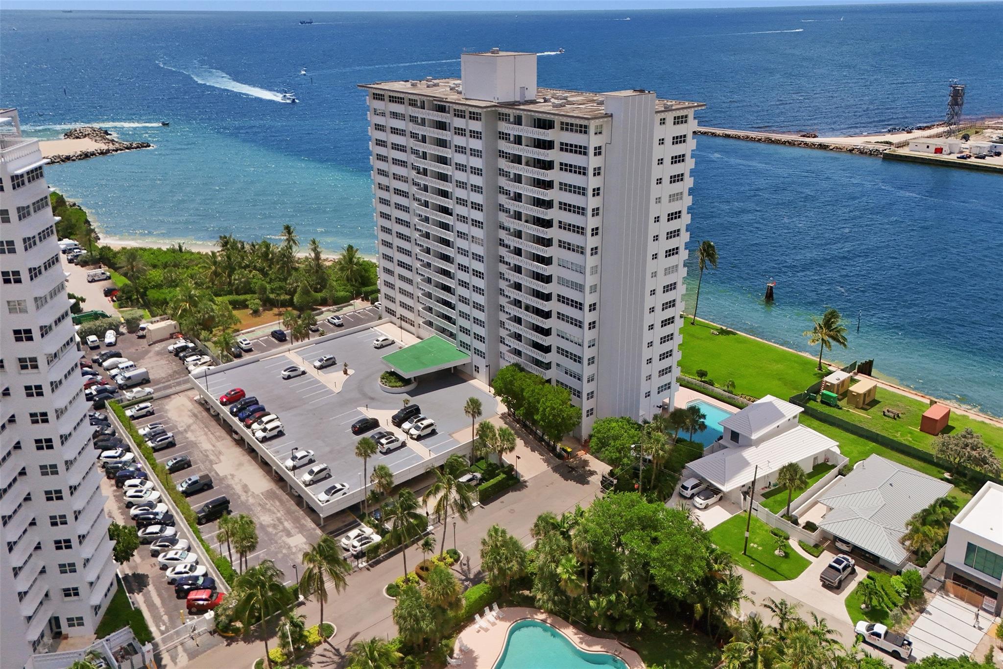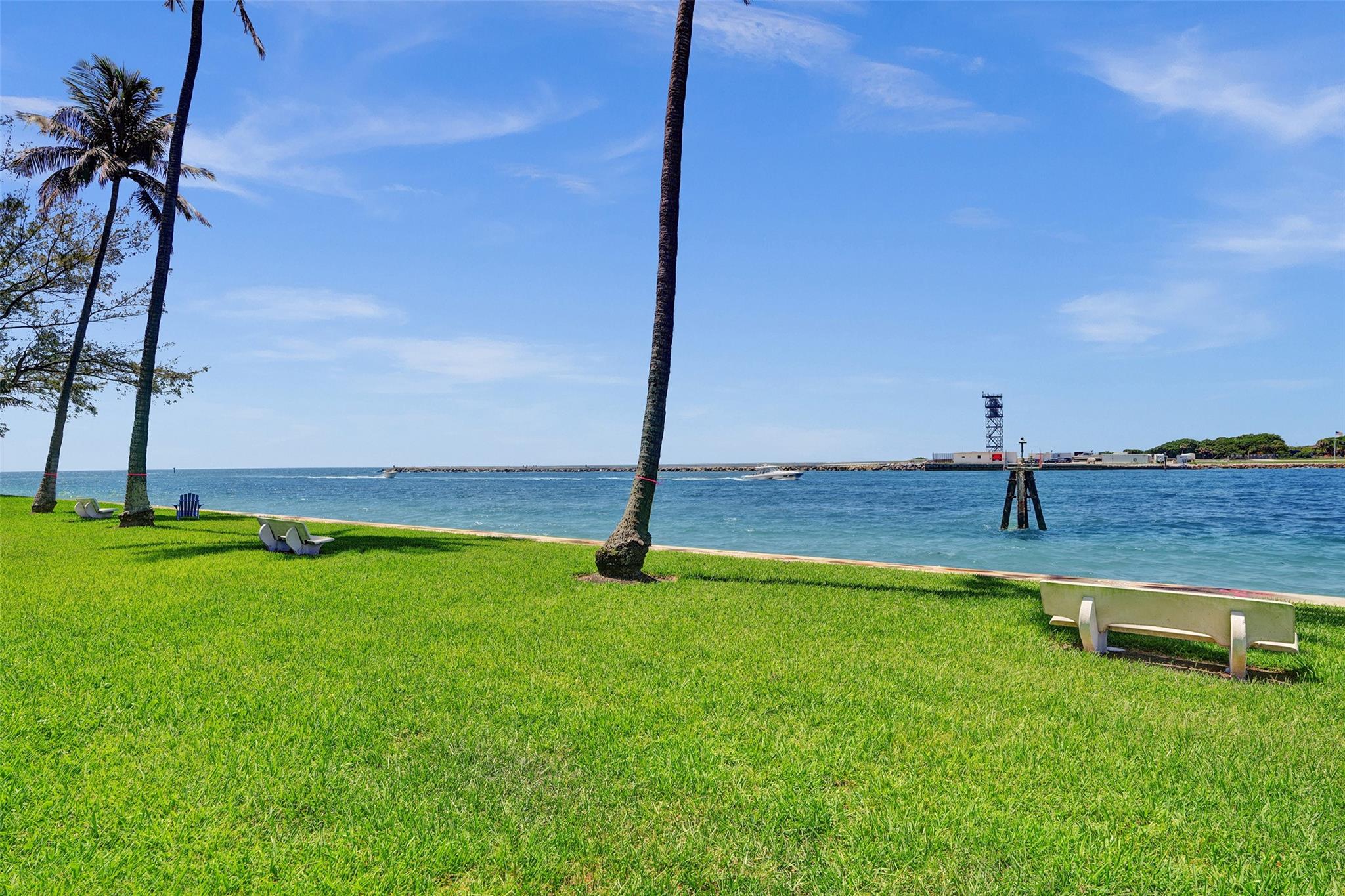 Move right into this fully furnished (artwork excluded) condo with spectacular south-facing views of the inlet and ocean. Features include tile floors in living areas, plush carpet in the bedroom, impact windows and doors, a luxury white kitchen with quartz countertops, and a fully updated bathroom. The spacious bedroom includes a walk-in closet with custom cabinetry. Lowest-priced unit in the building with these upgrades and views! Sky Harbour offers premium amenities, including a heated inlet-view pool, fitness center, putting green, BBQ area, fishing, and direct beach access. Ideal for full-time living or a relaxing beach getaway. Easy to show—call today! Enjoy sunrises from your private balcony and walk to the beach in minutes. W/D IN THE UNIT.