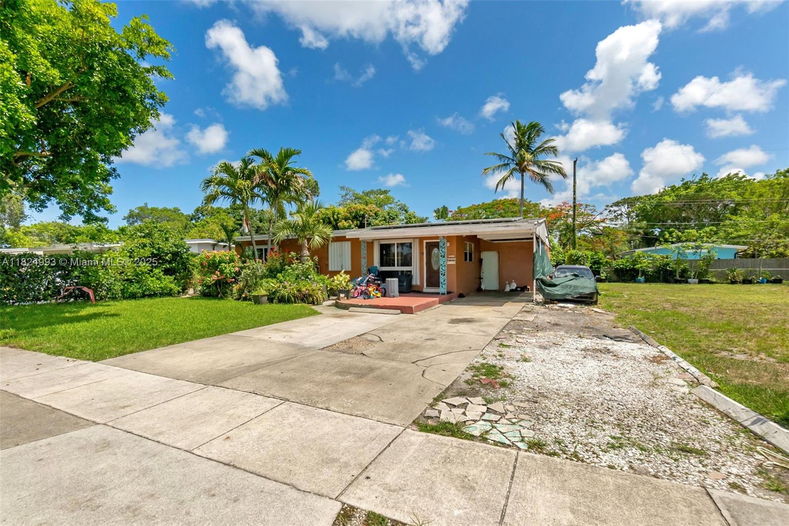 Located in the desirable Sherwood Forest community in Fort Lauderdale, this 3-bedroom, 2-bathroom single-family home includes a versatile family room currently used as a 4th bedroom. The home features neutral tile flooring throughout, a spacious kitchen with wood cabinetry and stainless steel appliances, and vaulted ceilings with updated recessed lighting. New solar panels will remain with the property and will be paid off at closing. AC is from 2018. Enjoy a fully fenced backyard with fruit trees. Some windows are impact-rated; all have accordion shutters. Conveniently located near major highways, shopping, and dining.