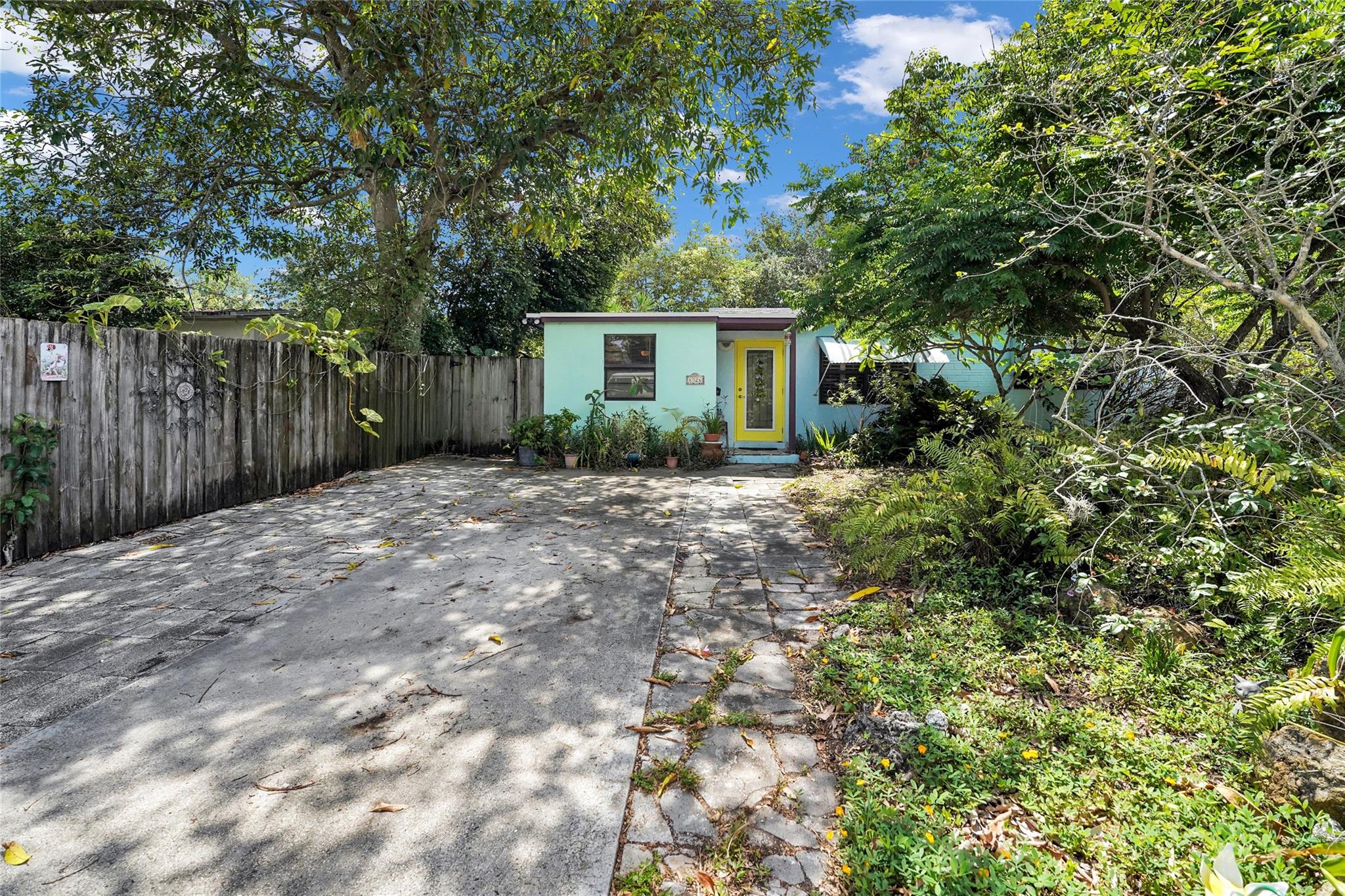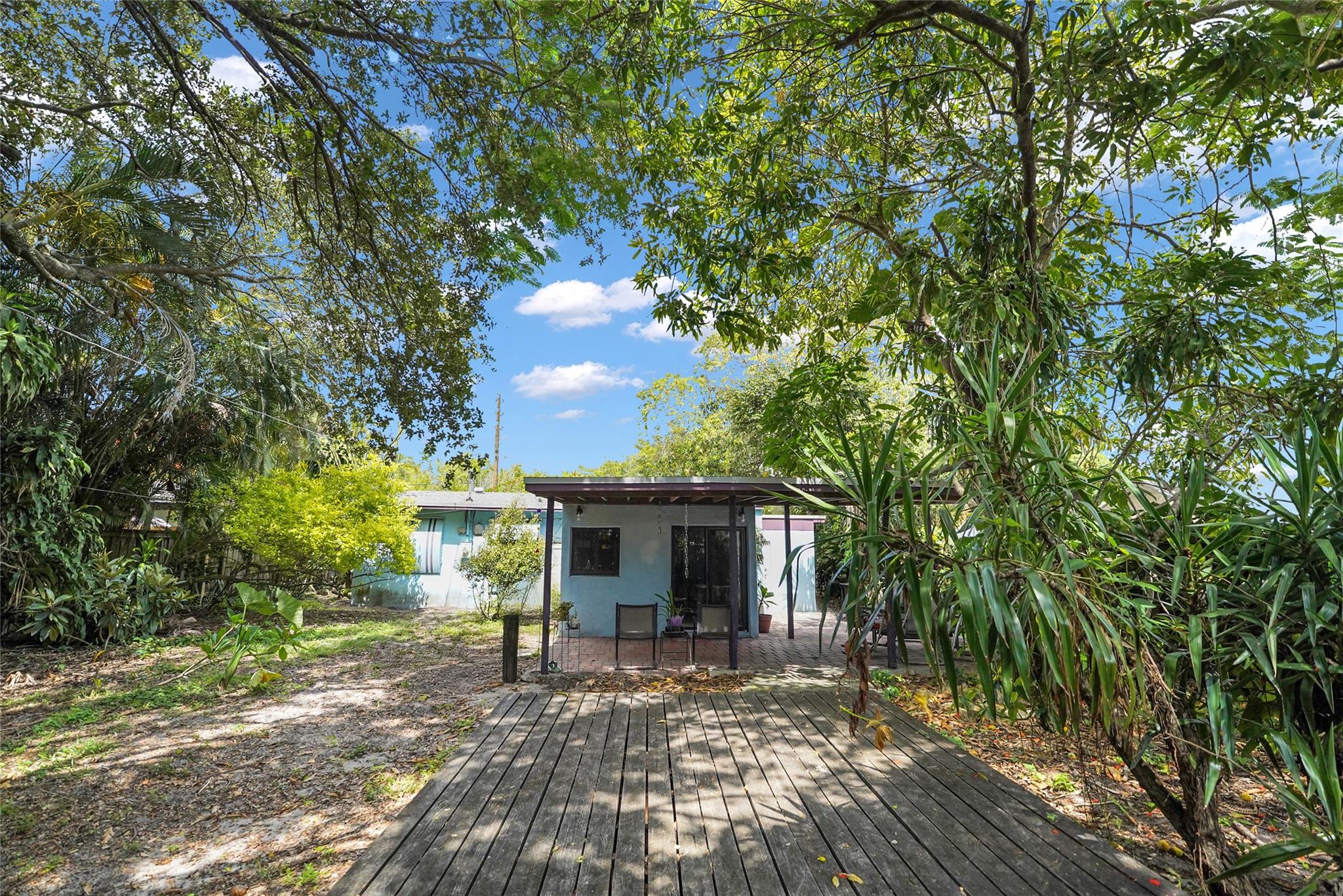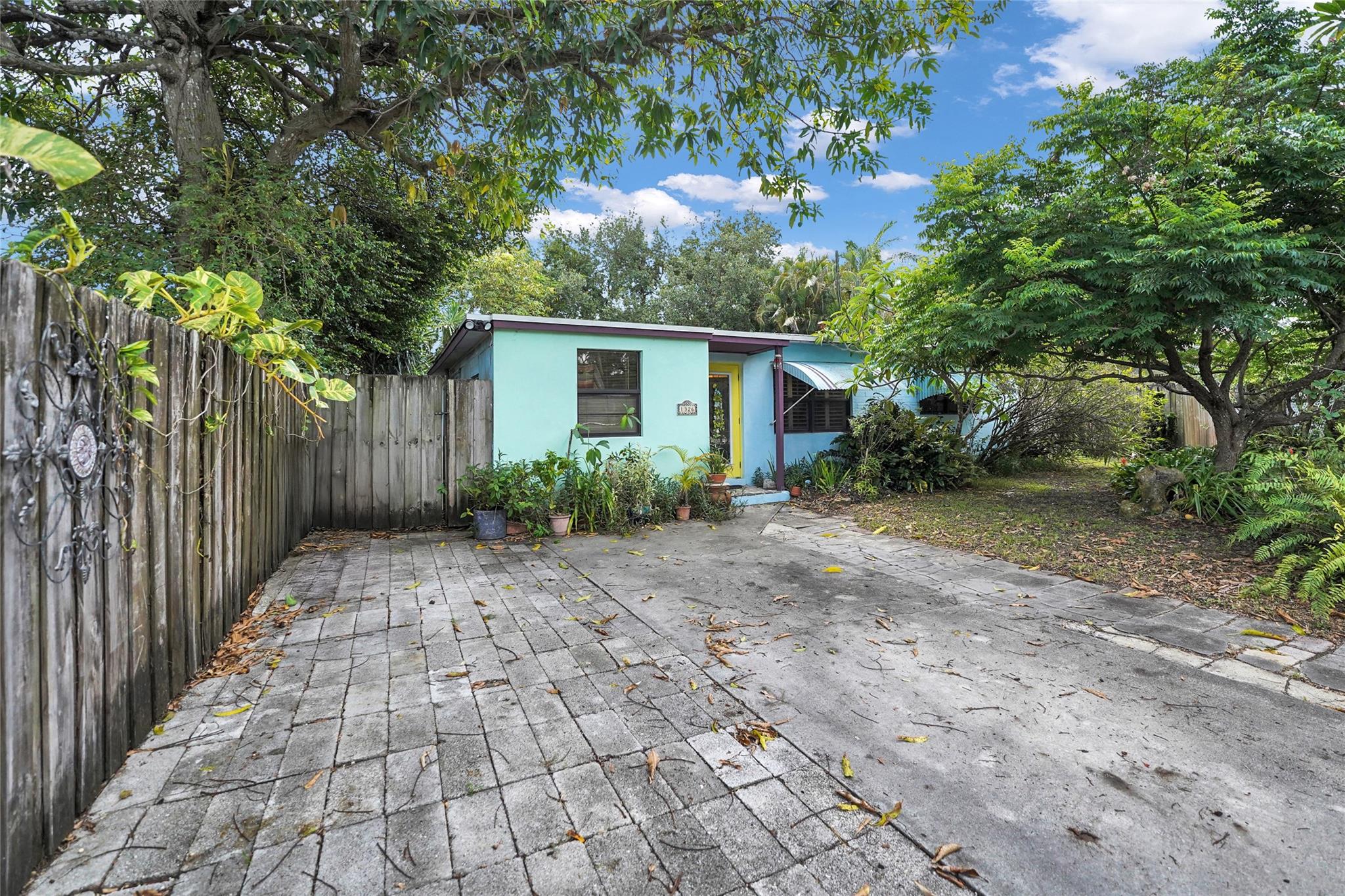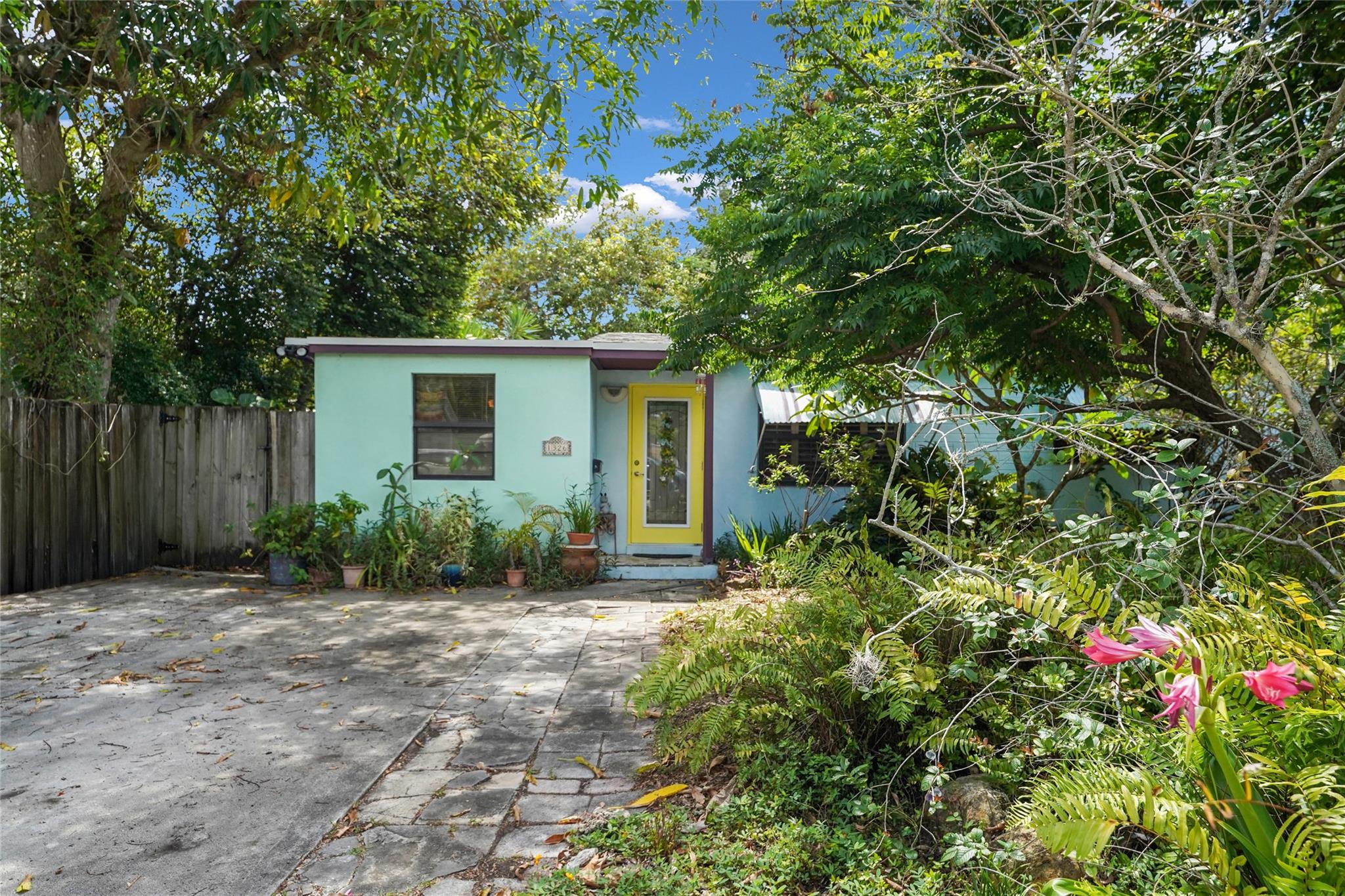 Location, Location, Location. 2 bed/2 bath single family home with NO HOA! Converted garage can be used as 3rd bedroom or extra storage. Enjoy a peaceful garden view in front and a huge fenced backyard with fruit trees. Relax on the covered back porch. Features include a New roof, appliances including washer/dryer, new kitchen cabinets, new water heater, and brand new A/C. All impact windows and doors. No pet restrictions. Prime location near airport, beaches, major highways, restaurants, and shopping! Light in Dining Room does not convey.