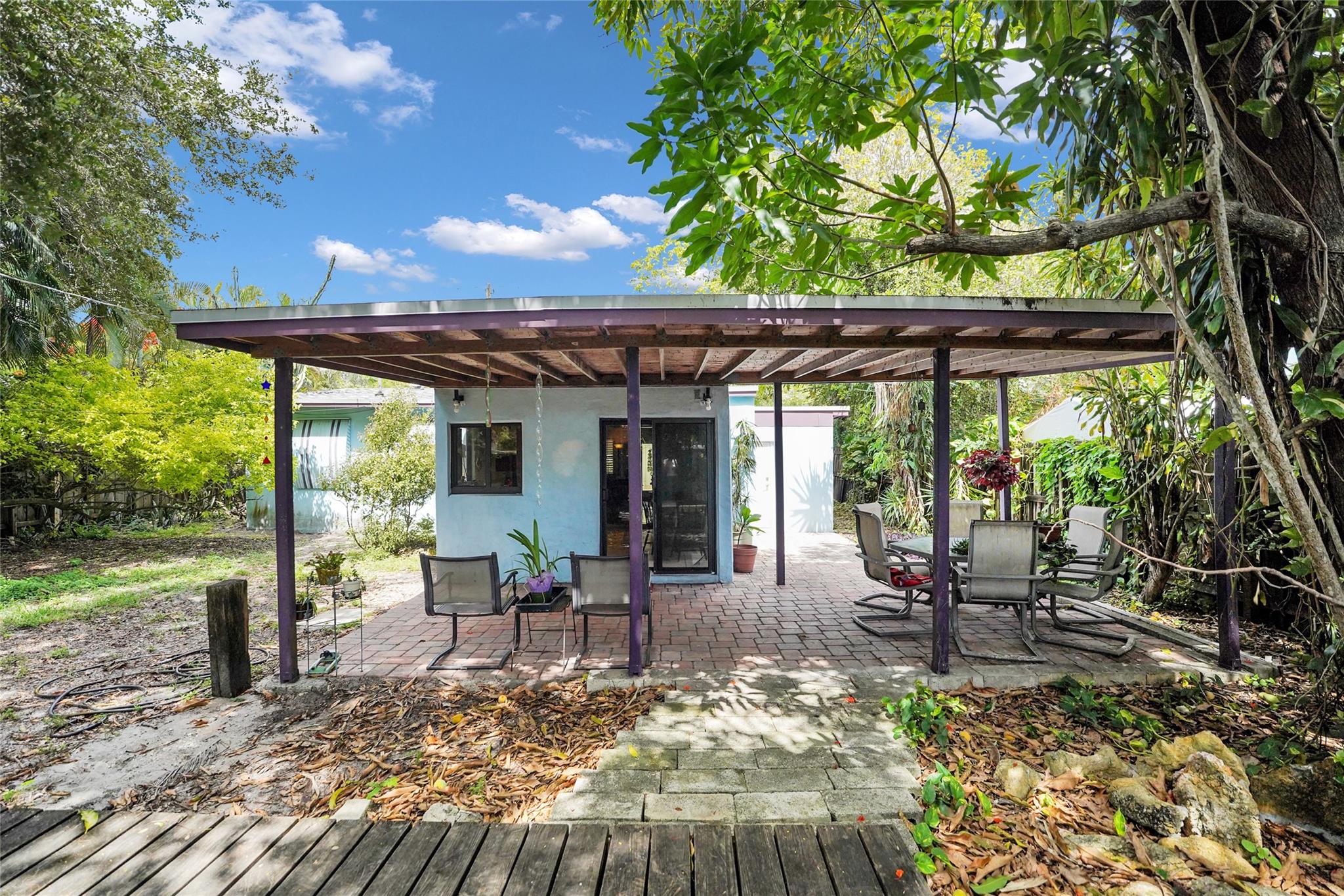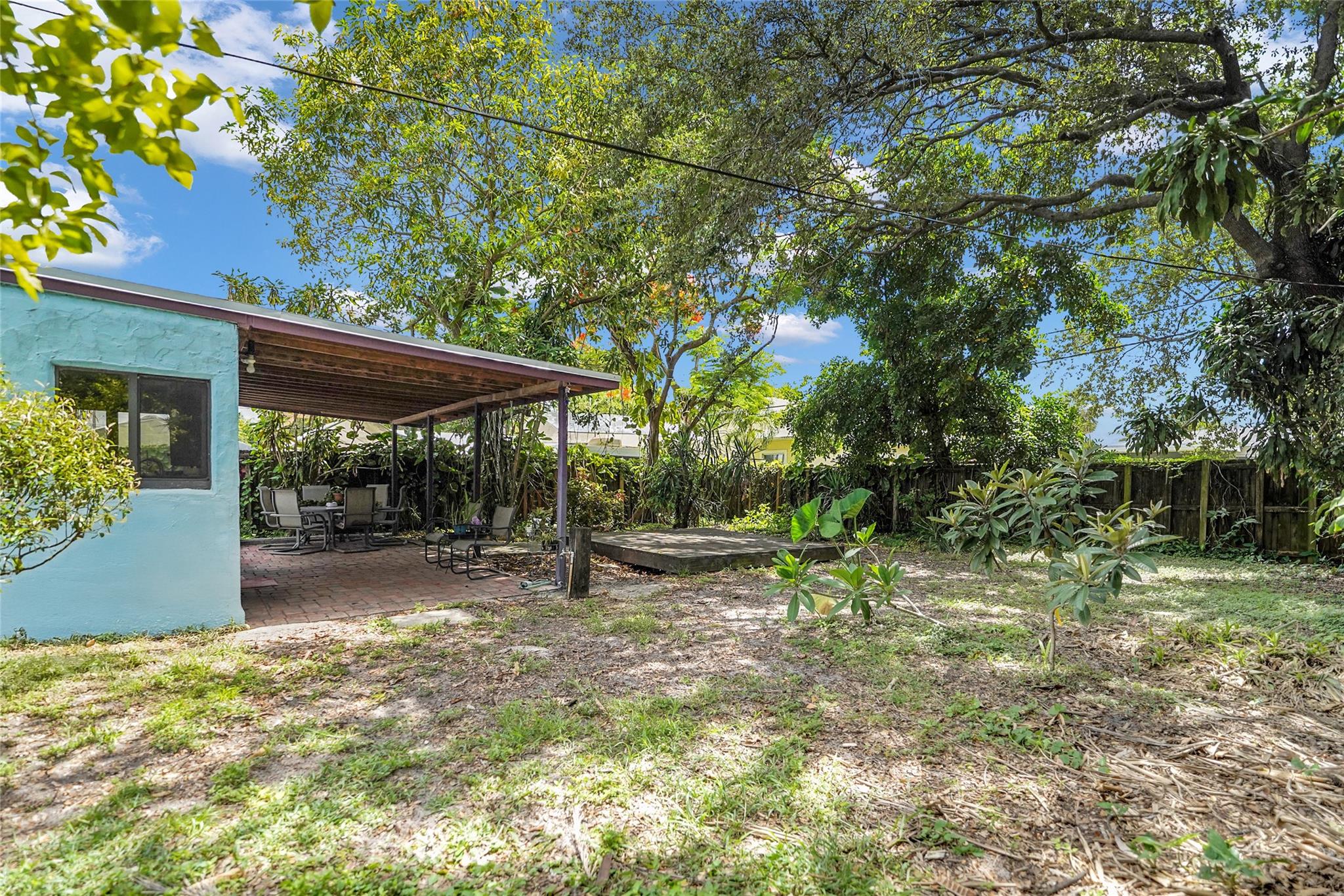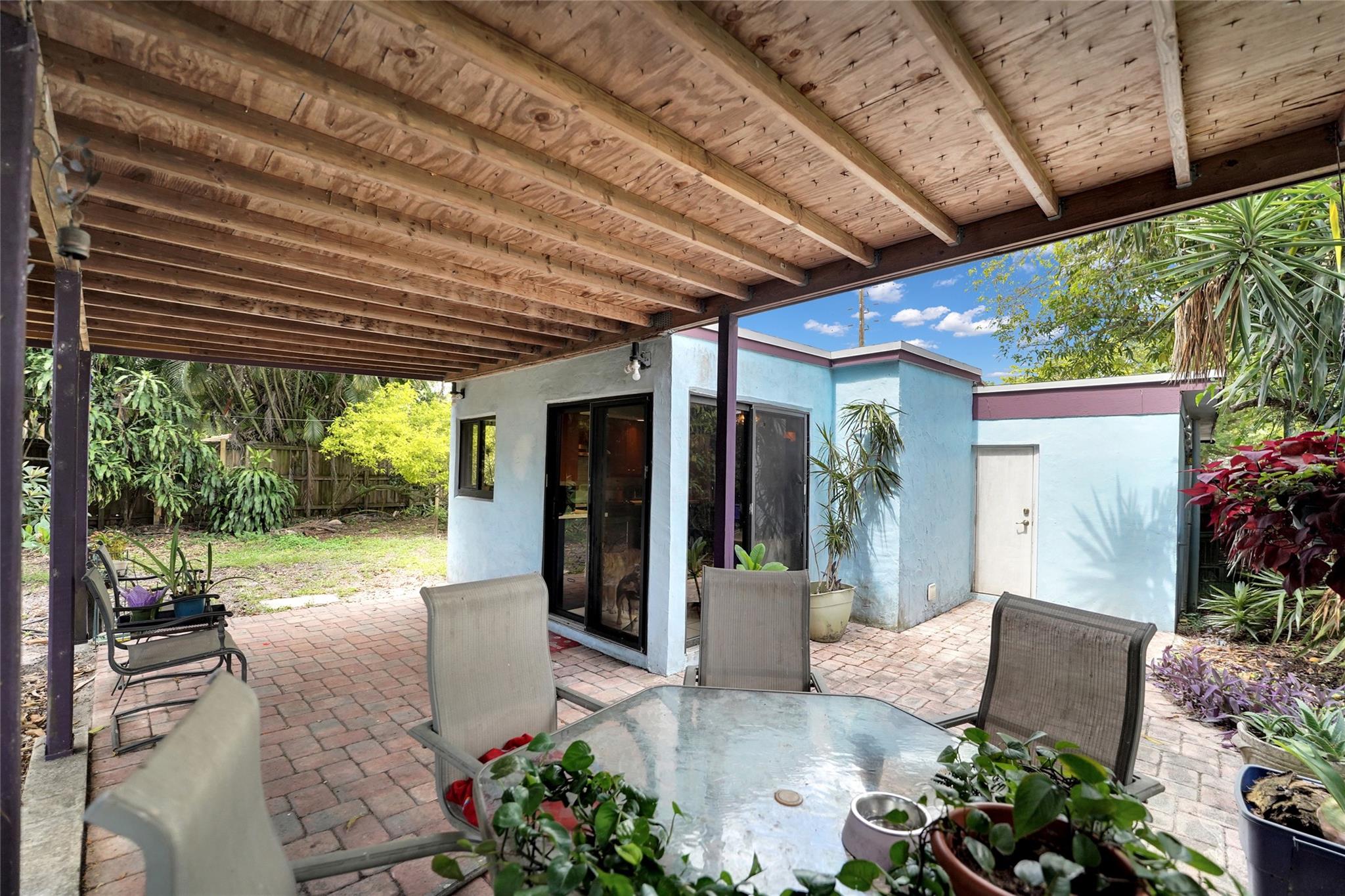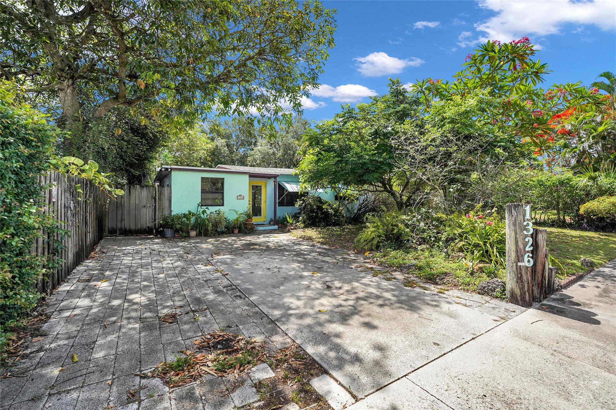 Location, Location, Location. 2 bed/2 bath single family home with NO HOA! Converted garage can be used as 3rd bedroom or extra storage. Enjoy a peaceful garden view in front and a huge fenced backyard with fruit trees. Relax on the covered back porch. Features include a New roof, appliances including washer/dryer, new kitchen cabinets, new water heater, and brand new A/C. All impact windows and doors. No pet restrictions. Prime location near airport, beaches, major highways, restaurants, and shopping! Light in Dining Room does not convey.