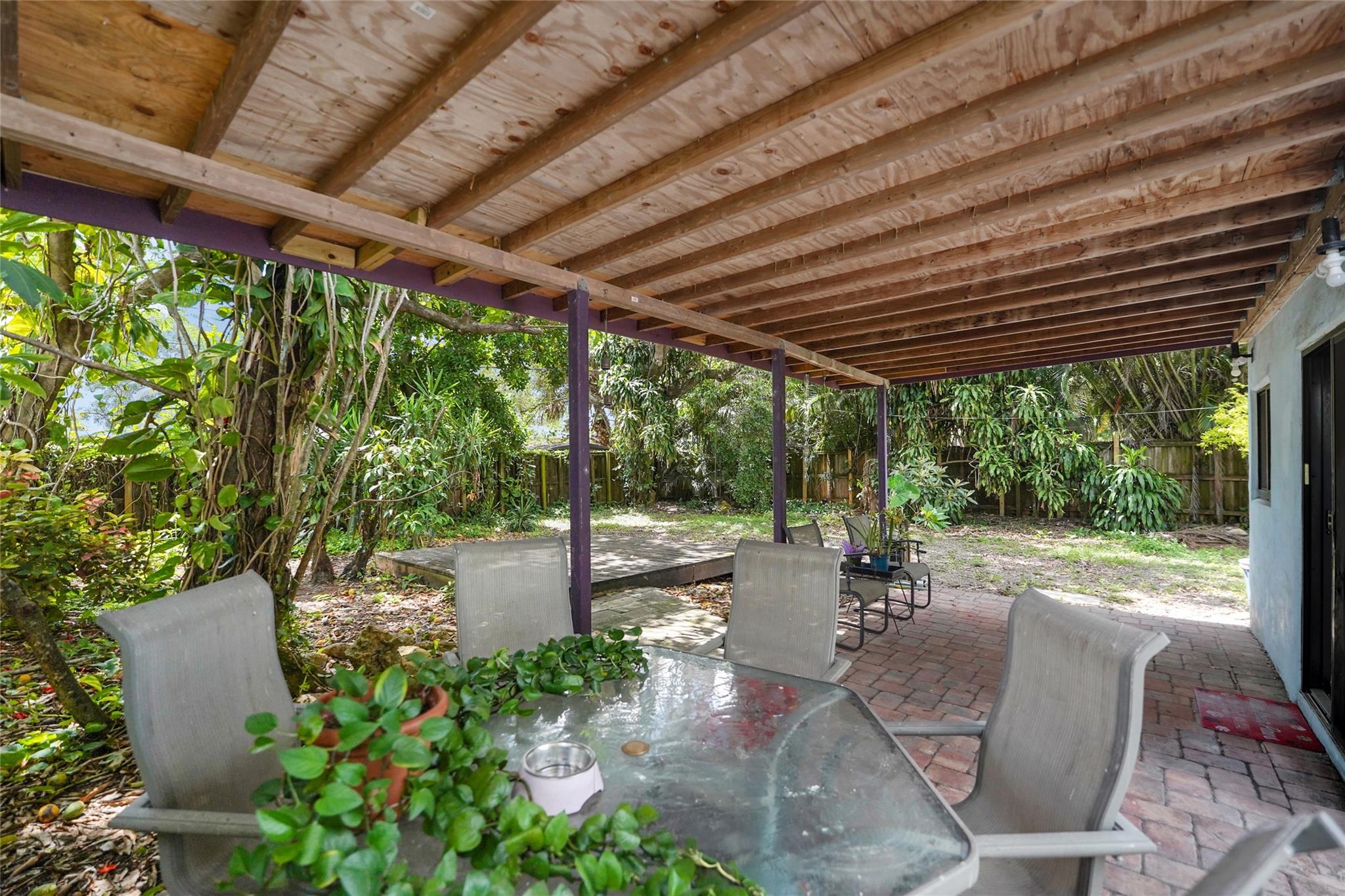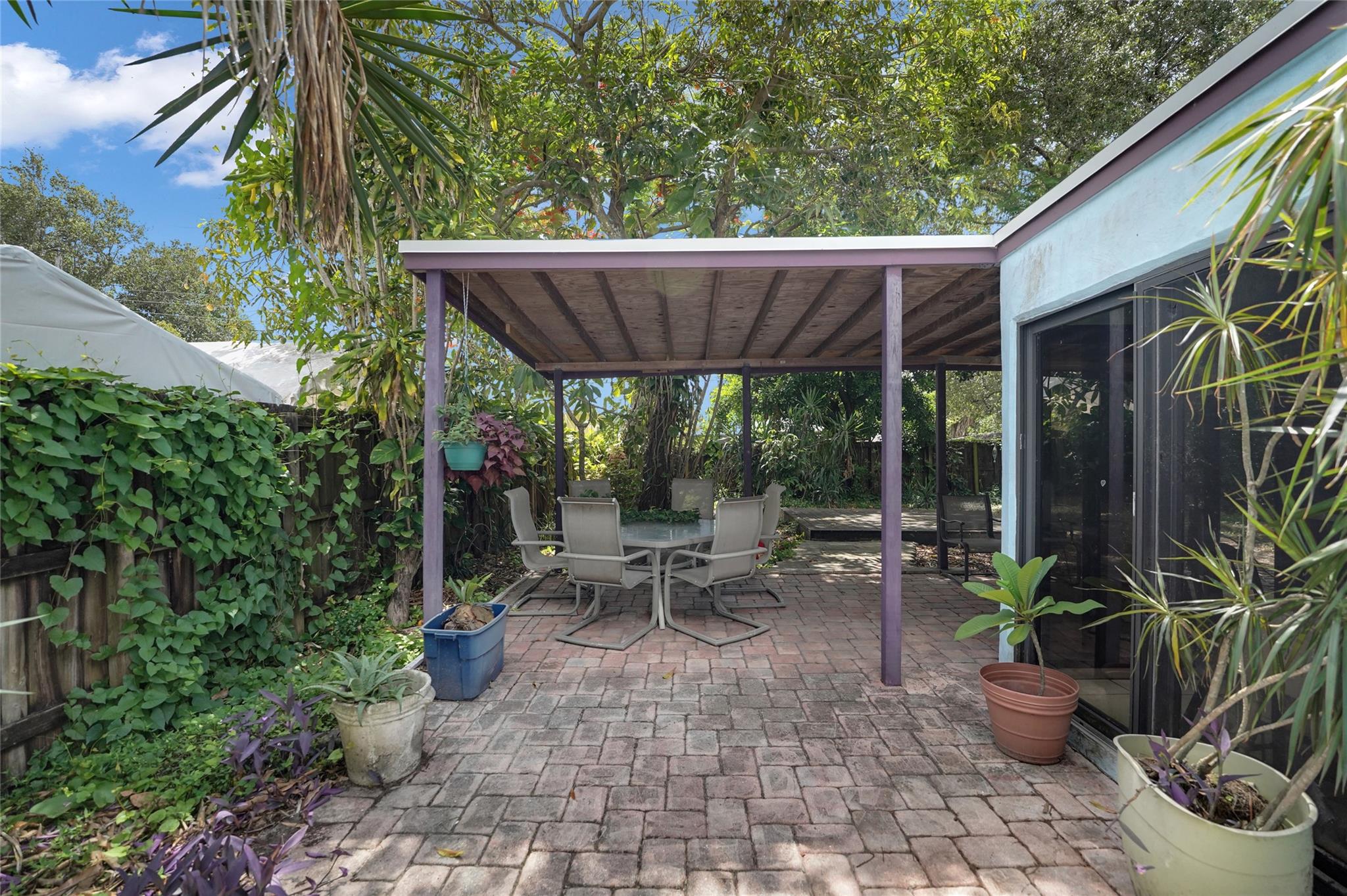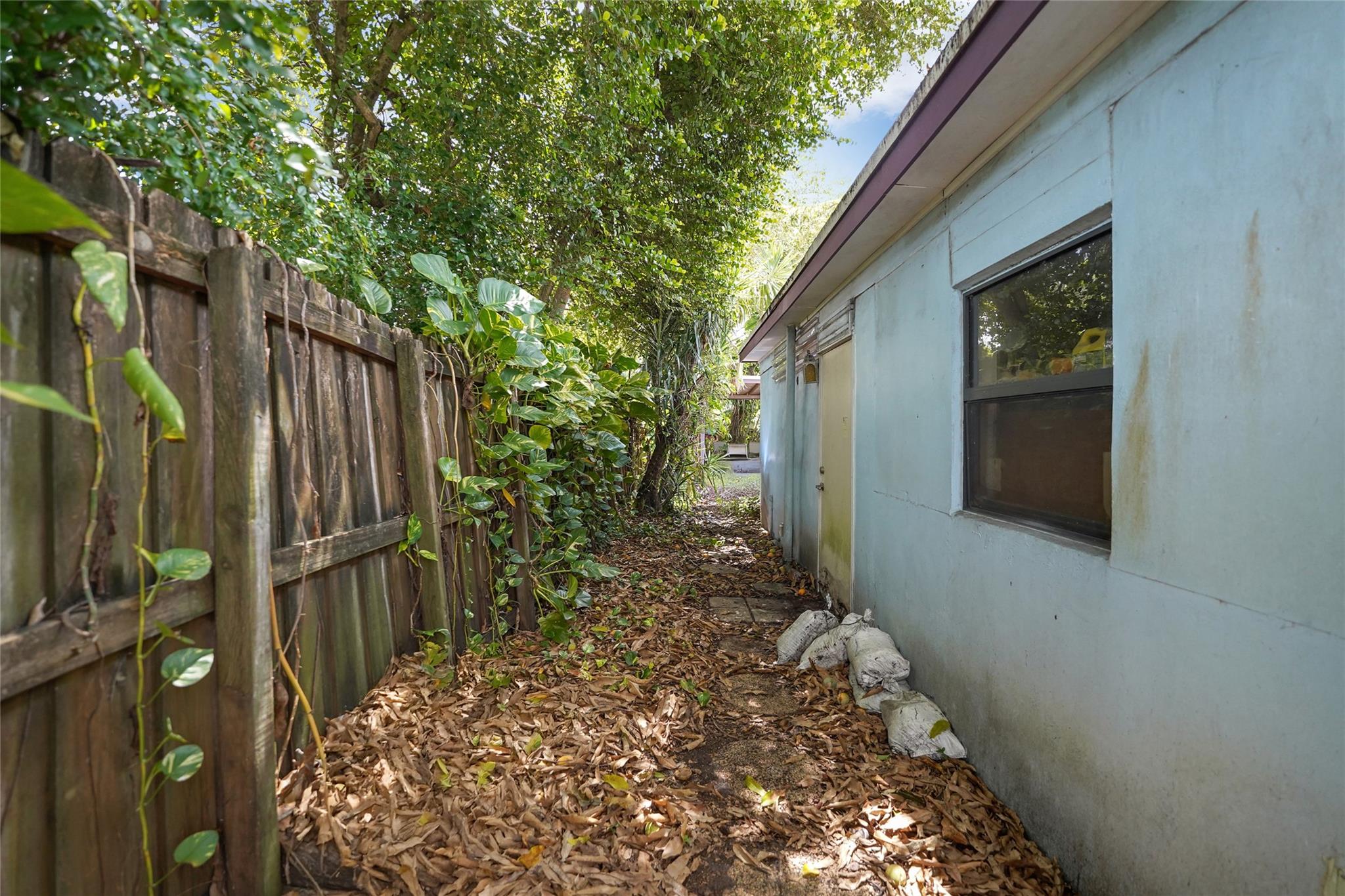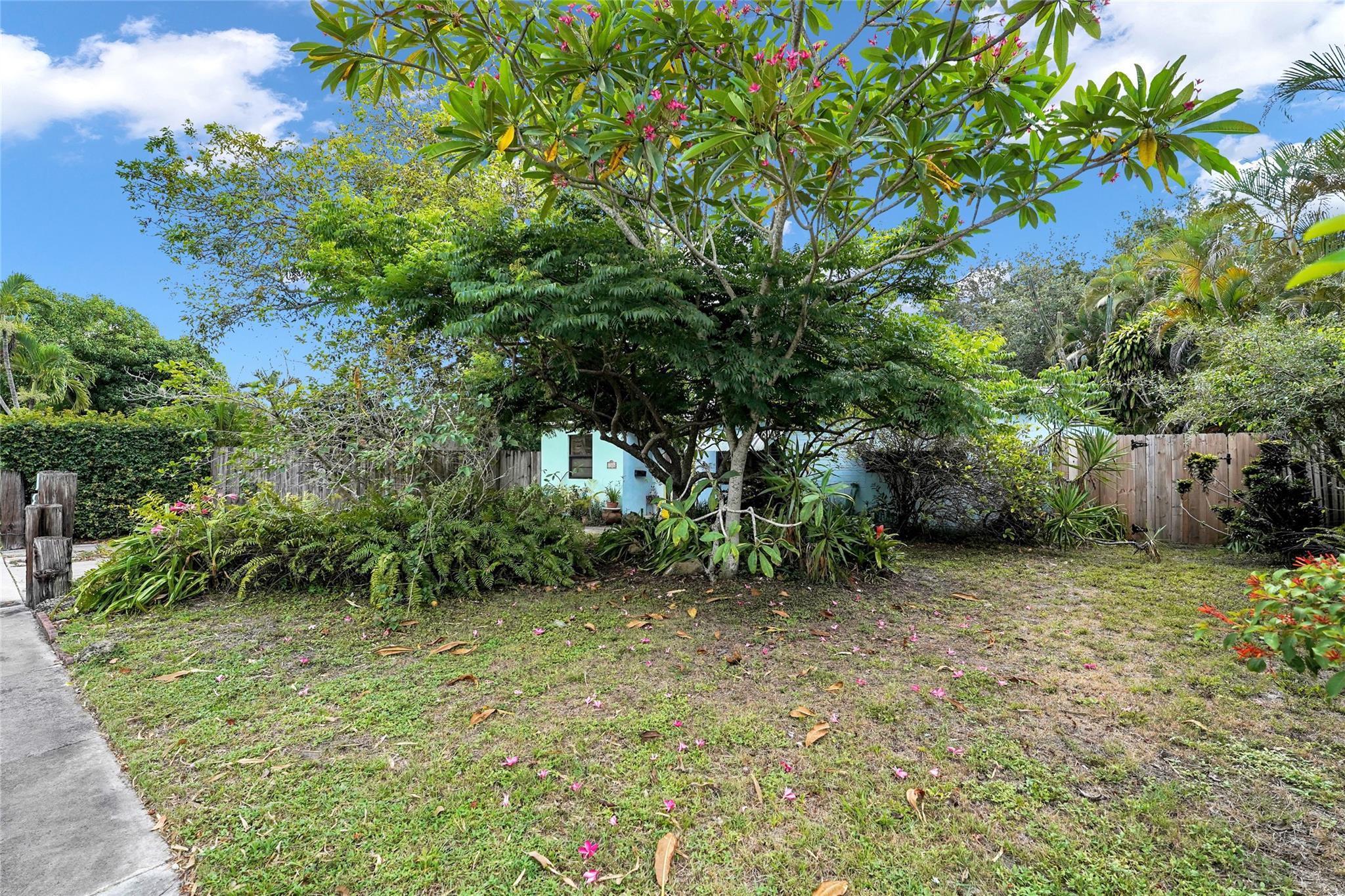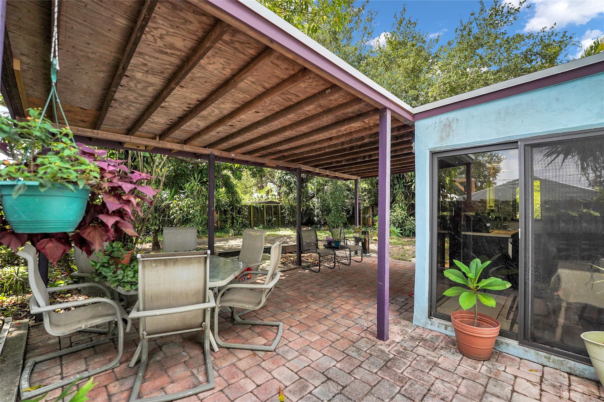 Location, Location, Location. 2 bed/2 bath single family home with NO HOA! Converted garage can be used as 3rd bedroom or extra storage. Enjoy a peaceful garden view in front and a huge fenced backyard with fruit trees. Relax on the covered back porch. Features include a New roof, appliances including washer/dryer, new kitchen cabinets, new water heater, and brand new A/C. All impact windows and doors. No pet restrictions. Prime location near airport, beaches, major highways, restaurants, and shopping! Light in Dining Room does not convey.
