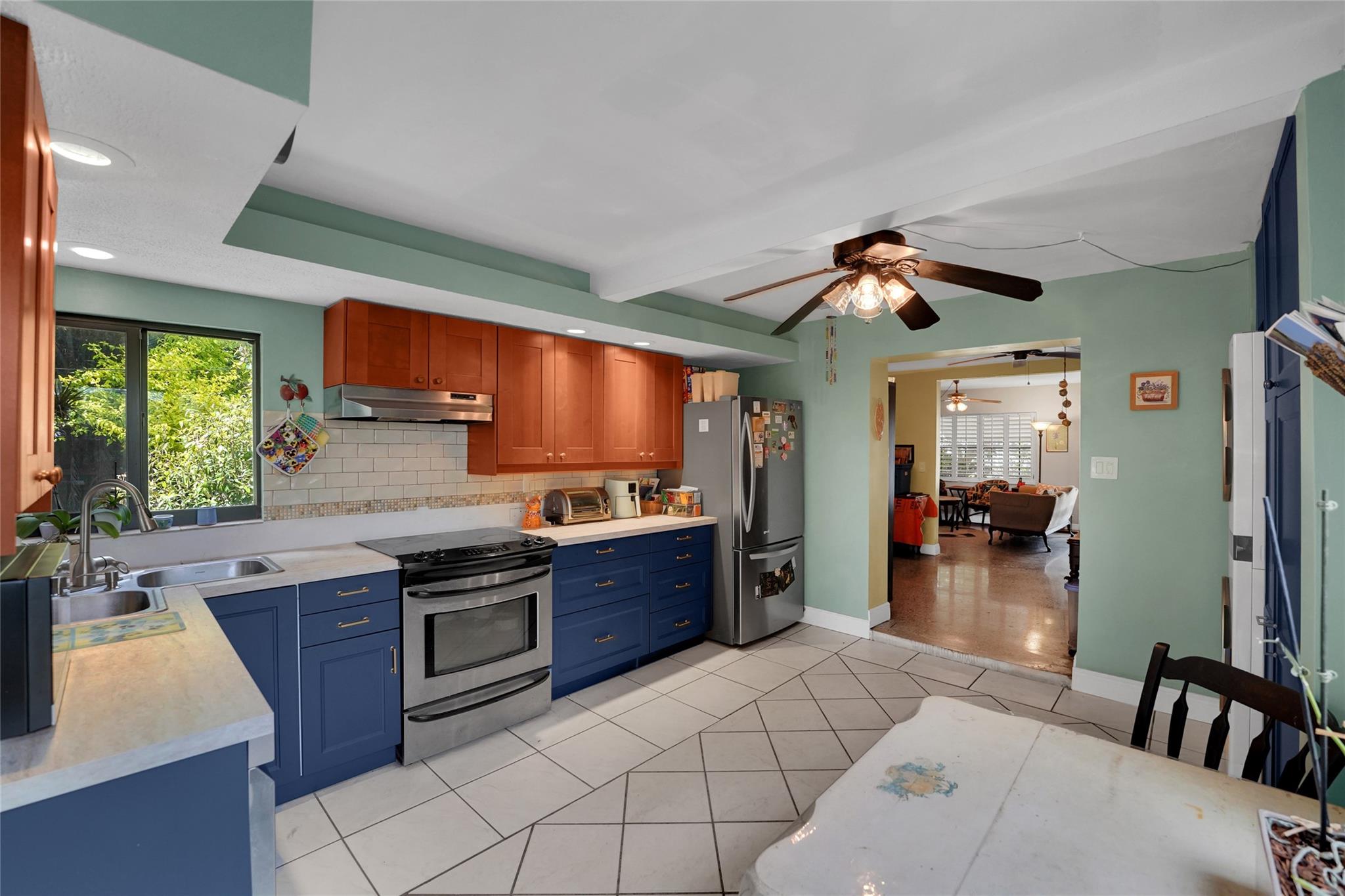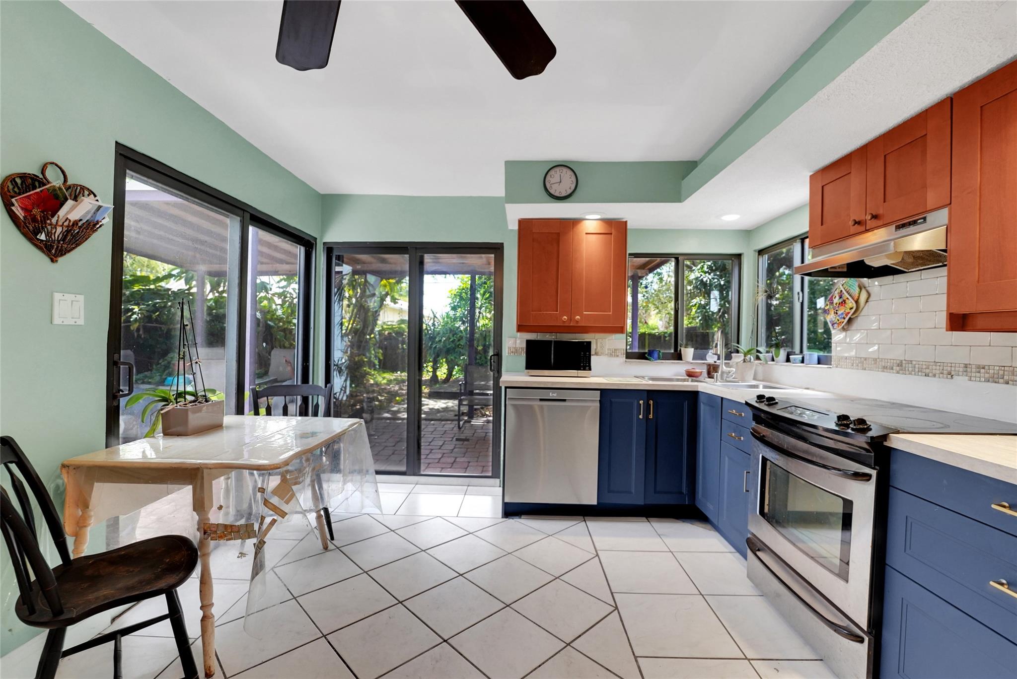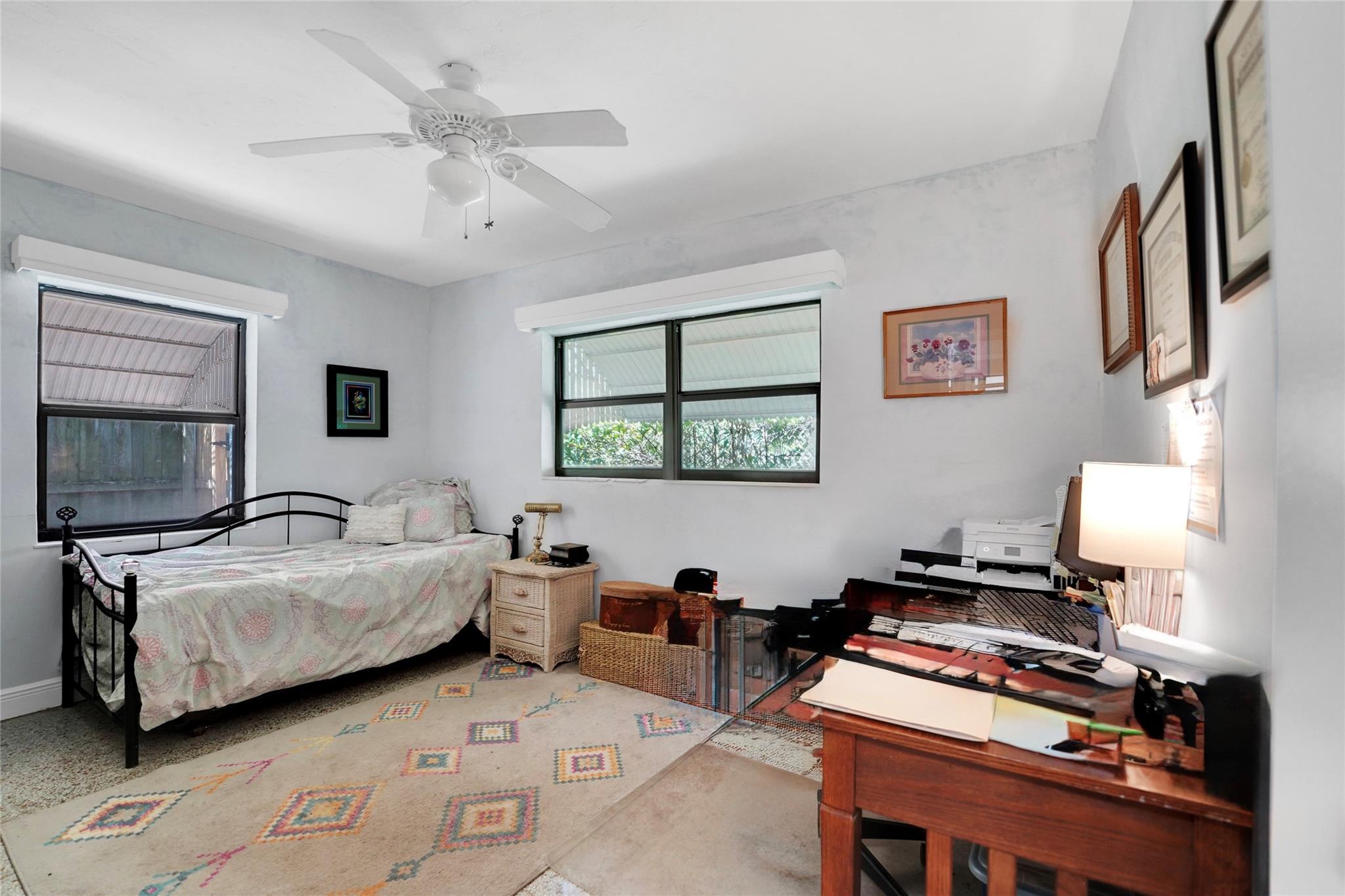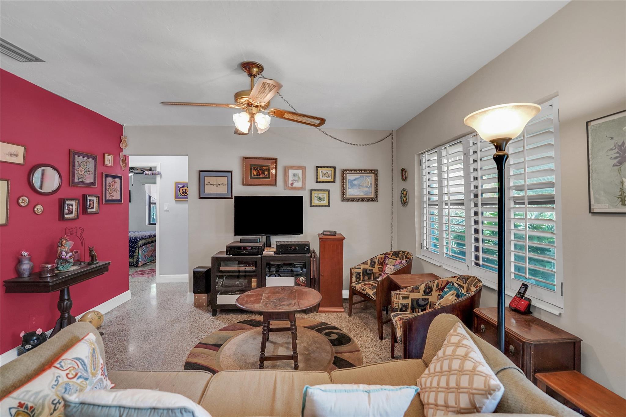 Location, Location, Location. 2 bed/2 bath single family home with NO HOA! Converted garage can be used as 3rd bedroom or extra storage. Enjoy a peaceful garden view in front and a huge fenced backyard with fruit trees. Relax on the covered back porch. Features include a New roof, appliances including washer/dryer, new kitchen cabinets, new water heater, and brand new A/C. All impact windows and doors. No pet restrictions. Prime location near airport, beaches, major highways, restaurants, and shopping! Light in Dining Room does not convey.