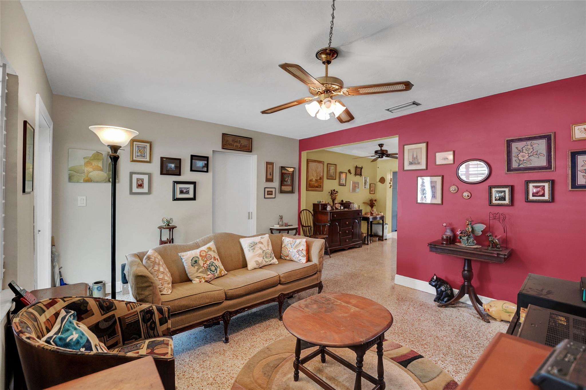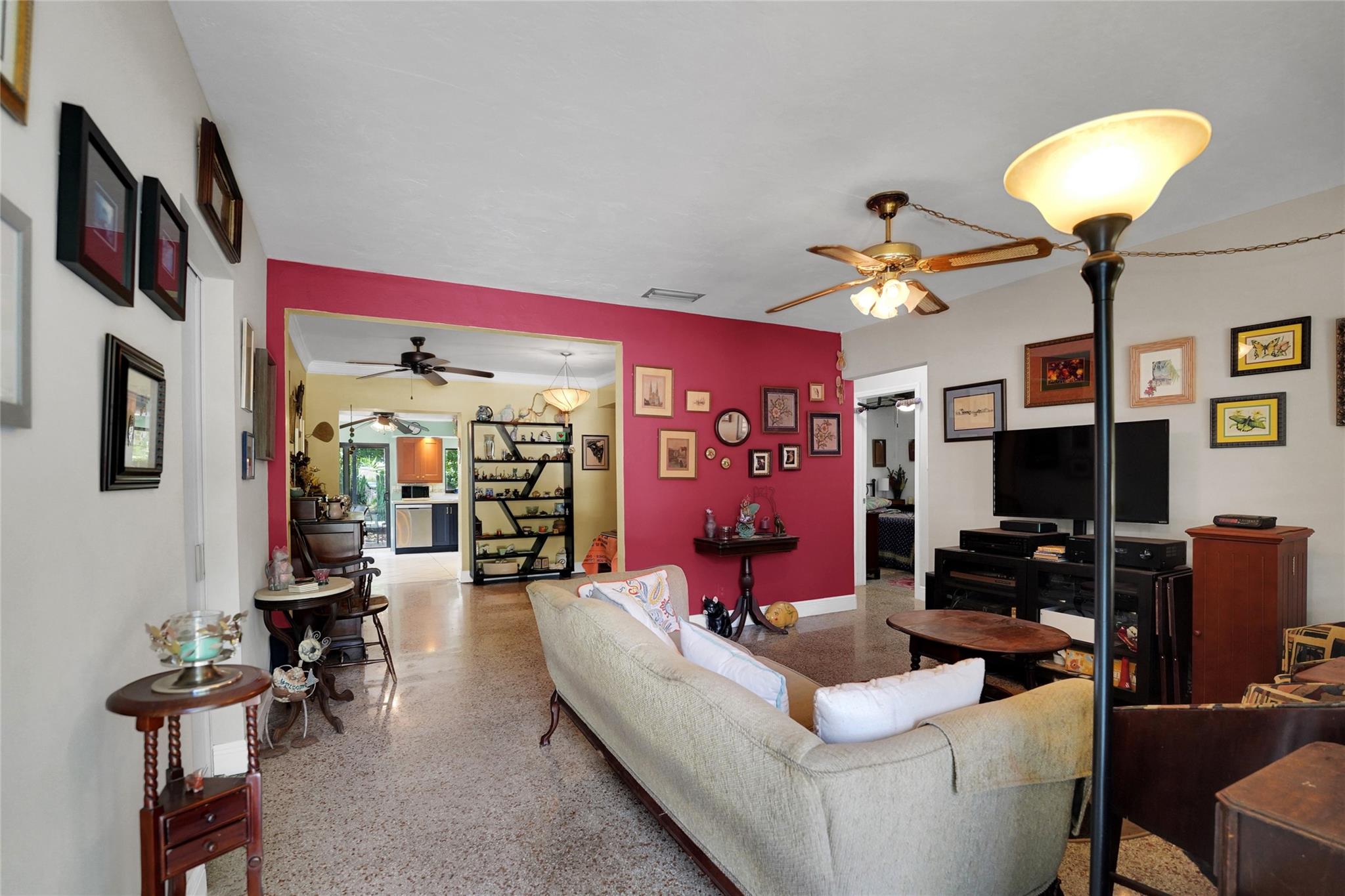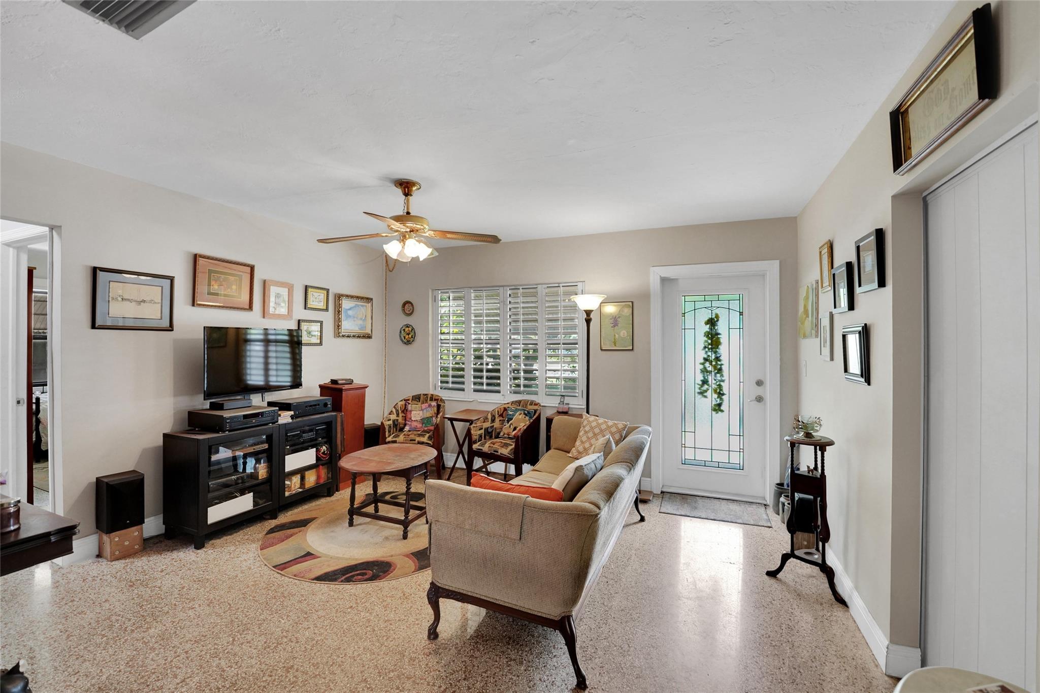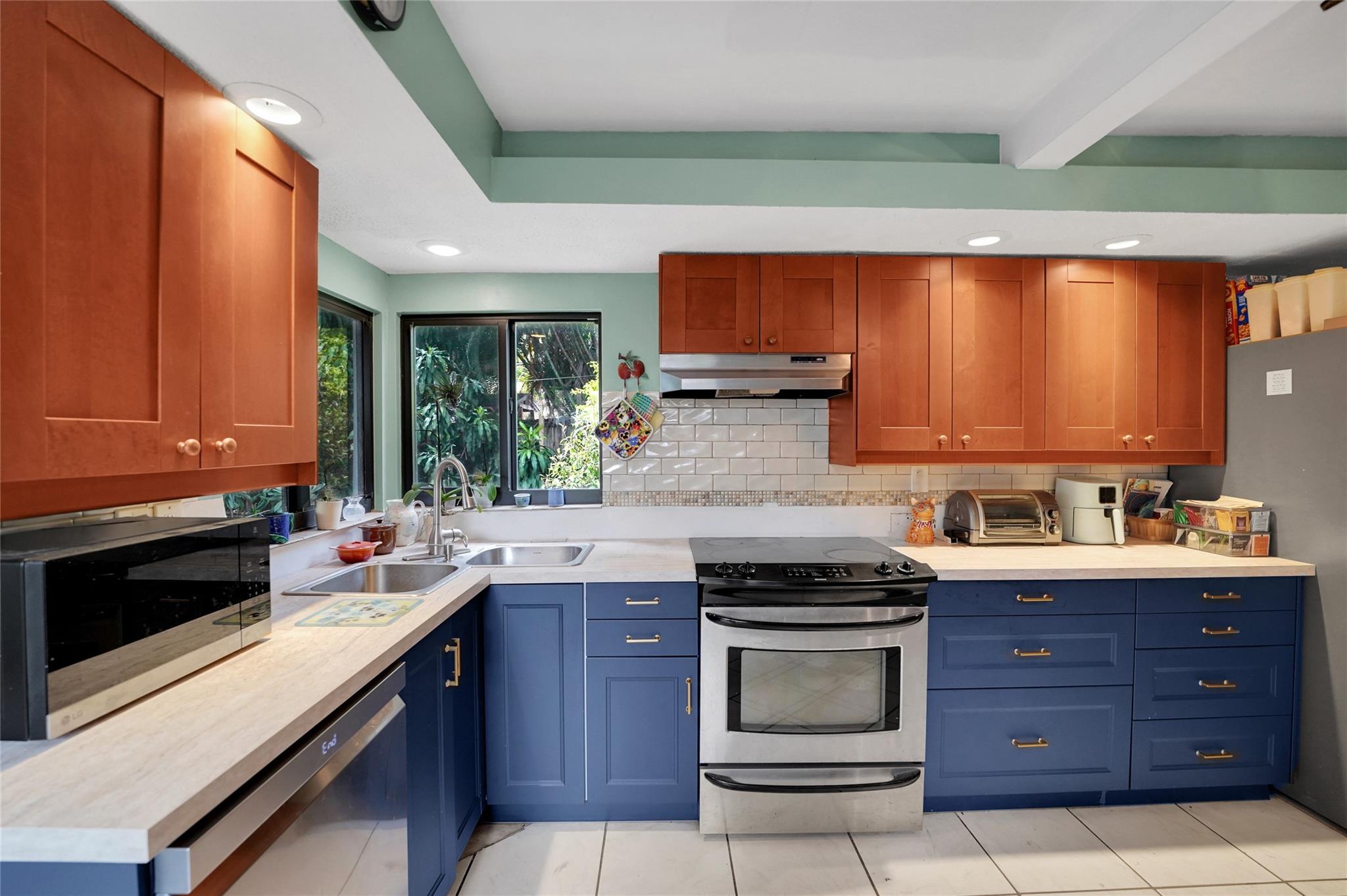 Location, Location, Location. 2 bed/2 bath single family home with NO HOA! Converted garage can be used as 3rd bedroom or extra storage. Enjoy a peaceful garden view in front and a huge fenced backyard with fruit trees. Relax on the covered back porch. Features include a New roof, appliances including washer/dryer, new kitchen cabinets, new water heater, and brand new A/C. All impact windows and doors. No pet restrictions. Prime location near airport, beaches, major highways, restaurants, and shopping! Light in Dining Room does not convey.