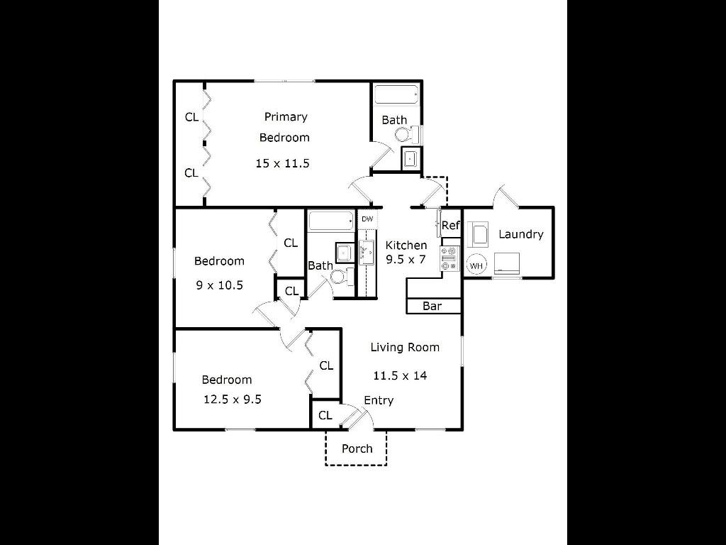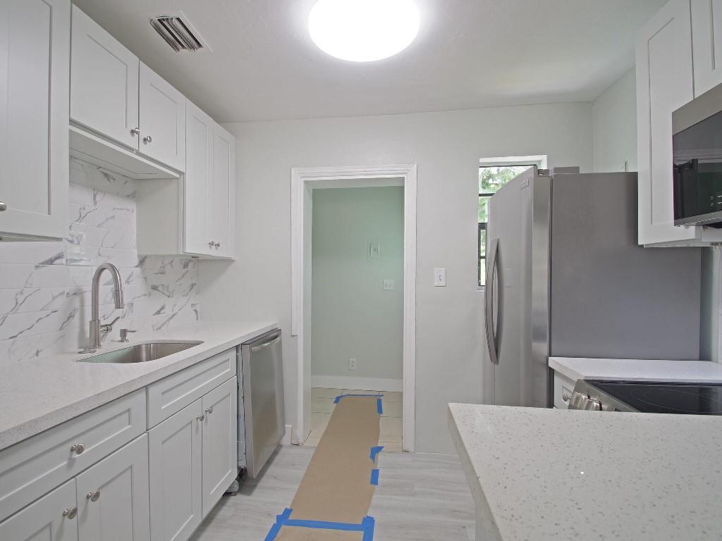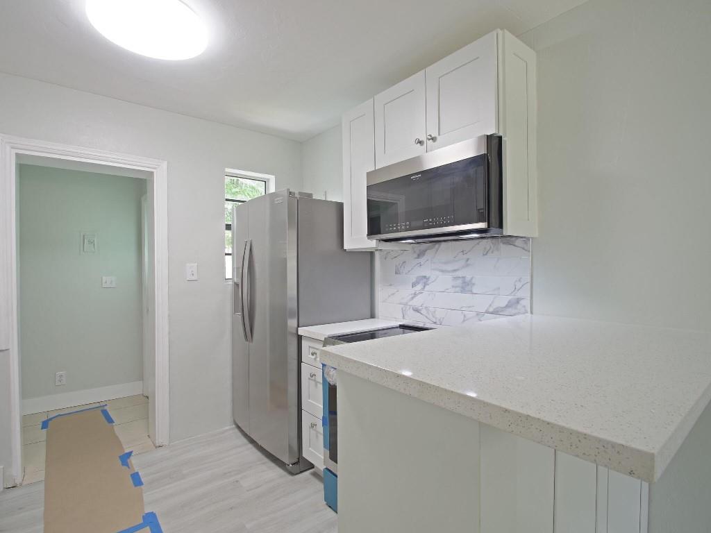 Totally update interior with new 3 month roof! Updates include new paint throughout, new vinyl flooring, new kitchen cabinets, new dishwasher, refrigerator, stove and microwave. Please update full baths with shower and tub. new blinds and lighting. Bedrooms are good size, master is large and separated from other bedrooms.