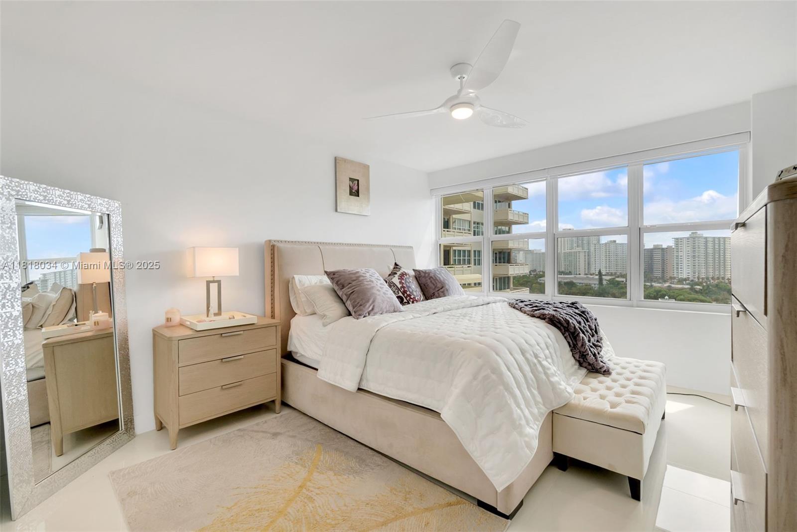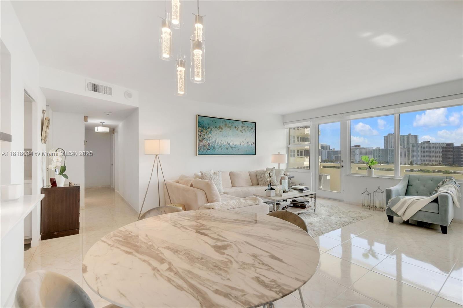 RENOVATED 2/2 CONDO WITH STUNNING CITY AND OCEAN VIEWS FROM ALL NEW IMPACT WINDOWS. PRICED WELL BELOW RECENT SALES. Tastefully updated eat-in kitchen. Primary bedroom features a separate vanity area with custom closets, including a walk-in. Second bedroom is bright with ample closet space. Both bathrooms are MAGAZINE-WORTHY. Watch spectacular sunrises each morning! The ocean is practically at your doorstep. Amenities include: a large, gorgeous pool right on the Intracoastal, a fully equipped gym, and a community room. This community is close to excellent shopping and restaurants, and directly across from the beach. EV CHARGING STATIONS AVAILABLE! MAINTENANCE INCLUDES CABLE AND WIFI! BUILDING IS FINANCIALLY SECURE - NO UPCOMING ASSESSMENTS! Click on VIRTUAL TOUR for VIDEO.