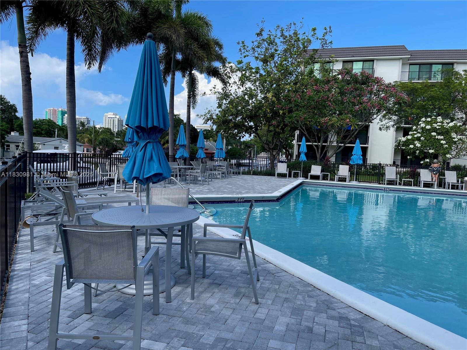 ISLAND PARADISE . Fort Lauderdale . Situated on an island, this residence offers the quintessential Florida marine and boater lifestyle. This 1 Bedroom 1 Bath condo has water and garden views. Step inside to discover a spacious, open-concept layout which seamlessly connects the living, dining and kitchen areas creating an ideal space for entertaining guests. The condo features, stainless steal appliances, laminate kitchen cabinets and counters, laminate and tile floors, new impact windows and doors. Balcony has view of the pool and canal. Enjoy access to a wealth of amenities including, pickleball, tennis, pools, BBQ, gym, clubhouse, boat facilities and much more. Conveniently located next to highways, pristine beaches, shopping and nightlife.