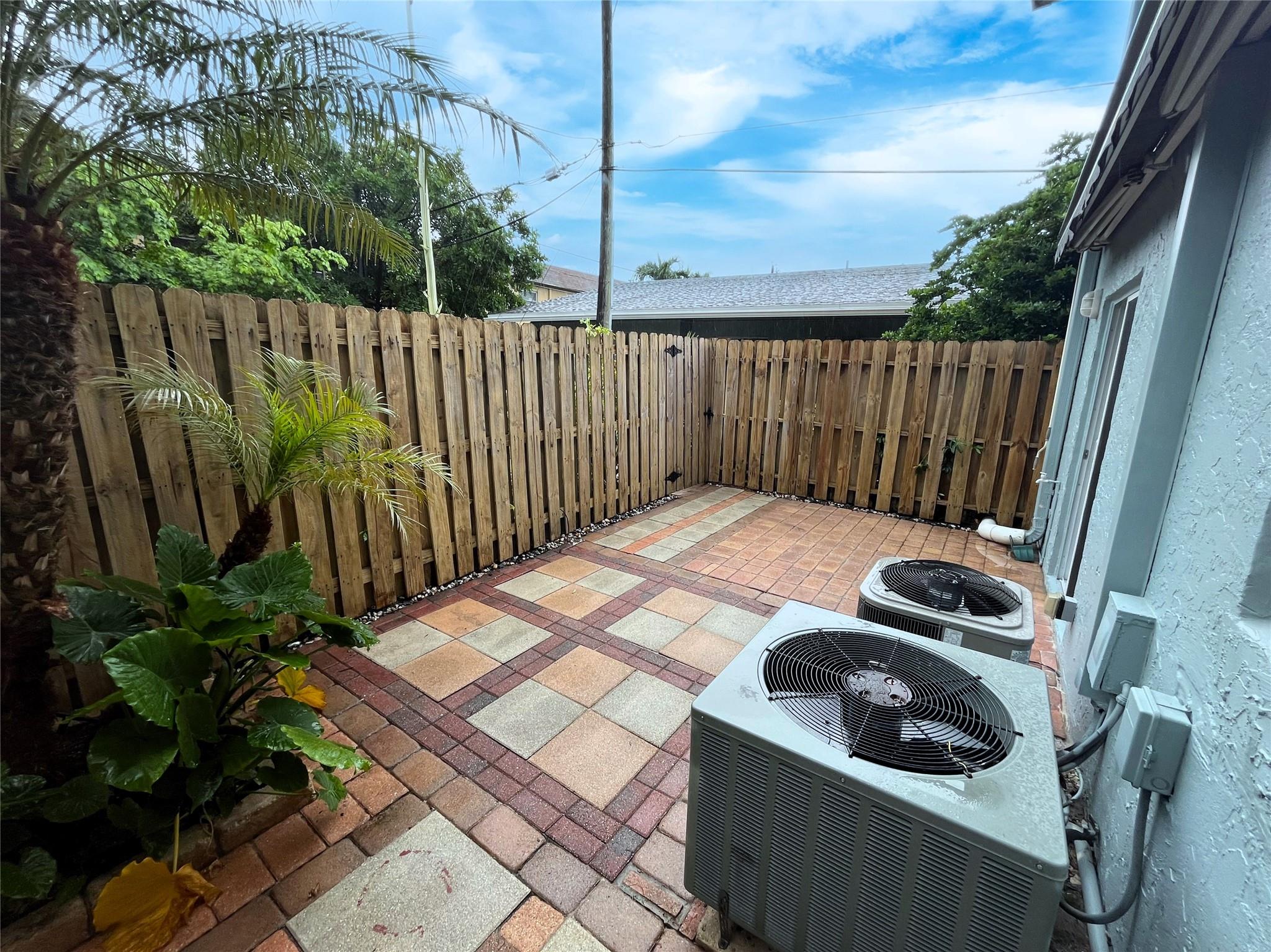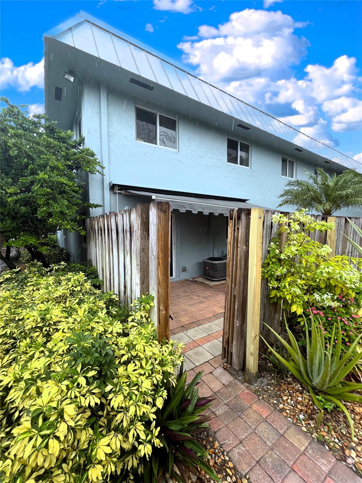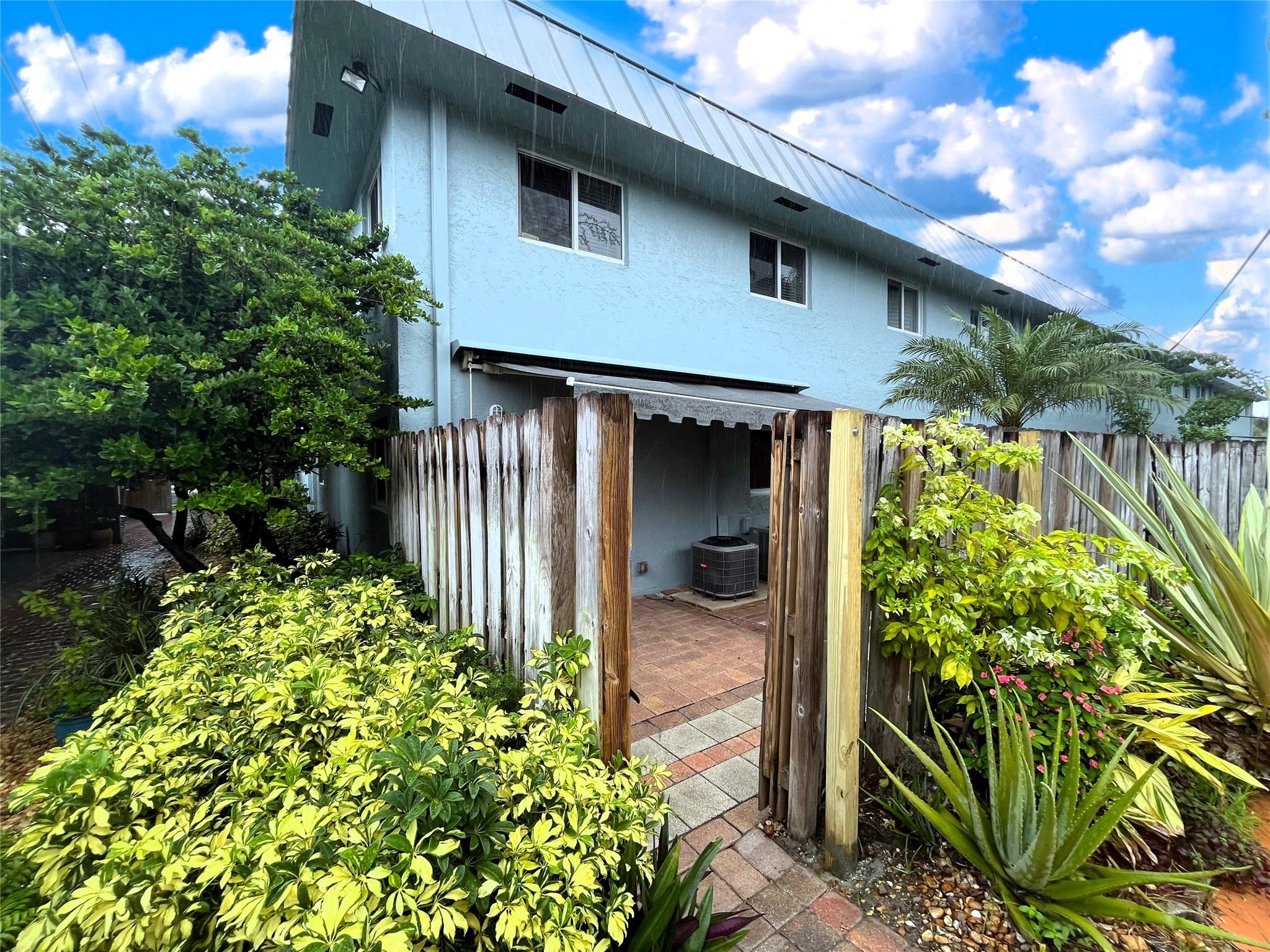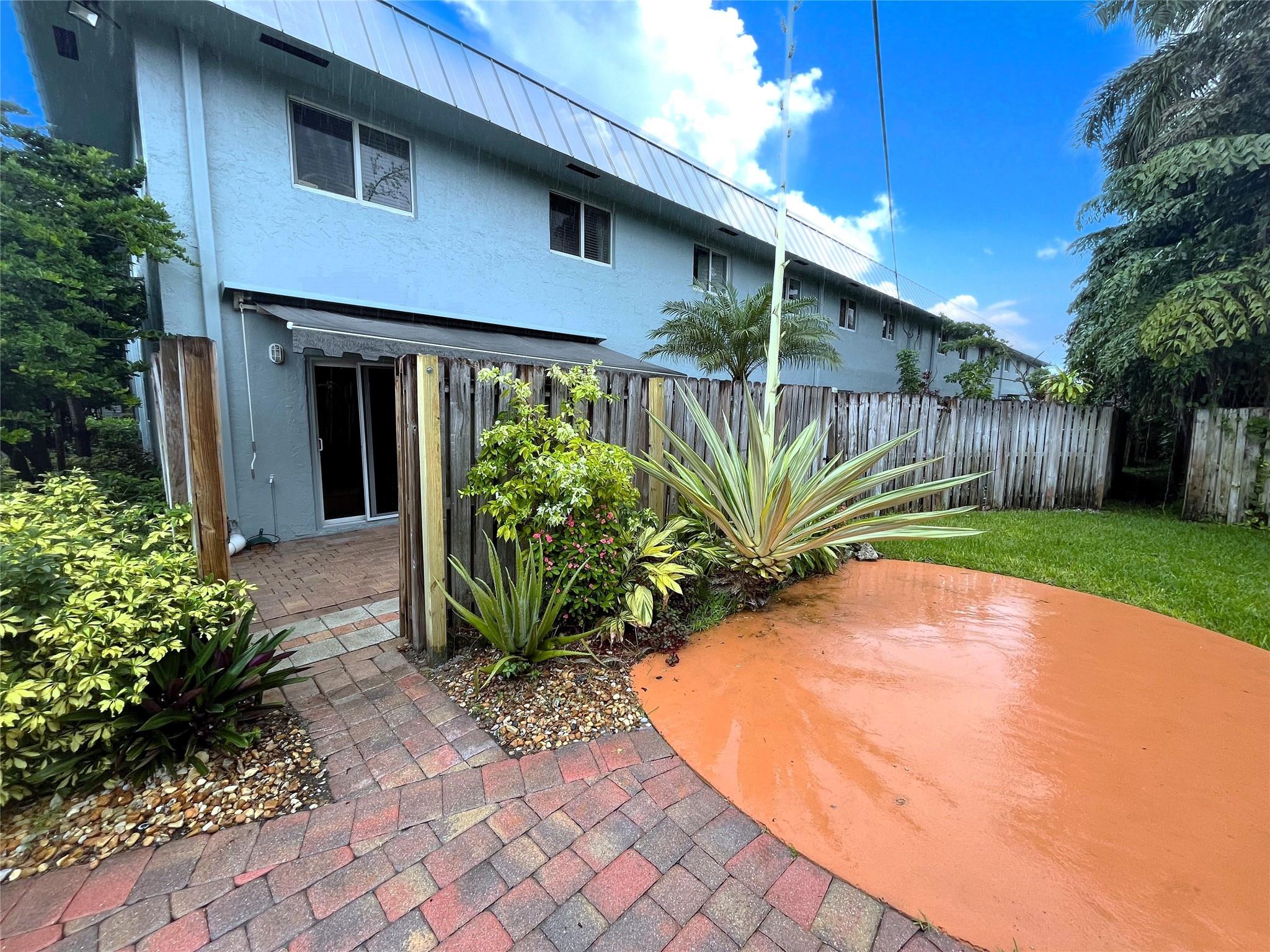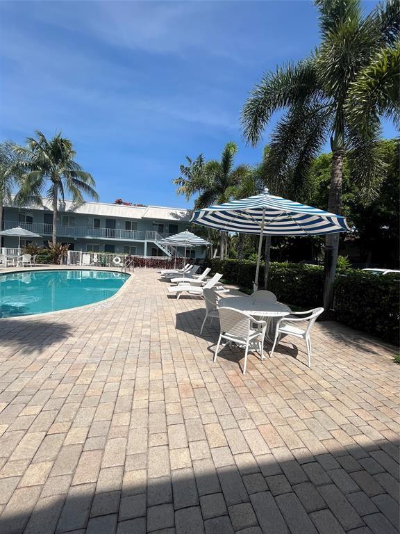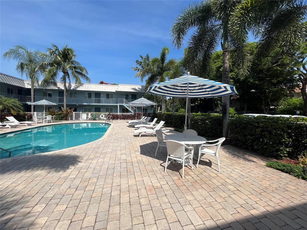 Beautifull condo in desirable Poinsettia Landings, a hidden gem. No pending assessments. 40/10-Year Building Safety Inspection Completed. Corner unit offers private large fenced-in patio w/ retractable awning. Patio opens to spacious common area. Dimmable soffit bedroom lights, glazed bathroom tub/walls. Ceramic flooring throughout, SS appliances, wood cabinetry, granite & tile in kitchen & bath. Lush landscaping, heated pool, BBQ area. On-site laundry. Pet friendly. No aggressive breeds. Foreign seller. Property rented until August 31st. Photos were taken prior to tenant's occupancy. Located near Wilton Drive, Downtown Ft. Lauderdale, shopping, nightlife, restaurants & beach. Information is deemed reliable but not guaranteed.