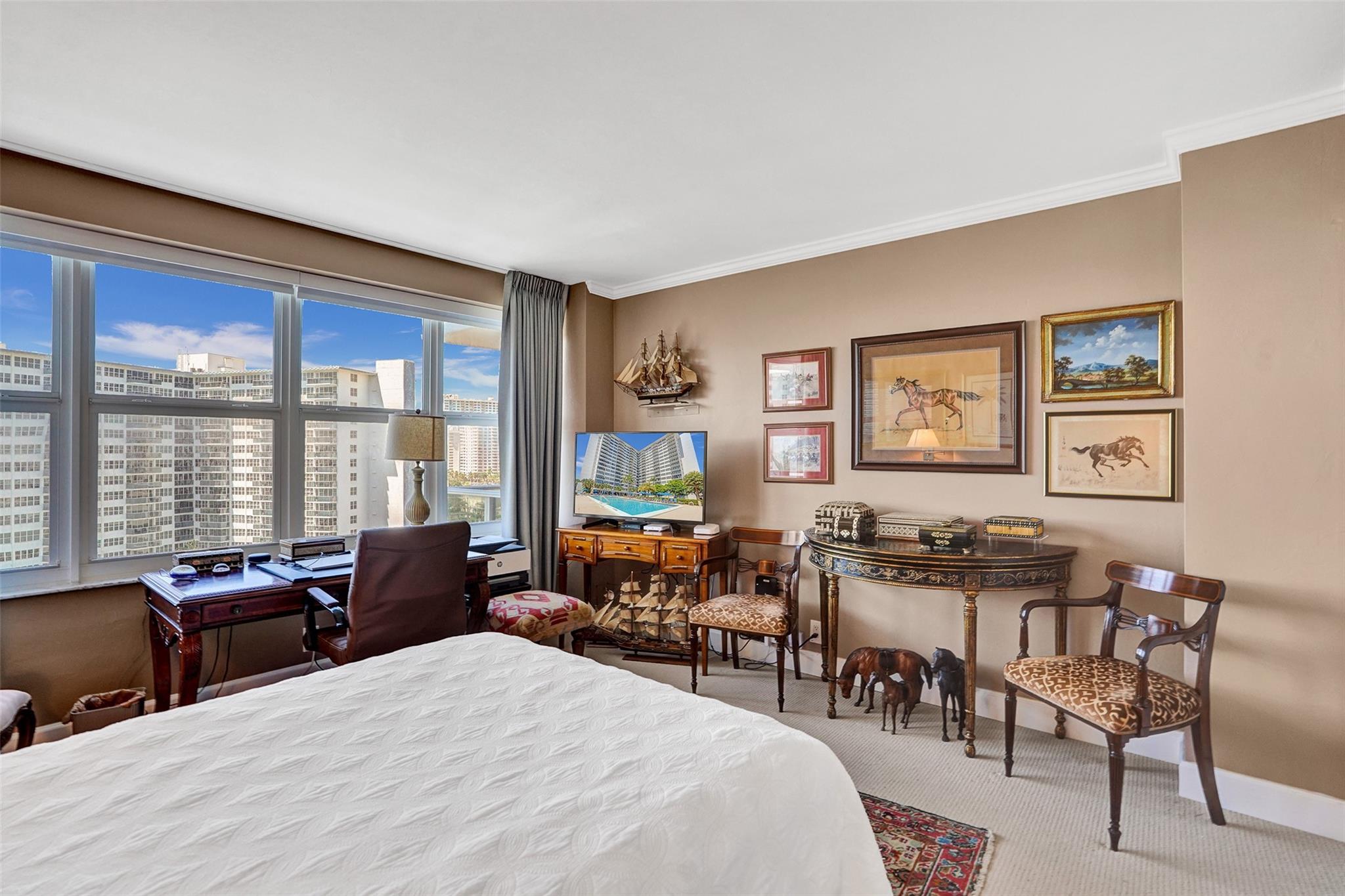 Walk to the beach,restaurants, shopping from this great location. Spectacular views of the intracoastal and ocean from the balcony as you sit out with your evening beverage of choice. This move-in ready unit exudes warmth and comfort throughout. Elegant crown molding throughout. Tile Floors in living area, and soft cozy carpet in Bedroom. Impact Glass throughout, a brand new balcony with stunning views. You never have to leave the premises. Lobby level has a fitness room,Library, and large Community Room for your convenience, bike Storage. Or, step out the door to the large private pool and canopied area to get out of the sun, and perhaps do some BBQing. 55+ Co-Op provides the best of easy living, with access to all area activities. Assessments were paid by Seller. No Pending assessments