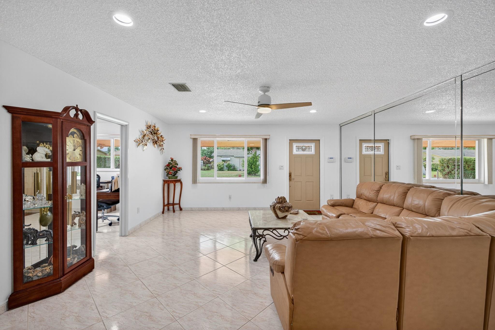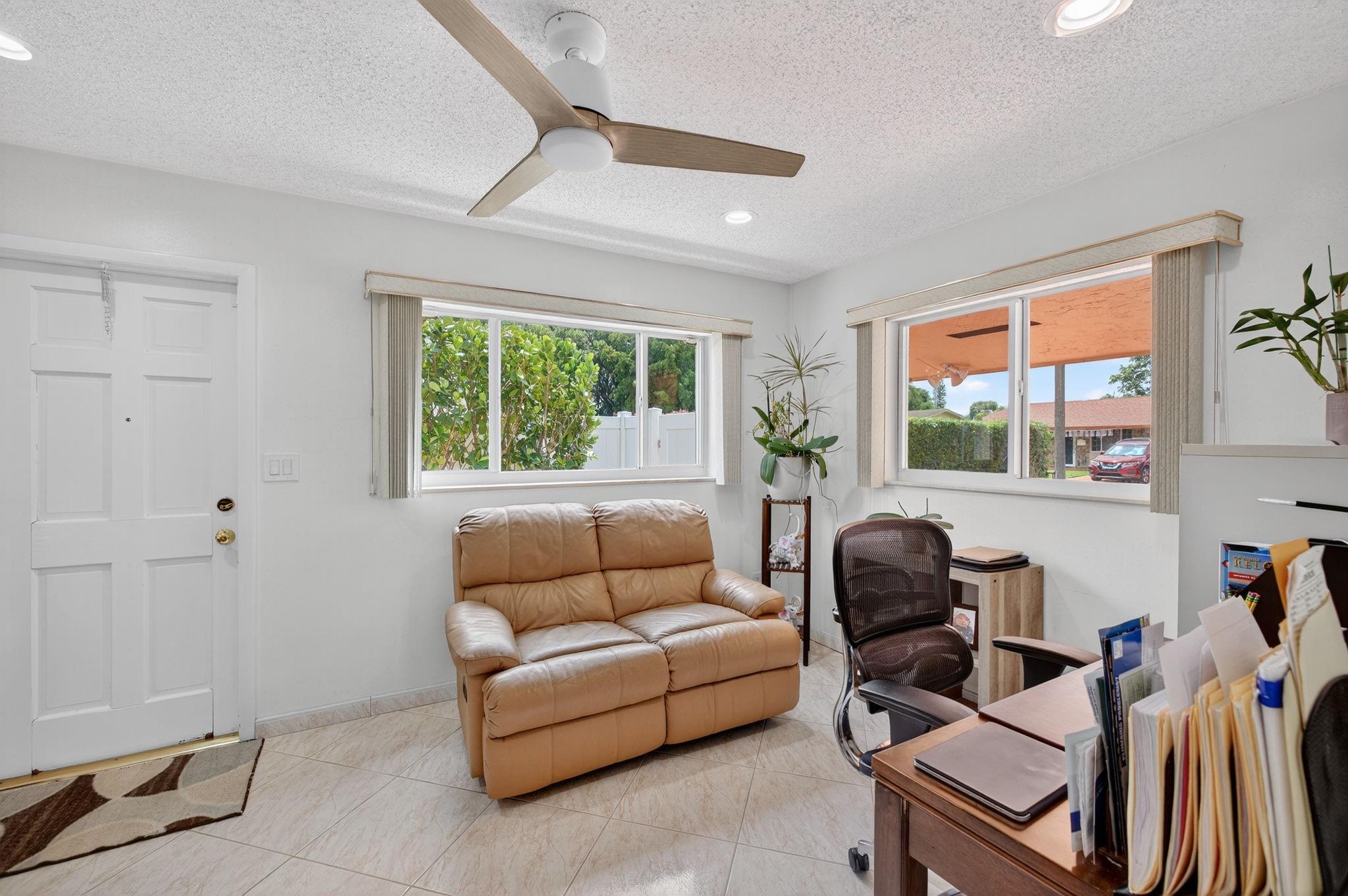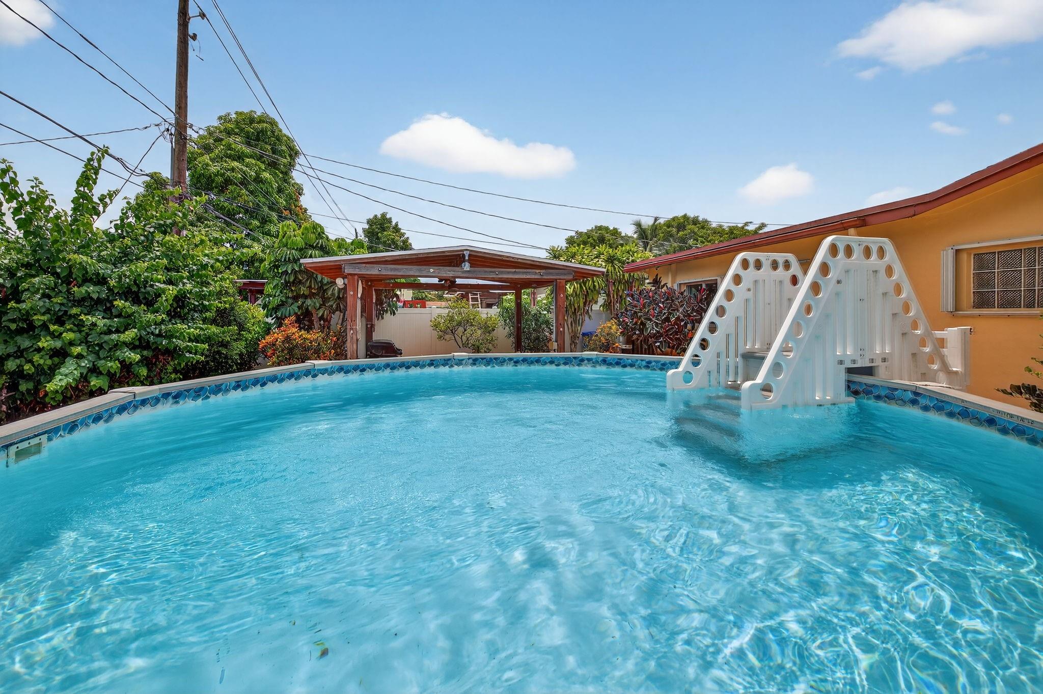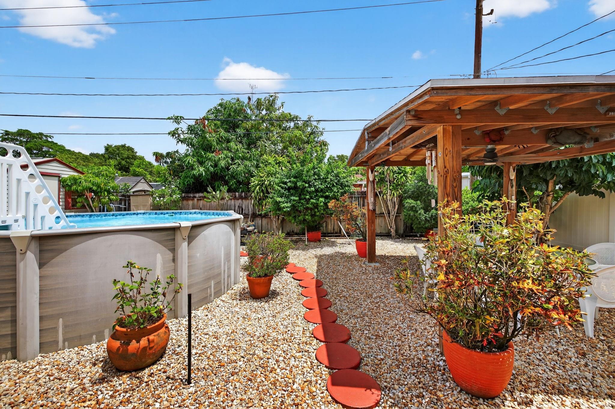 Spacious single-family home with 3 bedrooms, 2 bathrooms PLUS an office. Impact windows on the front & accordion shutters on the rest. Diagonal tile flooring throughout, creating a cohesive flow. Remodeled kitchen with SS appliances, granite counter tops, ample cabinet space. Laundry/Utility room next to kitchen. Enjoy additional living space with the 240 sq ft permitted family room, ideal for relaxing or fitness area. Step outside to a large fenced yard, with an above ground pool, covered gazebo with ceiling fan, and a tool shed with power – For projects or storage. Plenty of yard space for entertaining or for pets. Located close to shops, parks, major highways, this home combines comfort and functionality. Don’t miss out on this opportunity to own a home with so much to offer!