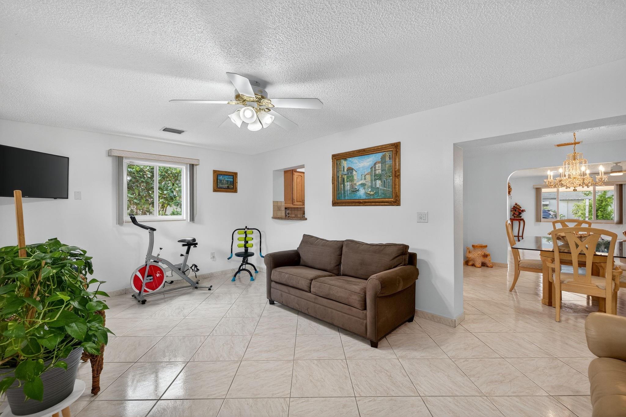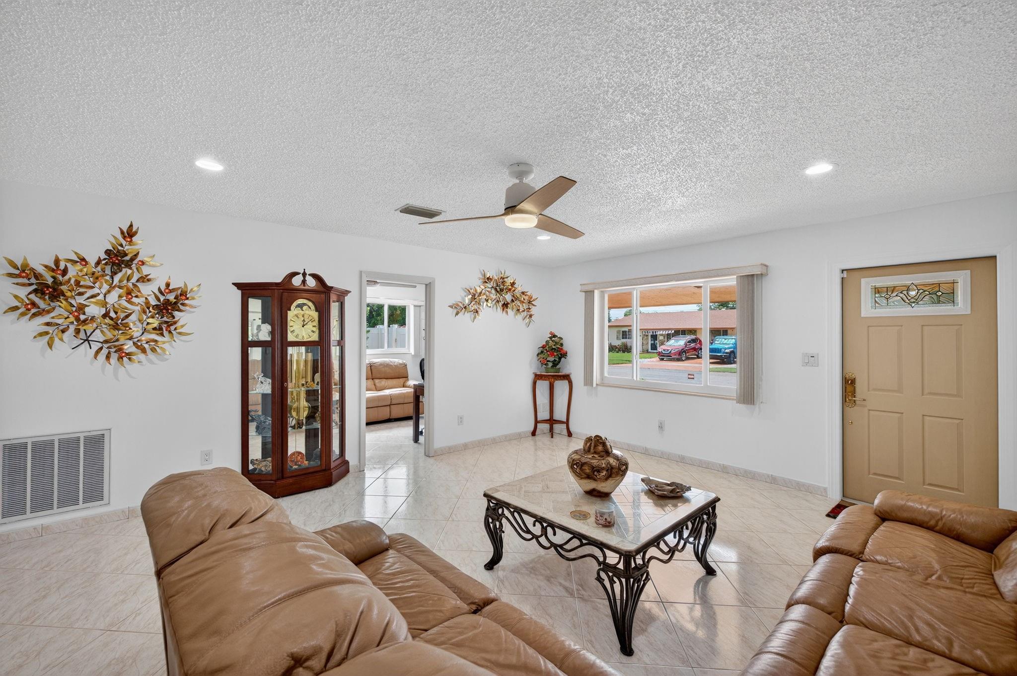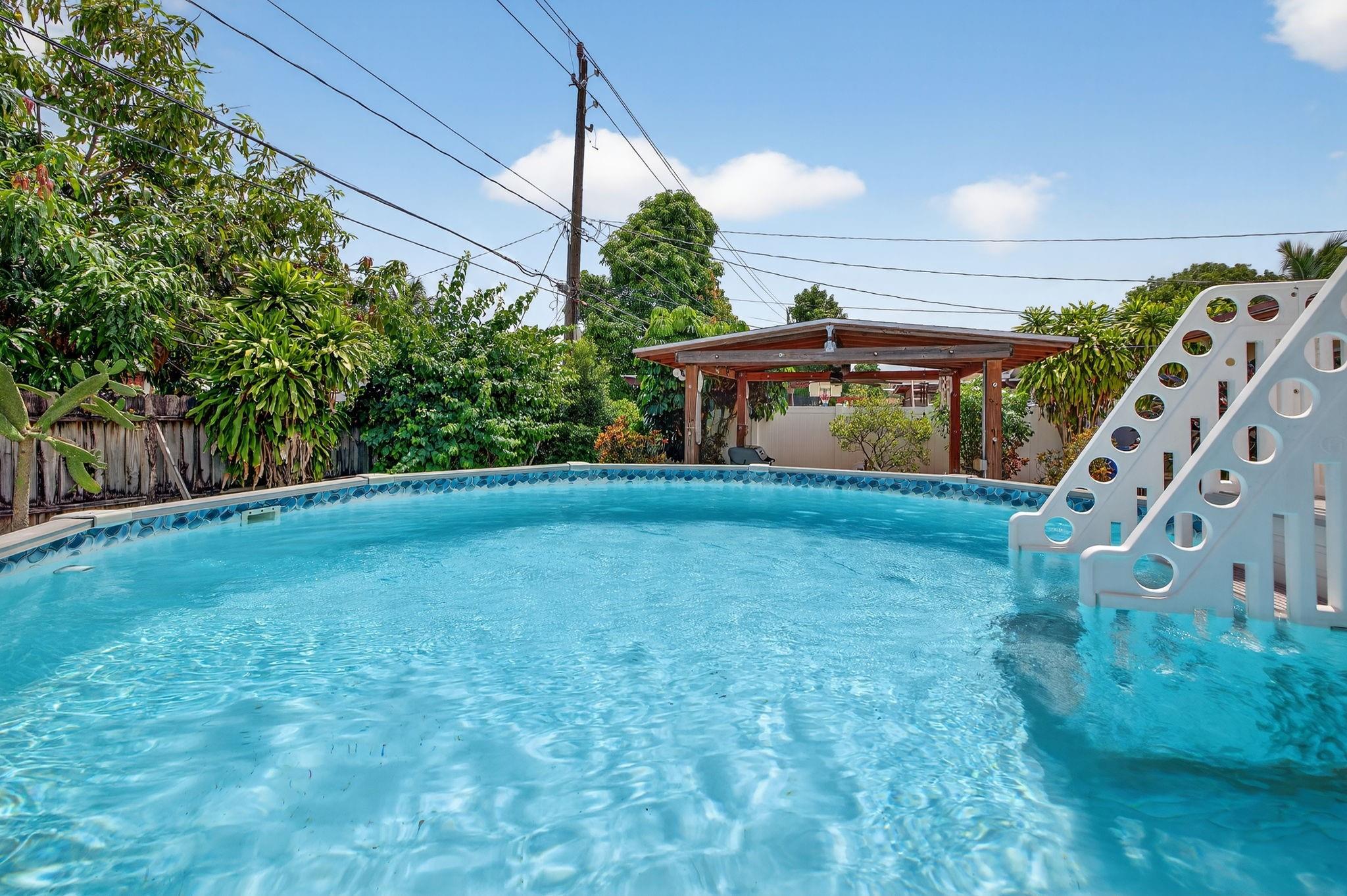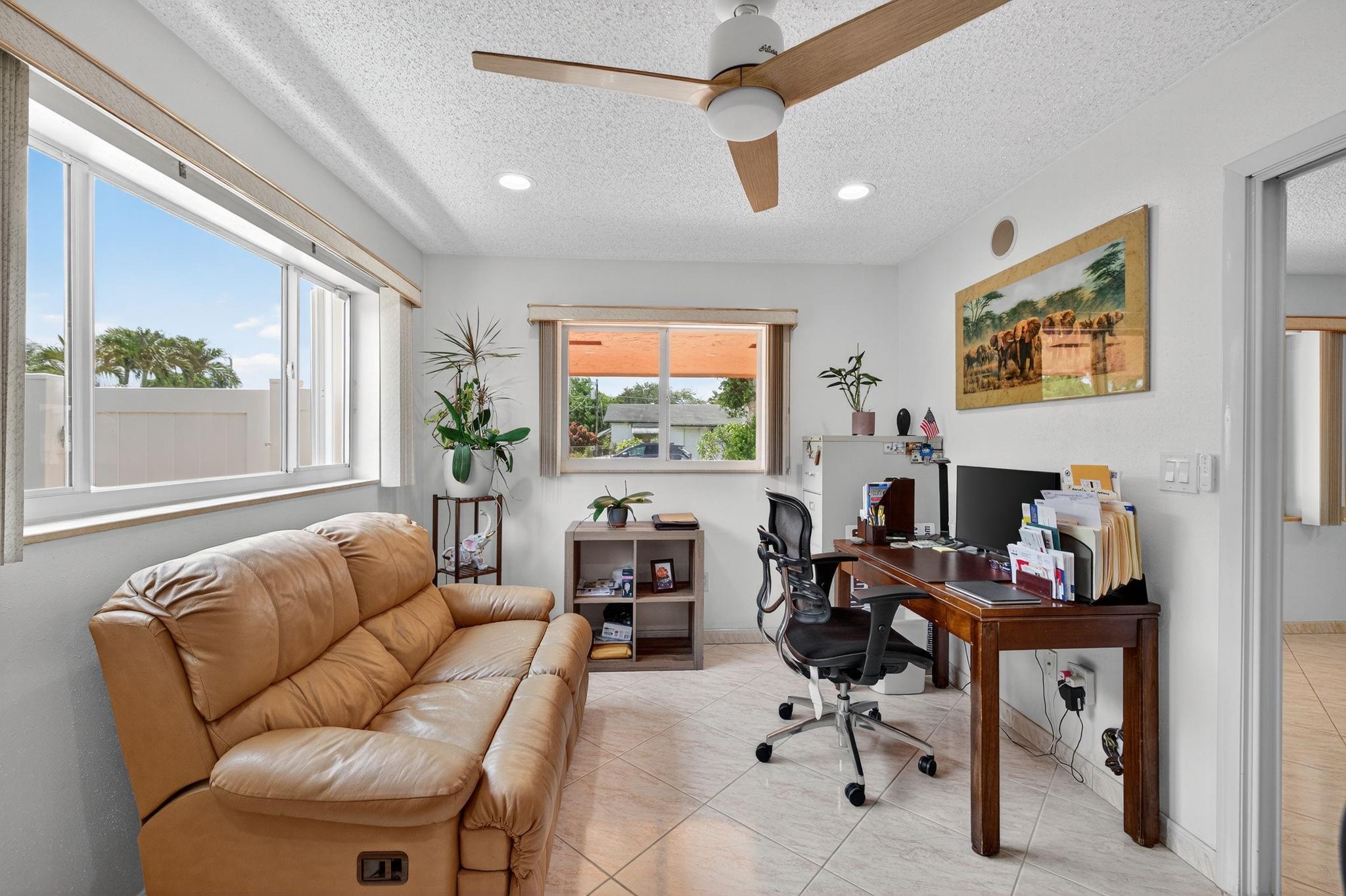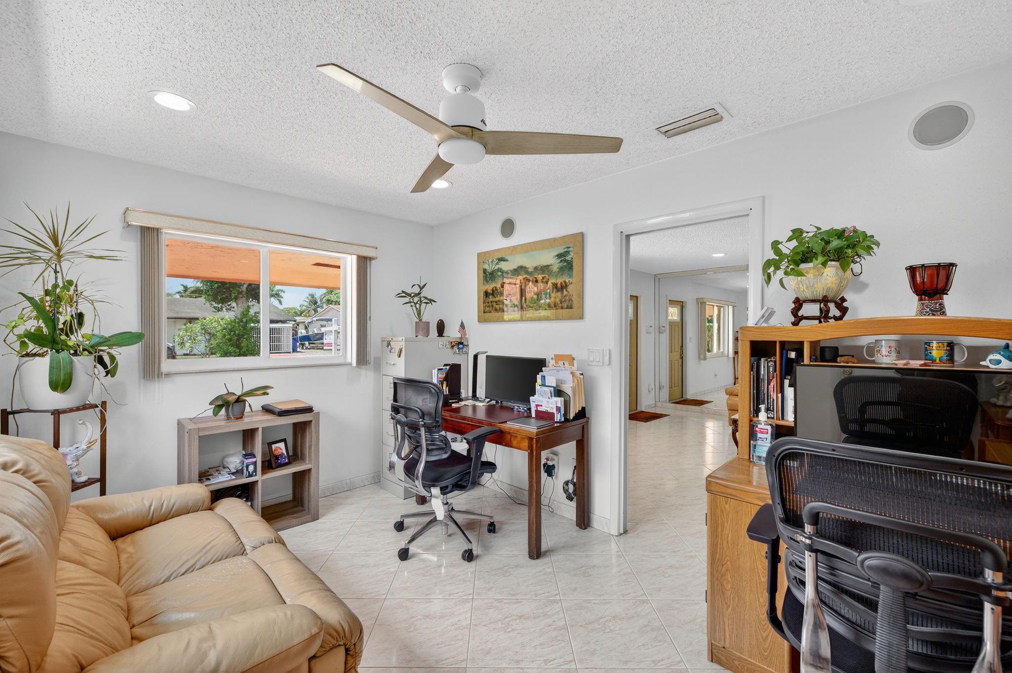 Spacious single-family home with 3 bedrooms, 2 bathrooms PLUS an office. Impact windows on the front & accordion shutters on the rest. Diagonal tile flooring throughout, creating a cohesive flow. Remodeled kitchen with SS appliances, granite counter tops, ample cabinet space. Laundry/Utility room next to kitchen. Enjoy additional living space with the 240 sq ft permitted family room, ideal for relaxing or fitness area. Step outside to a large fenced yard, with an above ground pool, covered gazebo with ceiling fan, and a tool shed with power – For projects or storage. Plenty of yard space for entertaining or for pets. Located close to shops, parks, major highways, this home combines comfort and functionality. Don’t miss out on this opportunity to own a home with so much to offer!