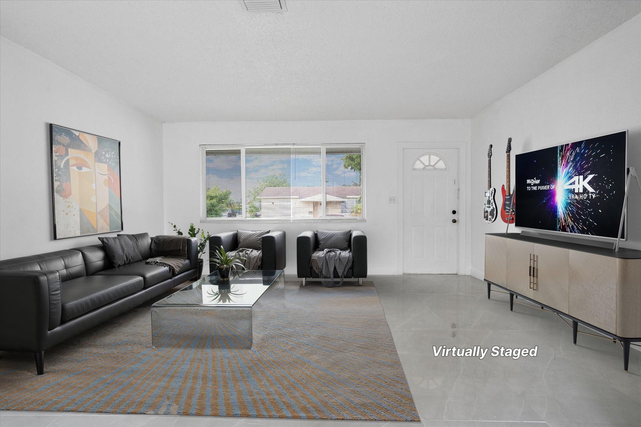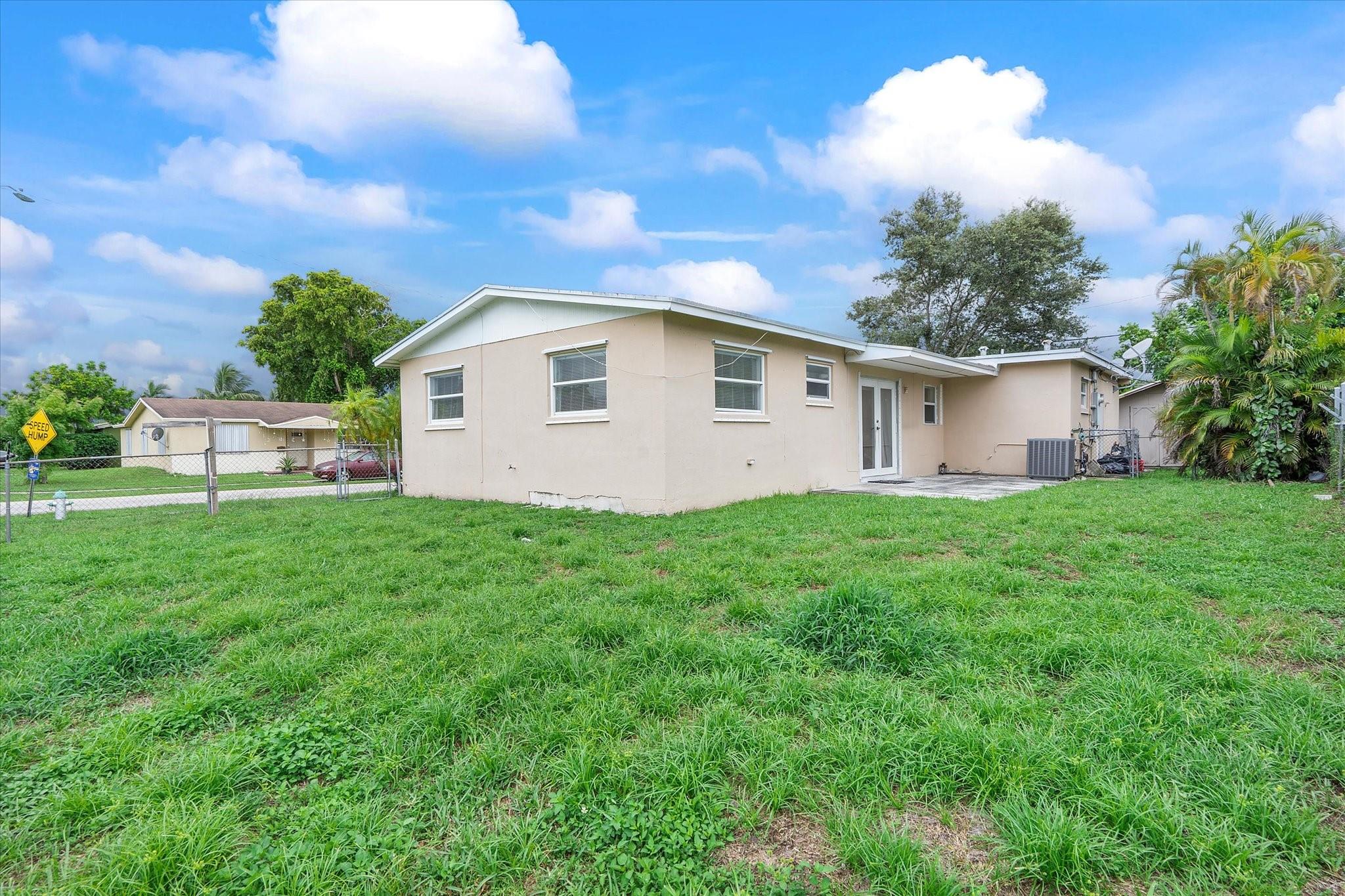 Fully renovated and move-in ready, this 3-bedroom, 2-bathroom home sits on a corner lot with ample room to add a pool in the fenced backyard. Inside, you'll find gleaming marble tile floors throughout, built-in shelving, and a modern kitchen featuring granite countertops and stainless steel appliances. Both bathrooms are finished with floor-to-ceiling tile, and the home includes a full-size washer and dryer. This low-maintenance property offers flexibility with no HOA fees or restrictions—ideal for pet owners, those with recreational vehicles, or investors seeking immediate rental opportunities. Just minutes from I-95 or an easy drive to North Hollywood Beach Park. Minutes to shopping and more.