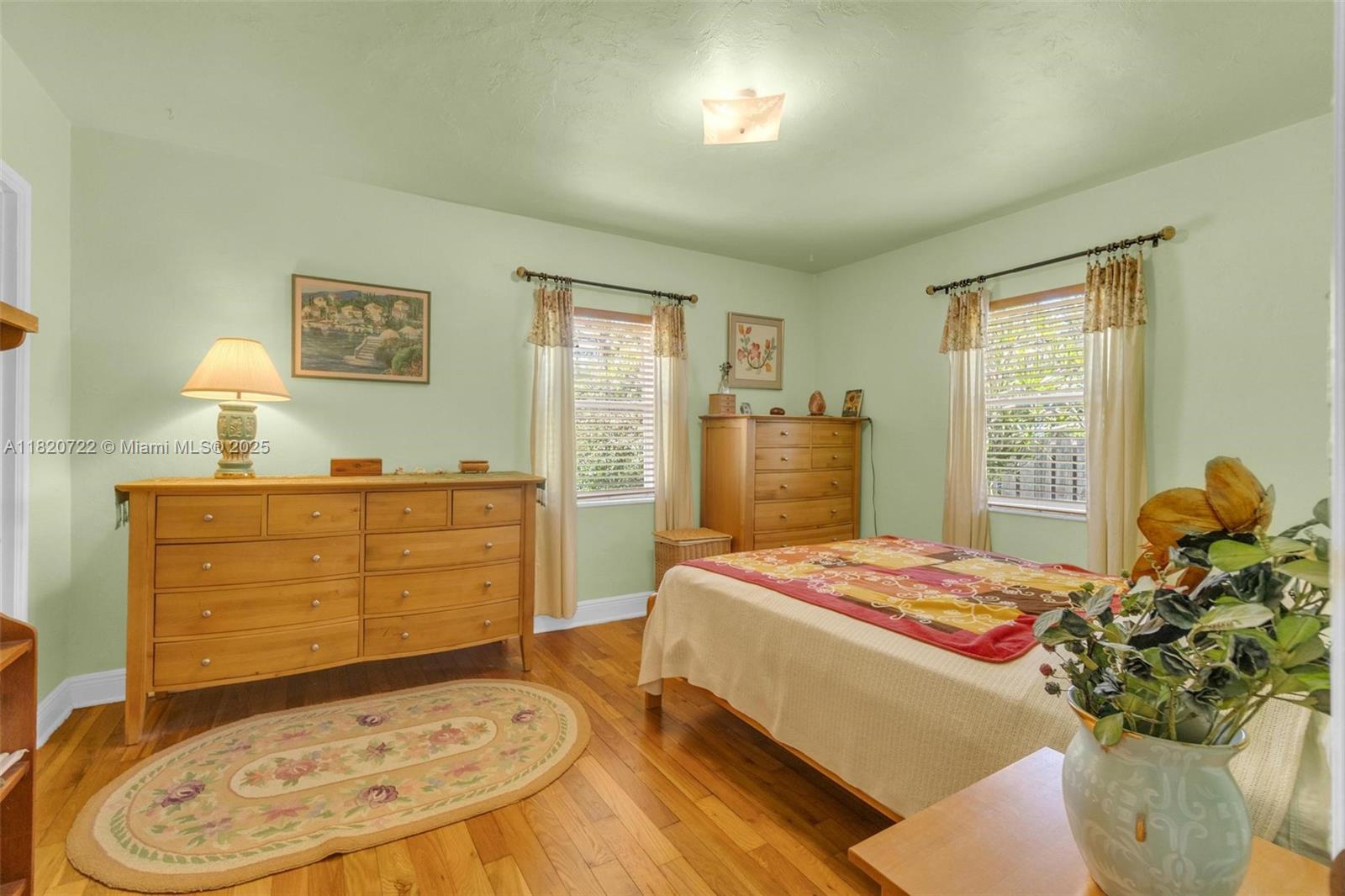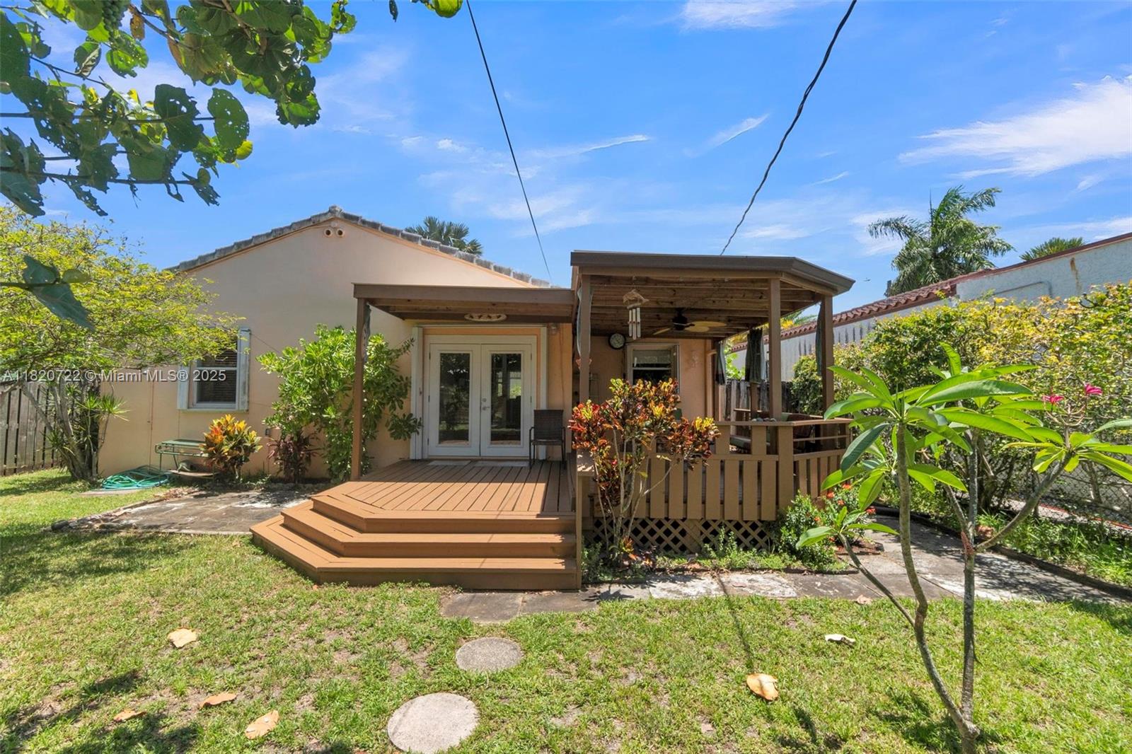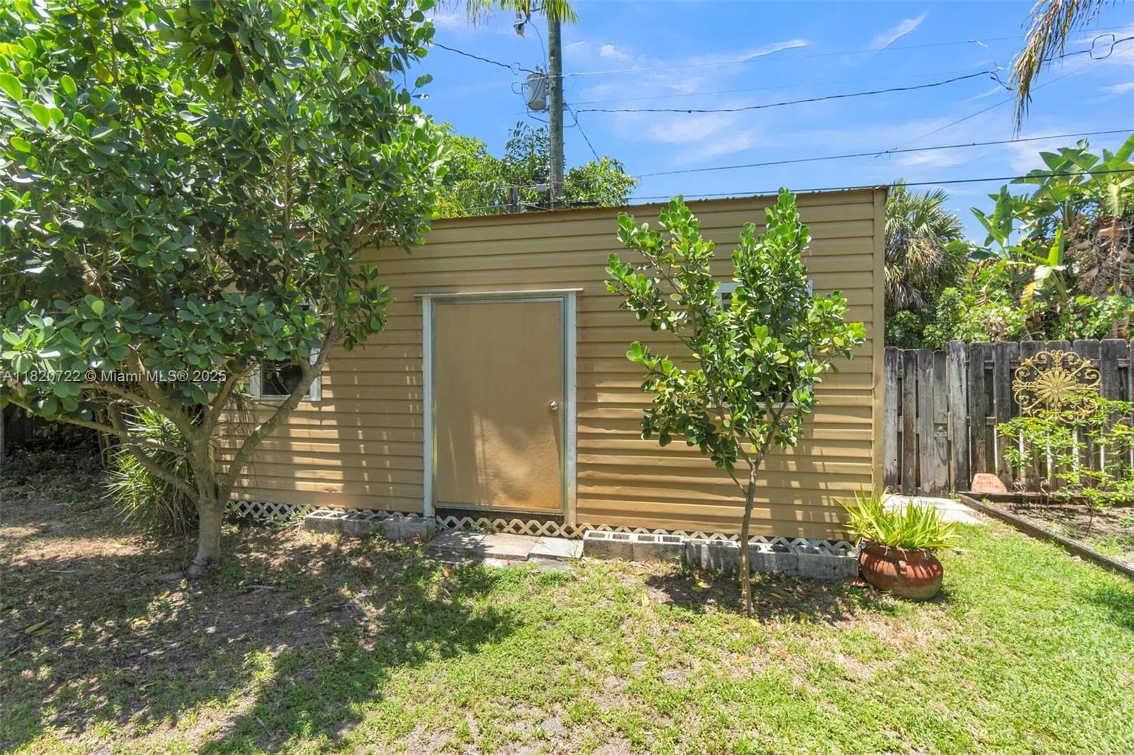 Generously sized bedrooms, 3 good sized closets + one extra large closet, Extra Large linen closet. Extra room off dining area & includes a pantry W/ extra storage. Large kitchen includes stainless steel sink, gas range/oven, breakfast bar & custom hardwood cabinetry & granite counter tops. Original wide-plank red oak wood floors. Extra space off the kitchen can be used as a breakfast nook/office area. Noritz tankless gas HWH , natural gas Generac Guardian generator, Flow-Tek ground water pump sprinkler system & Lark 10x20 foot raised storage shed/workshop rated secure for winds up to 150 mph with 4 windows, wide doorway & electricity. The beautiful back yard invites outdoor living W/ patio, deck & covered back porch. Located minutes from downtown Hollywood & Hollywood Beach & Broadwalk