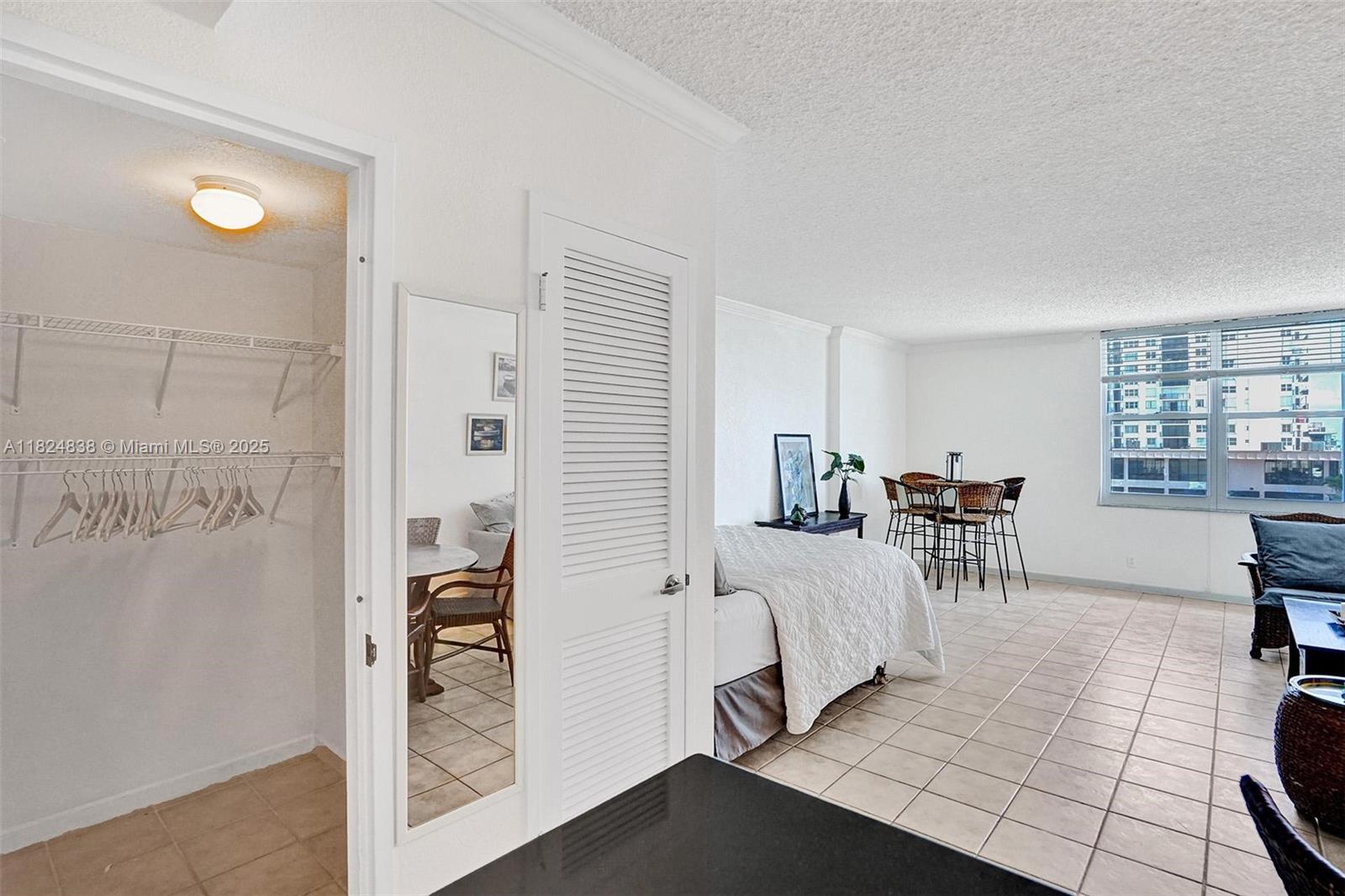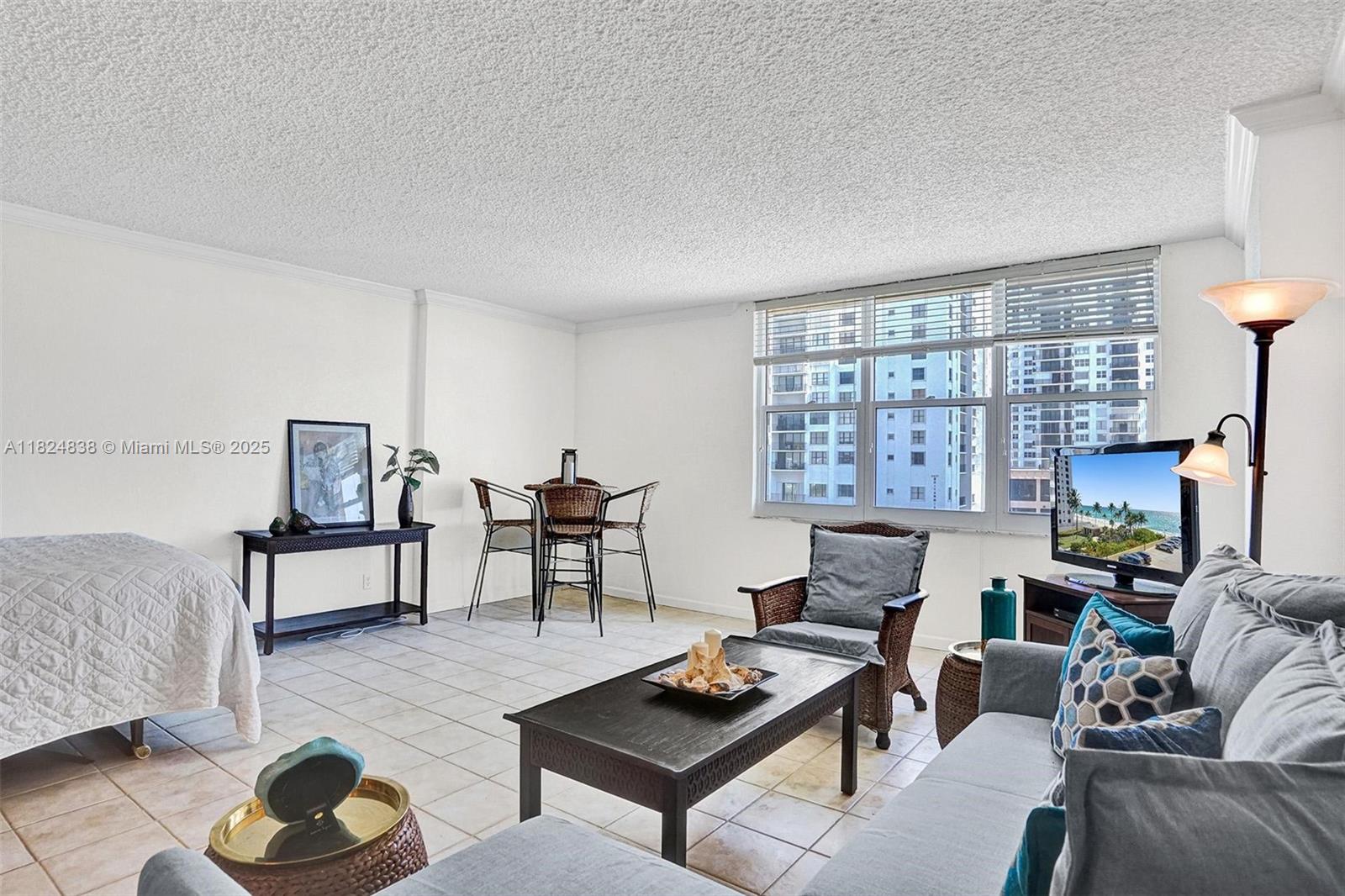 Bright and spacious—the largest studio in the building for Sale. No Balcony. Oversized window with postcard-worthy ocean vistas and Intracoastal/city lights, so you won’t miss the balcony. Inside: a granite-topped kitchenette with full-size appliances, rare walk-in closet, same-floor storage bin, and in-unit combo washer/dryer. Ideal as a beach retreat or income property: rentals allowed 4× per year (3-month minimum). Resort amenities include ocean-view pool, beach service, on-site restaurant, and fitness center overlooking the surf. Move in, add your touch, and start living the coastal lifestyle or earning from it—your choice. Perfectly located near shops, restaurants and Hollywood Boardwalk. Just 15 min drive to FLL airport.