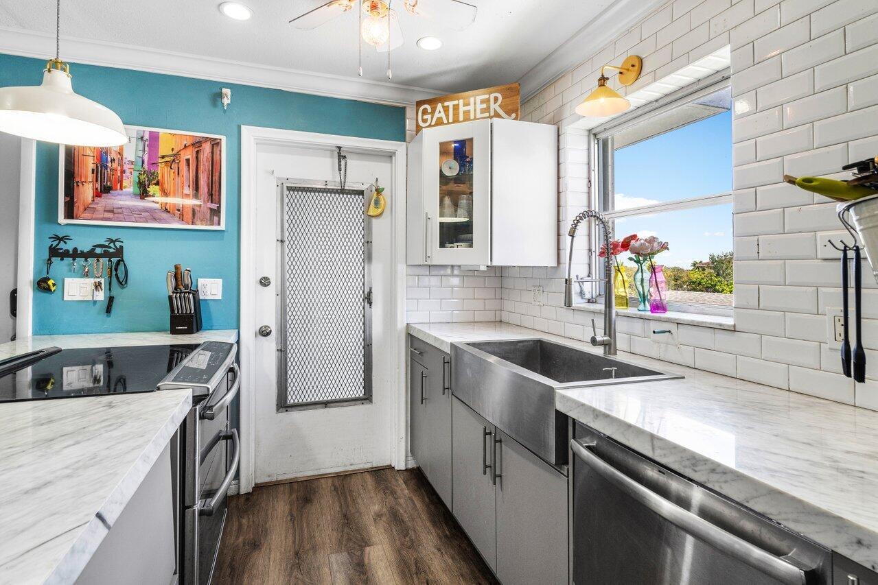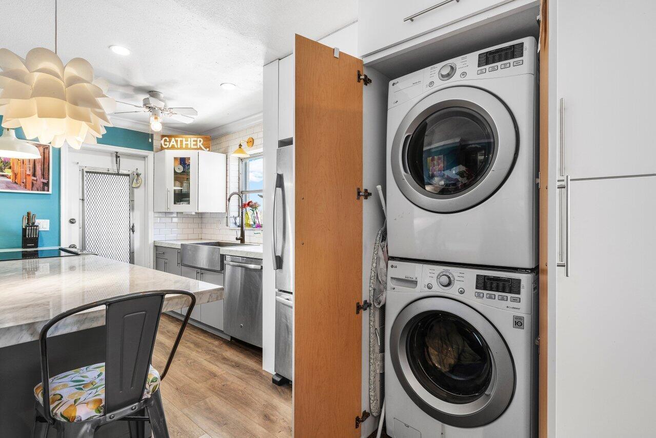 55+ Corner Condo with Stunning Views!Best views in the building from this bright, spacious corner unit. Features include in-unit washer/dryer, 2023 A/C & water heater, and accordion shutters. Passed 40-year inspection (Dec 2024). Great reserves and budget. The building was painted last year; $5K assessment for upcoming roof replacement. HOA covers exterior, water, landscaping, cable, garbage and security cameras. One assigned parking spot with additional parking available in the Swail. No rentals allowed--quiet, stable community. Elevator and stairs for easy access. Located on the hospital power grid for added peace of mind. Move in and enjoy a decade free of worries!